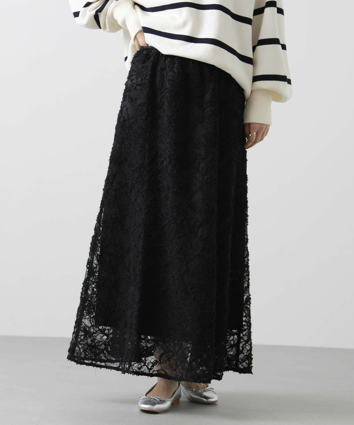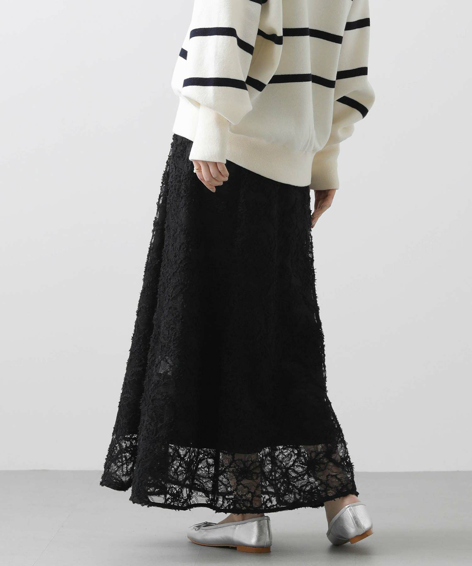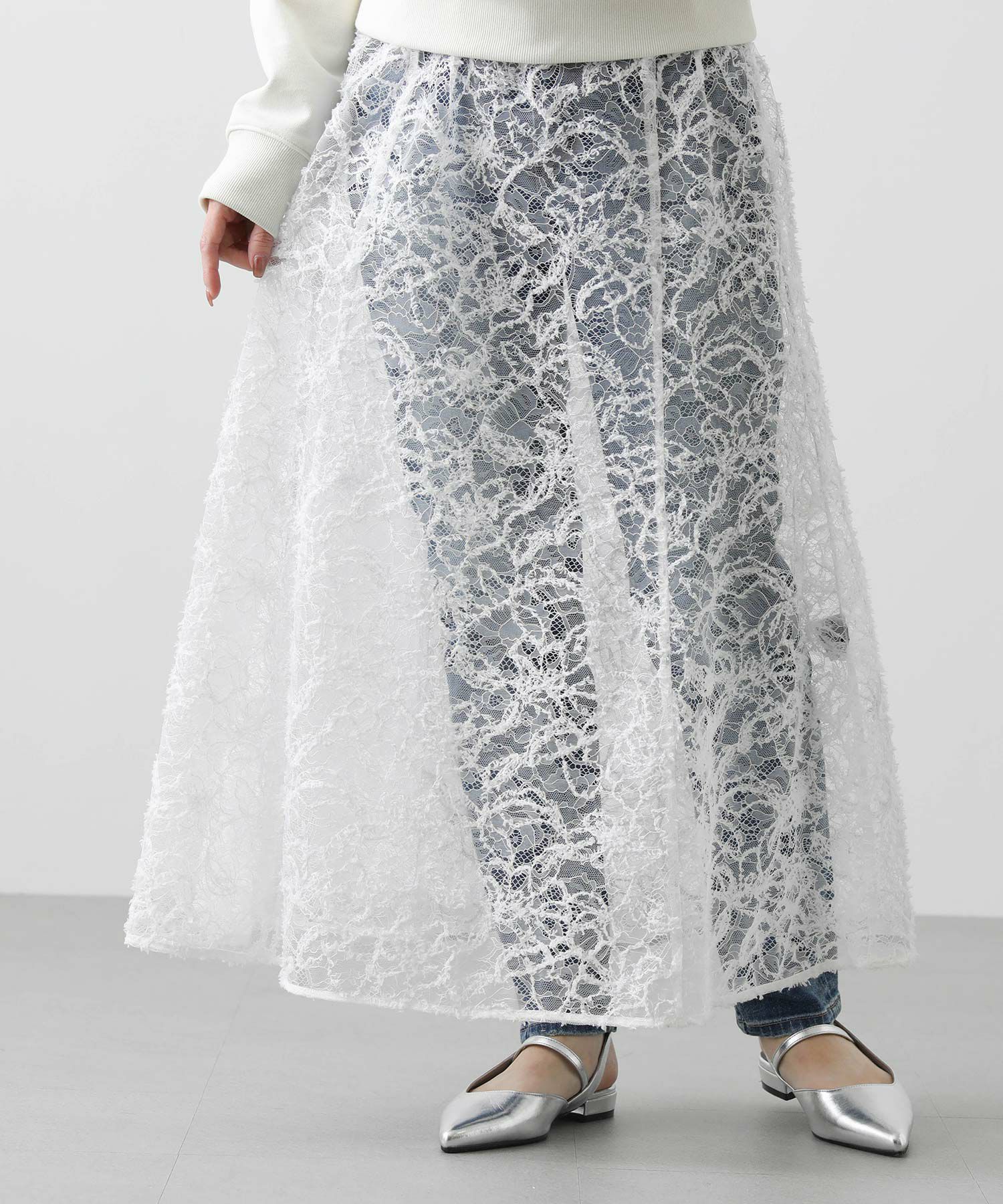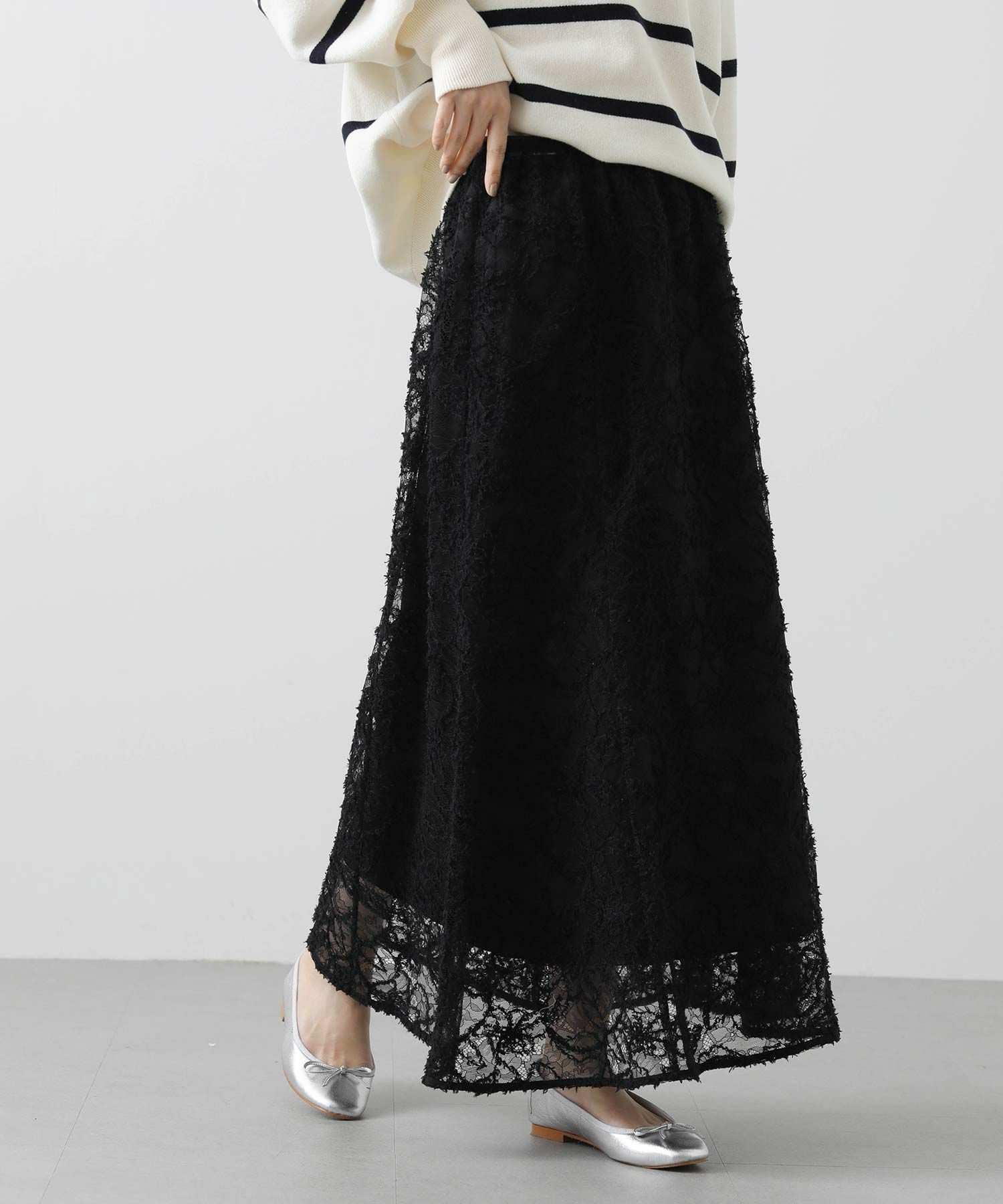 立体感のある繊細なレースを使用した、スタイリングを華やかにしてくれる2WAYスカート。