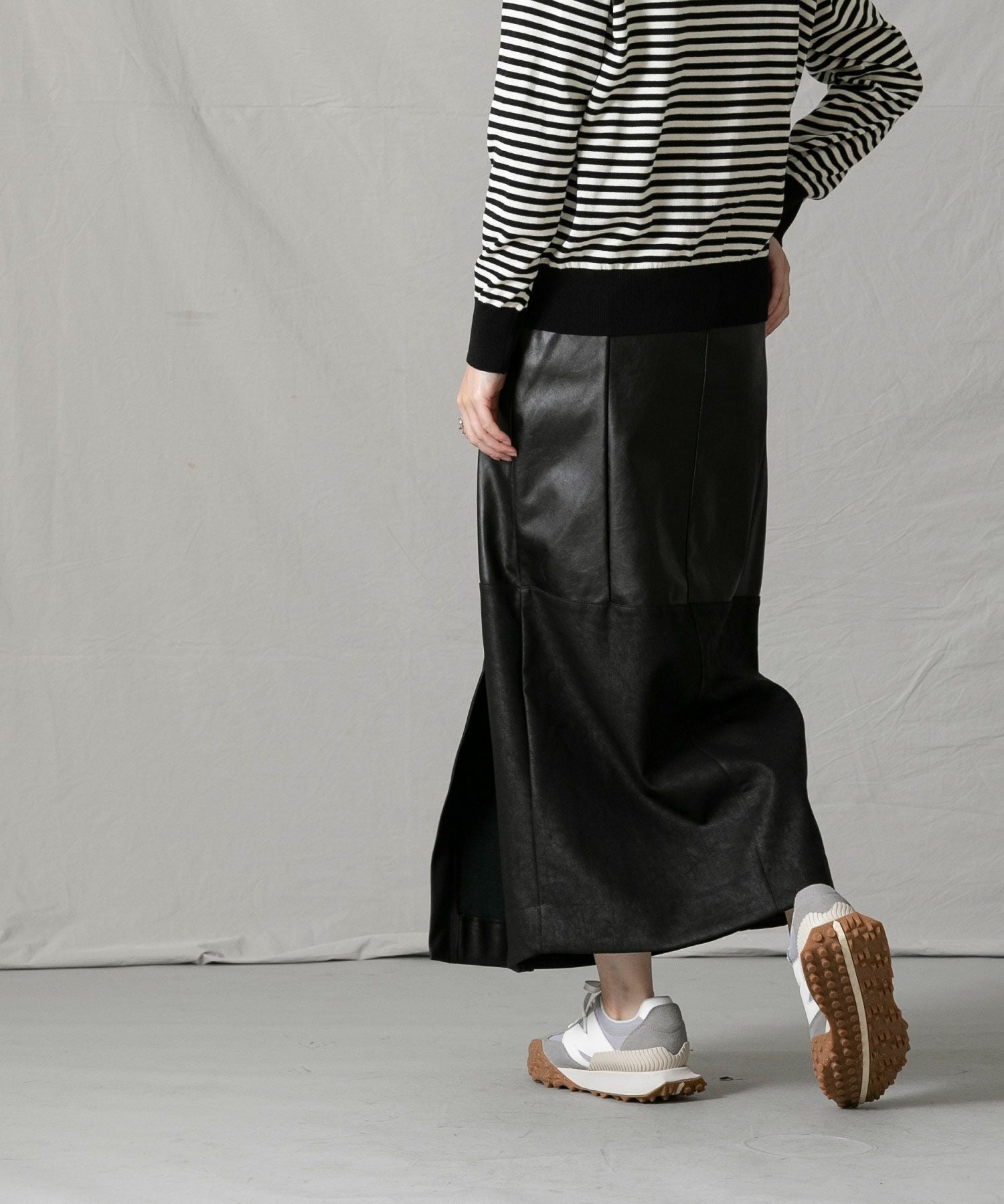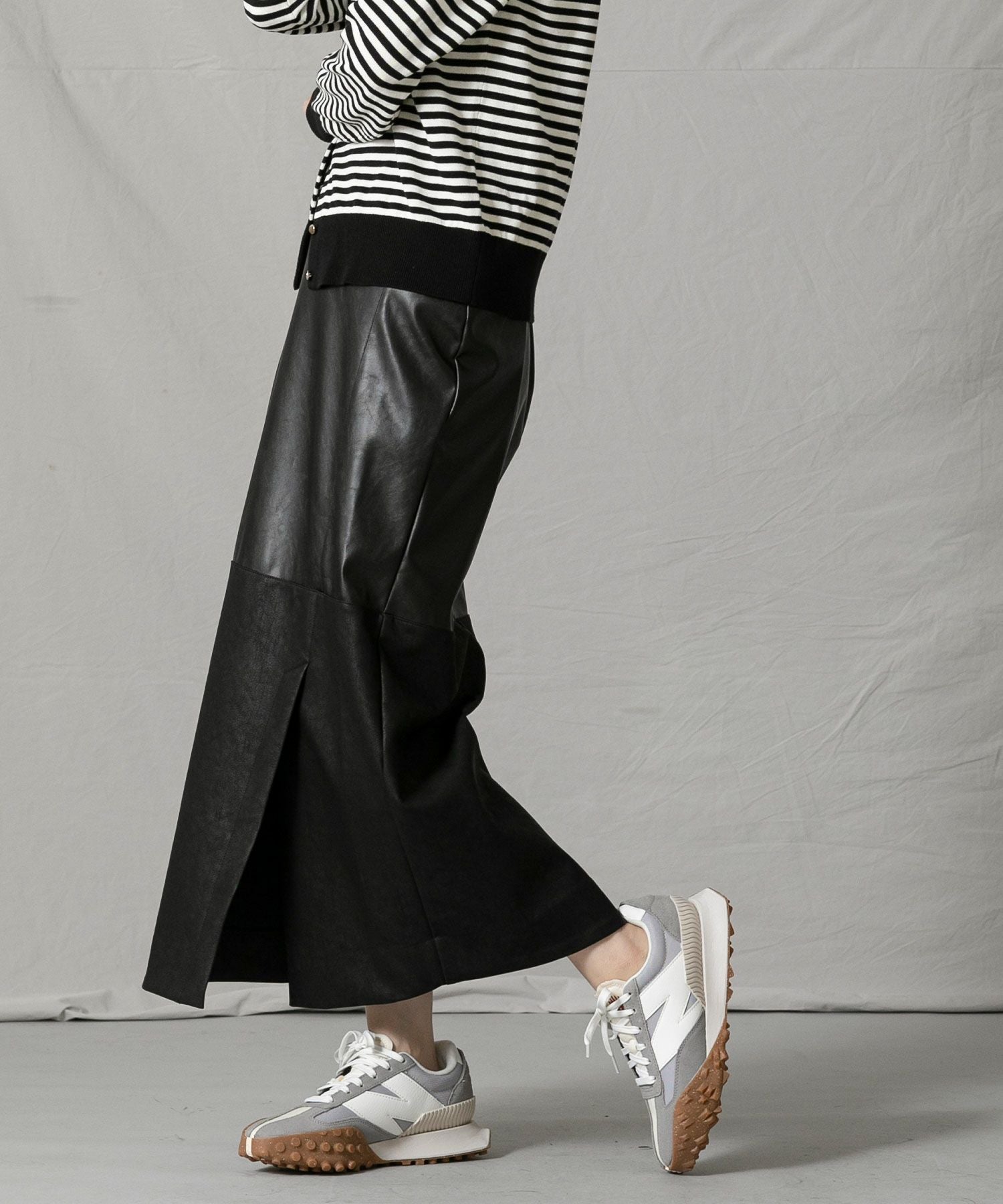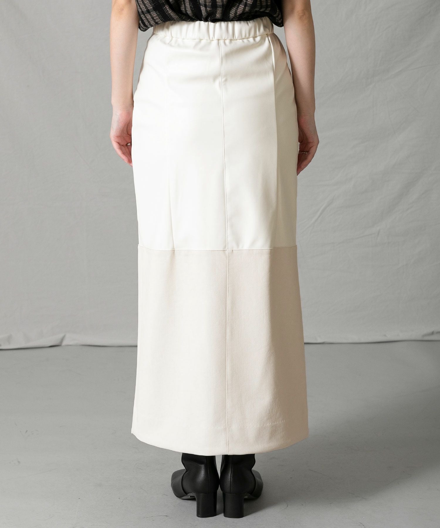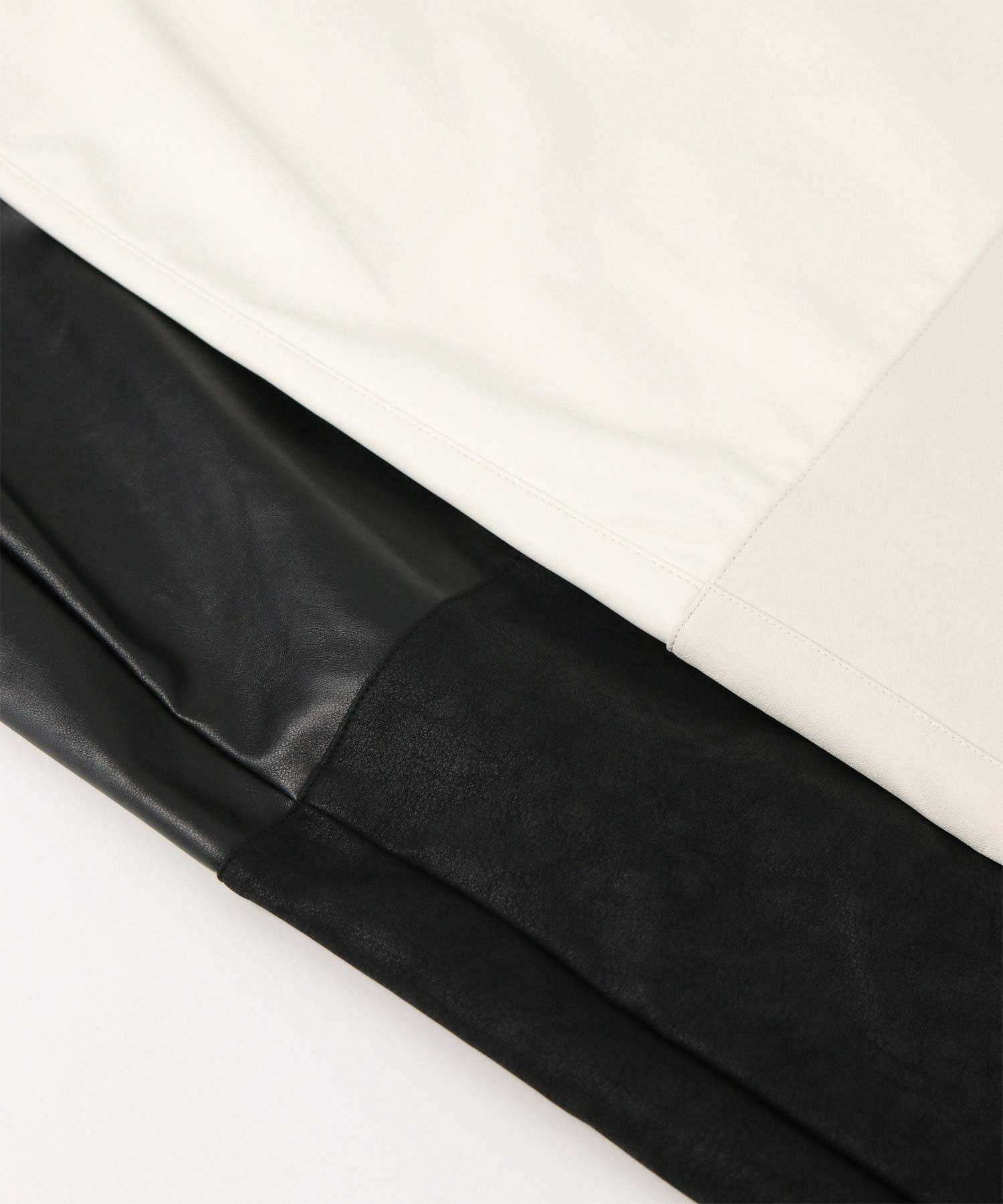 「Torrazzo Donna」から、 二種類のエコレザーを使ったモードな印象のタイトスカートをセレクト。
