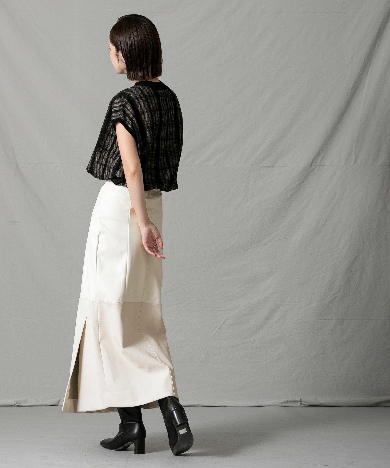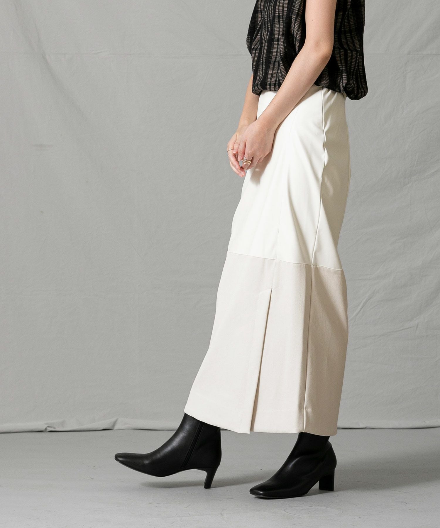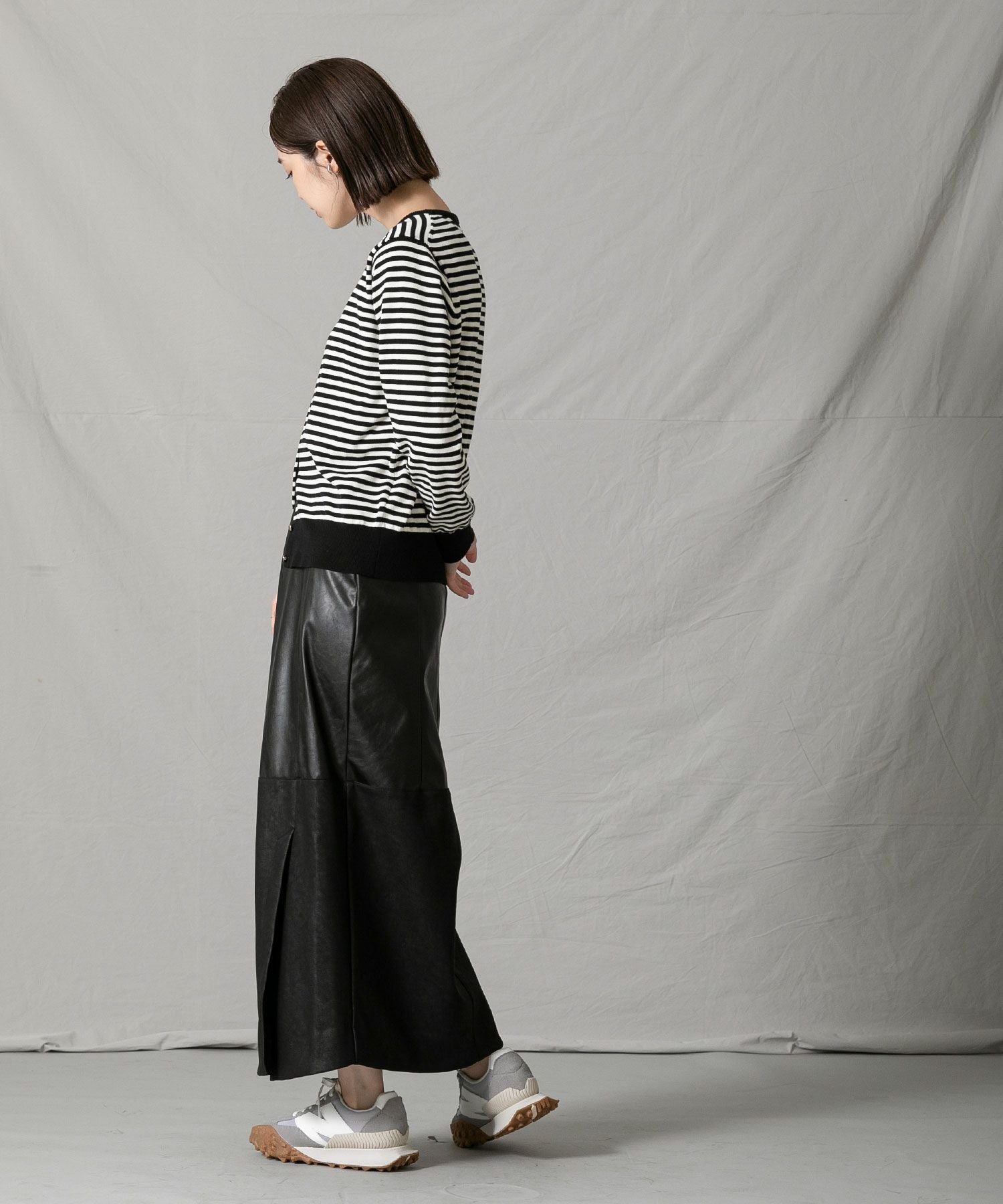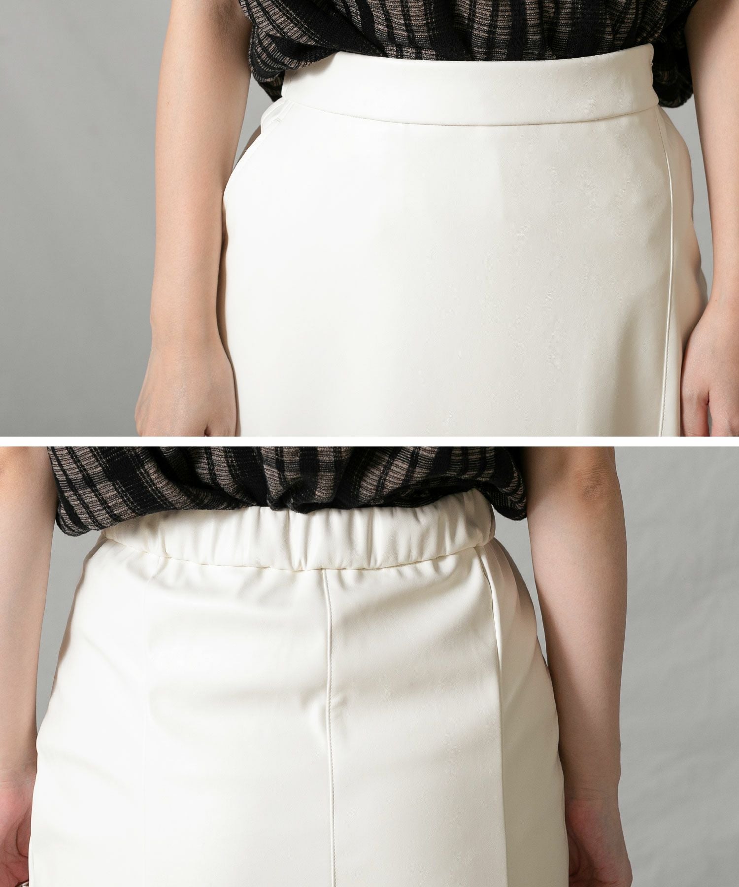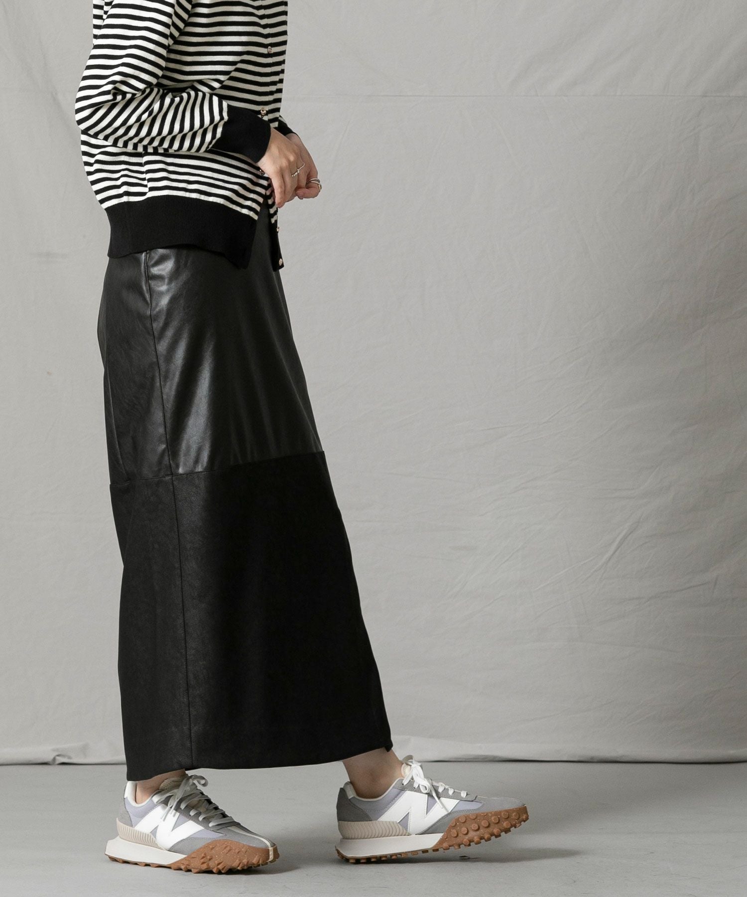 「Torrazzo Donna」から、 二種類のエコレザーを使ったモードな印象のタイトスカートをセレクト。