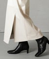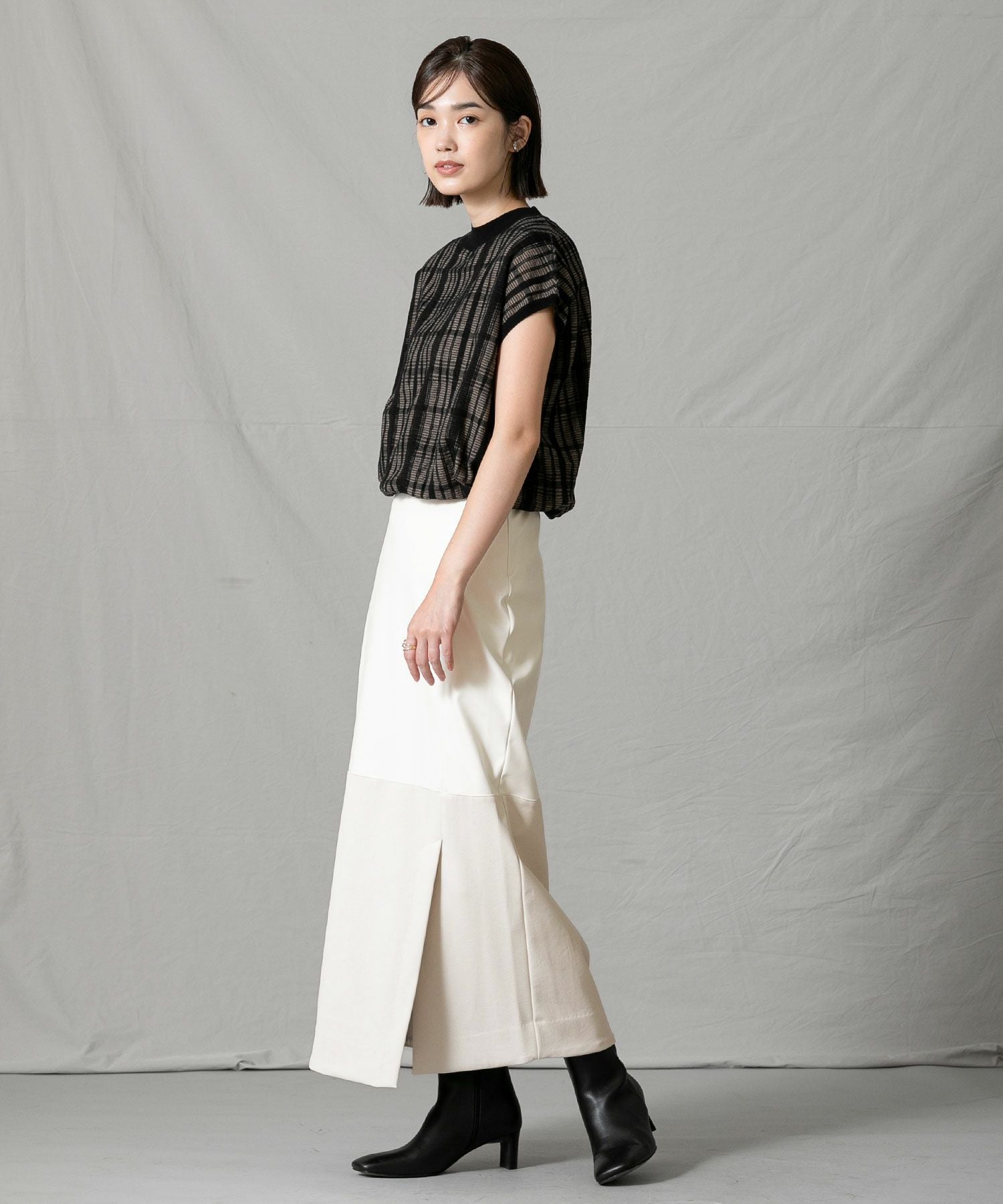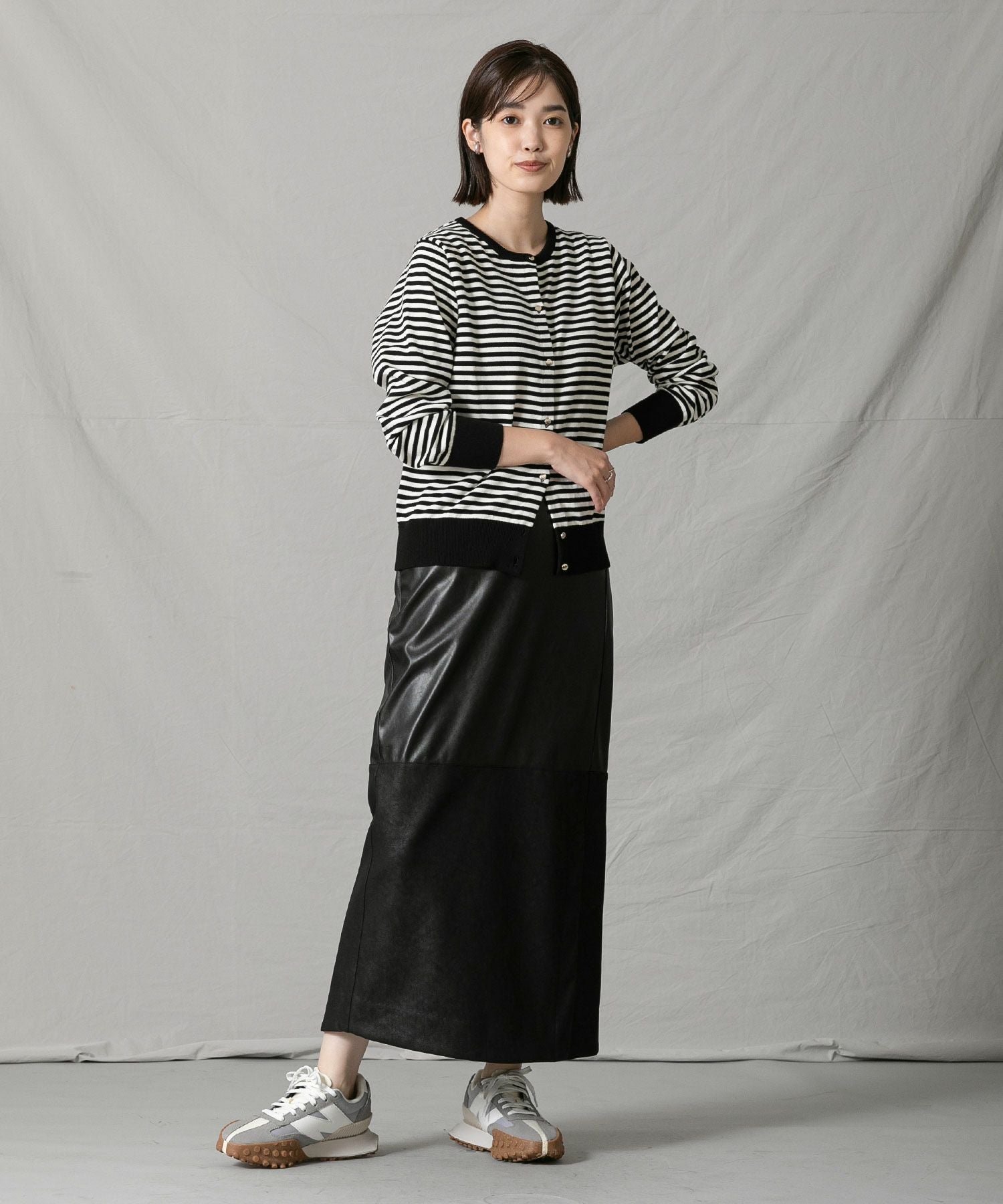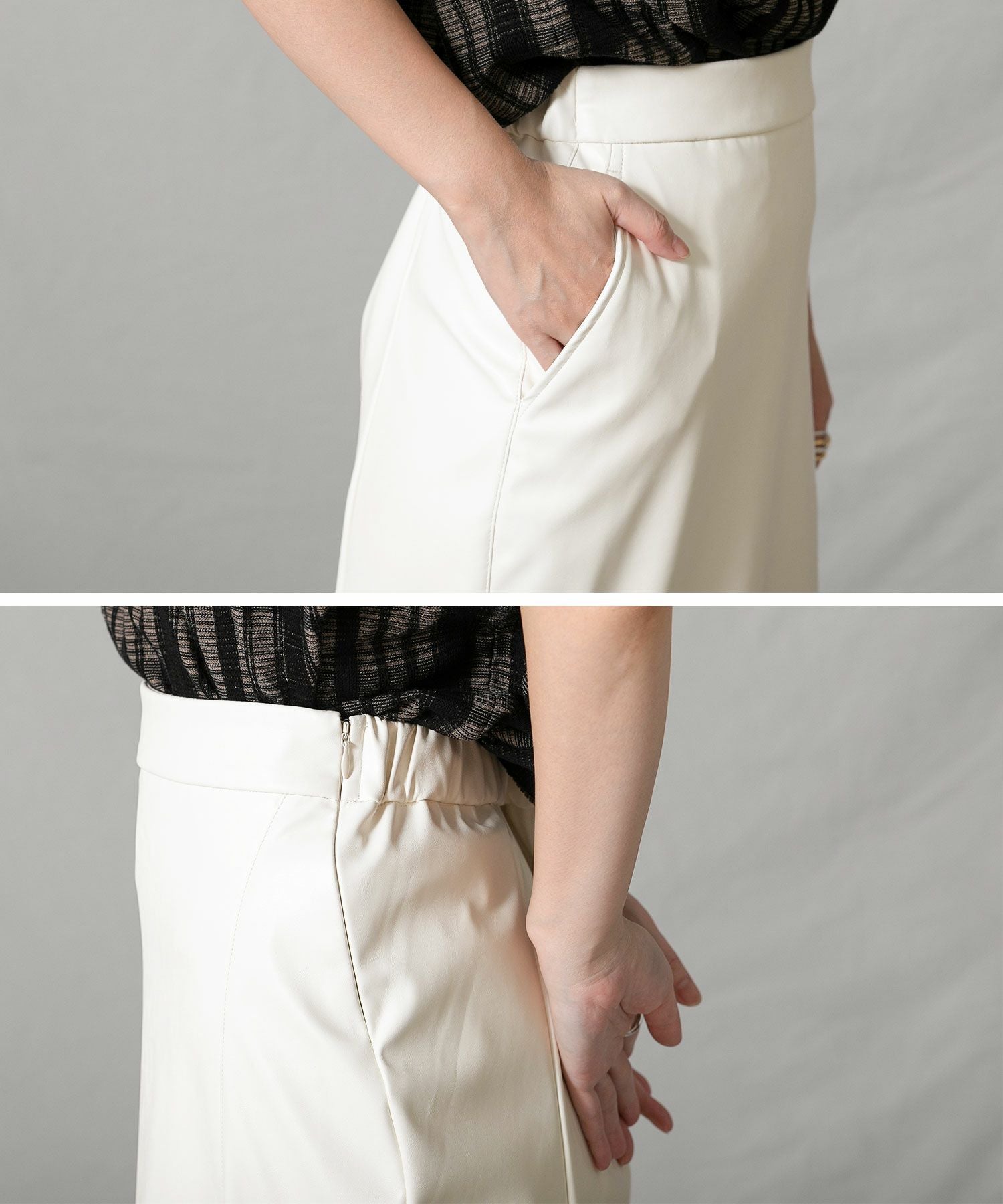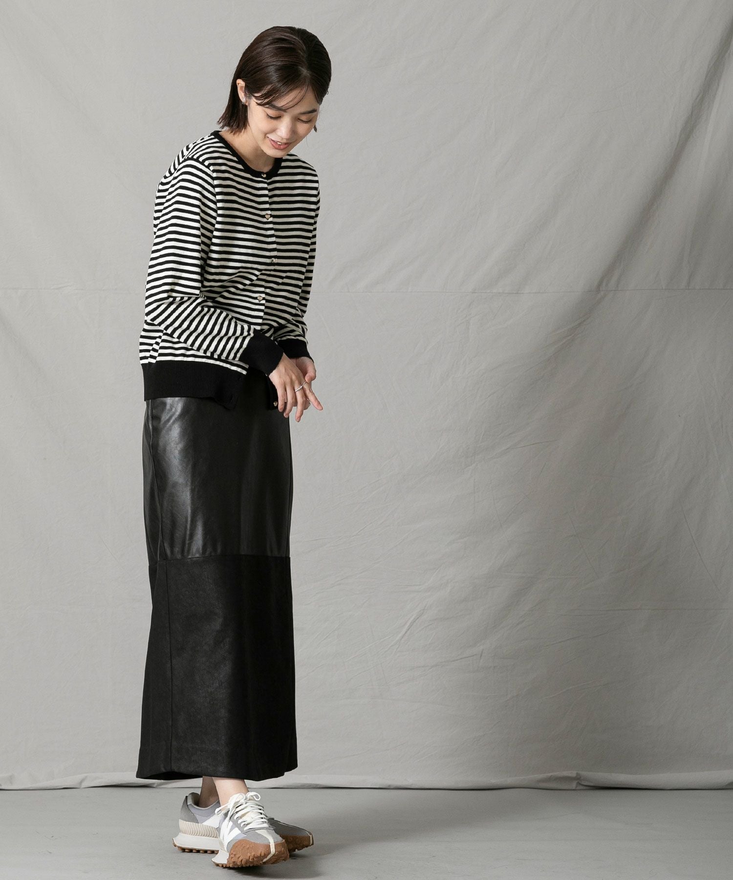 「Torrazzo Donna」から、 二種類のエコレザーを使ったモードな印象のタイトスカートをセレクト。