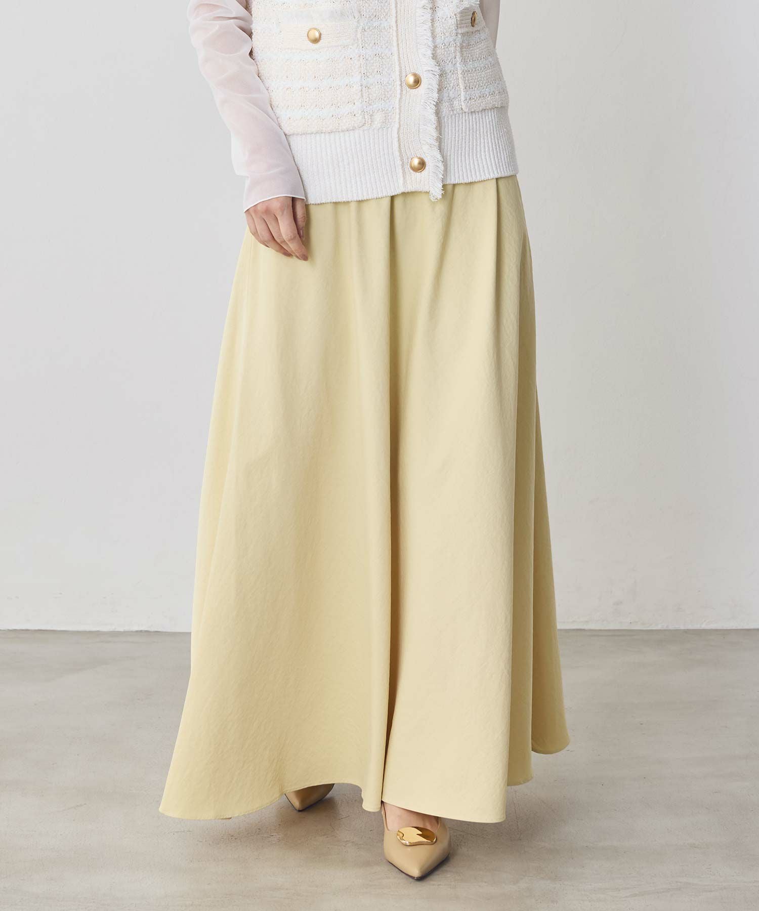 裾に向けて広がる自然なフレアシルエットが、女性らしさを引き上げてくれます。