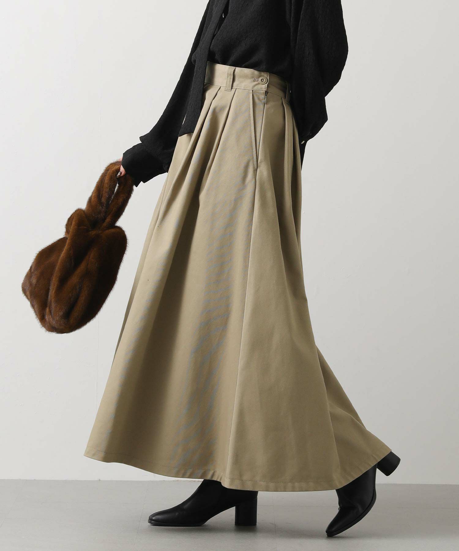 【Dickiesディッキーズ】から、ウエストにタックが入ったフレアスカートをセレクト。