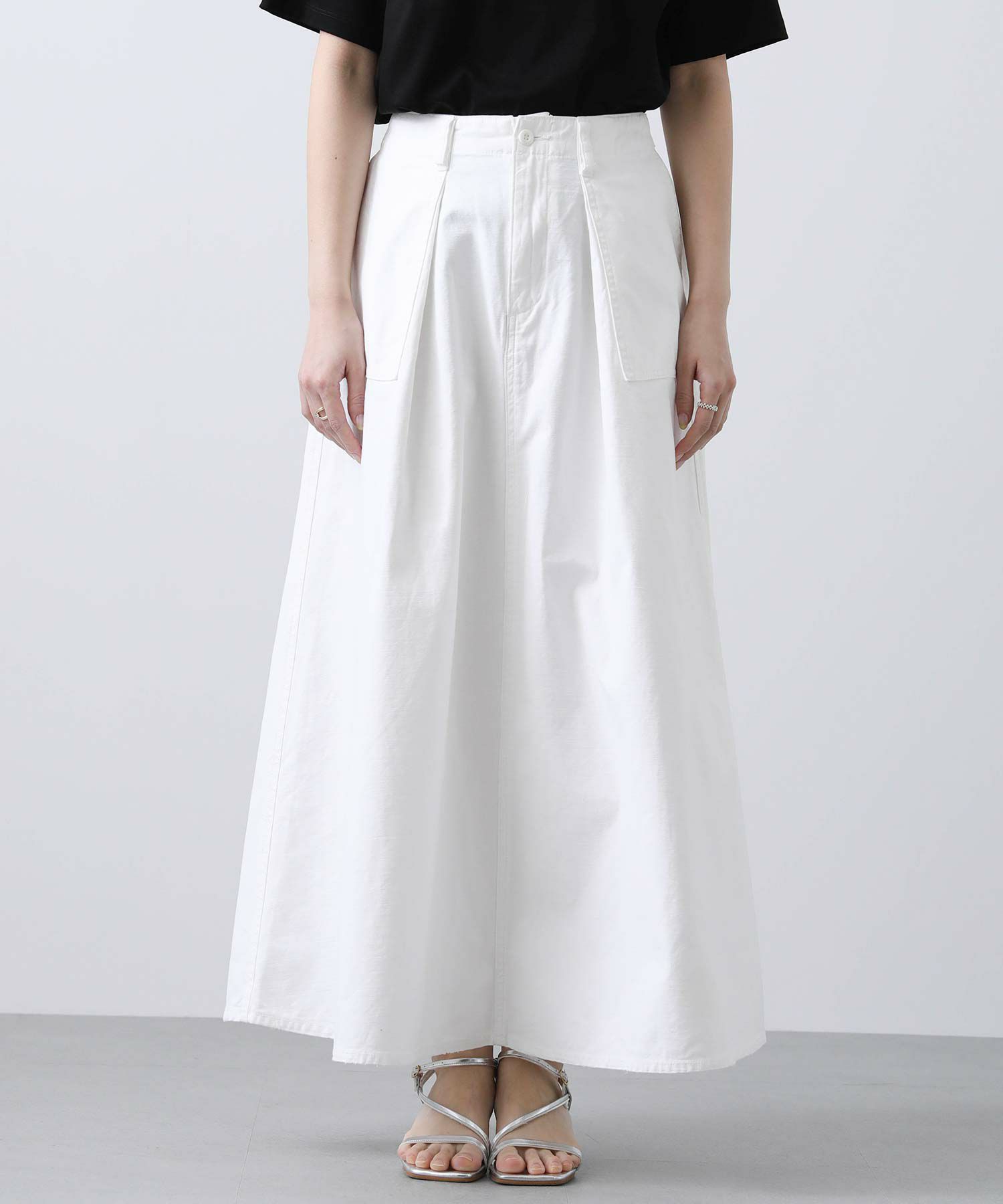 【Healthydenim/ヘルシーデニム】から、ウエストにタックを入れ、程よいボリューム感のあるフレアシルエットのスカートをセレクト。
