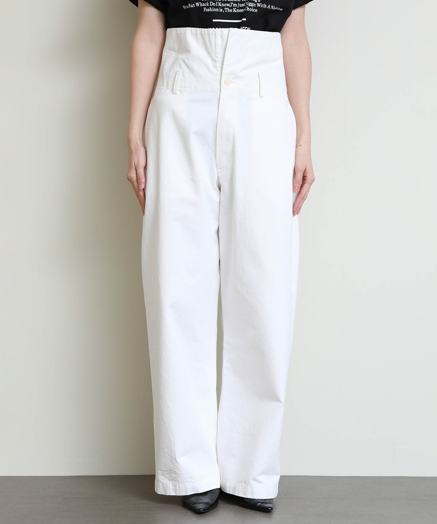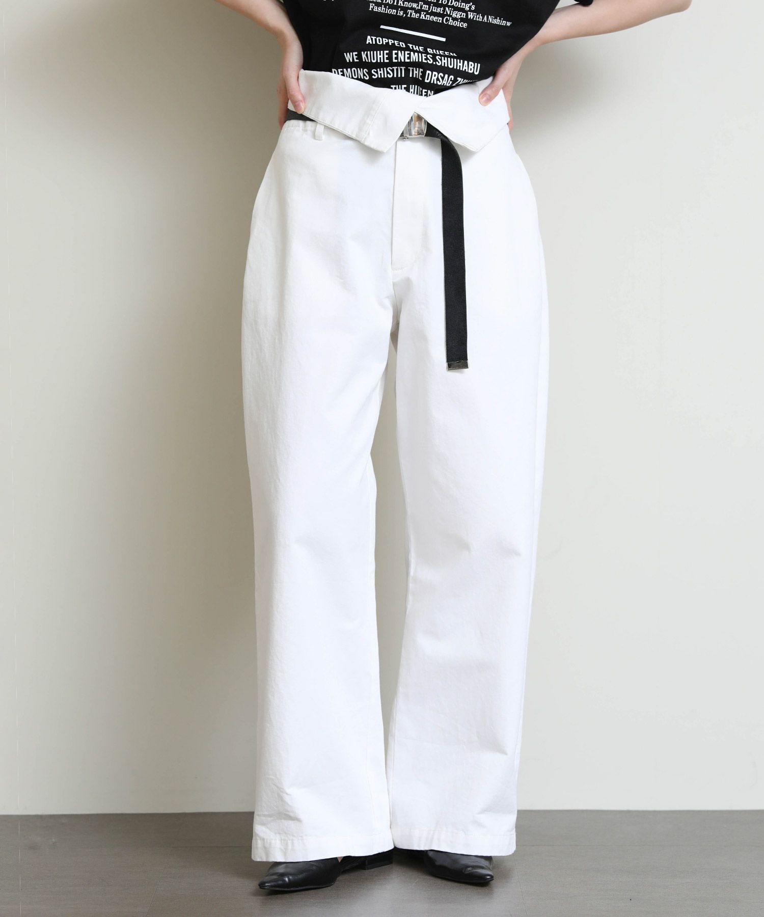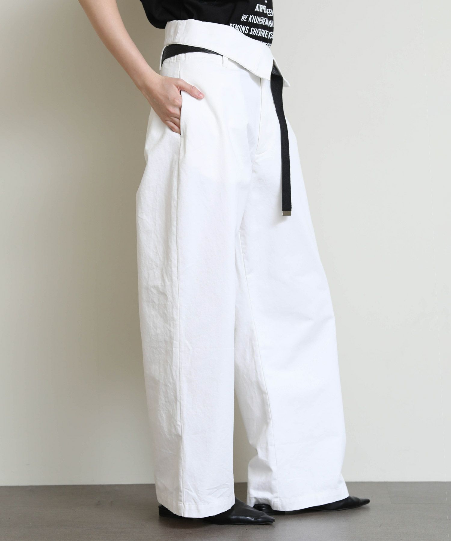 存在感のあるウエストデザインが目を惹くワイドパンツ。