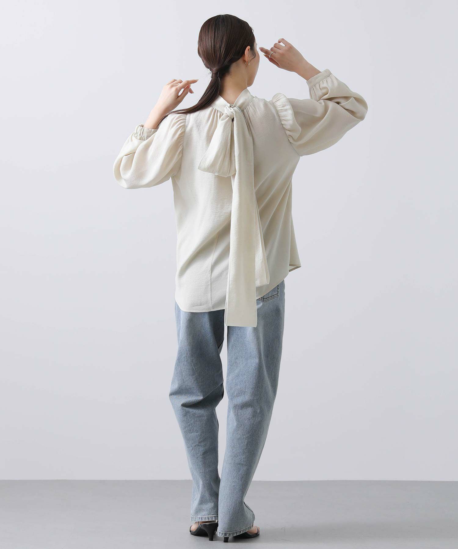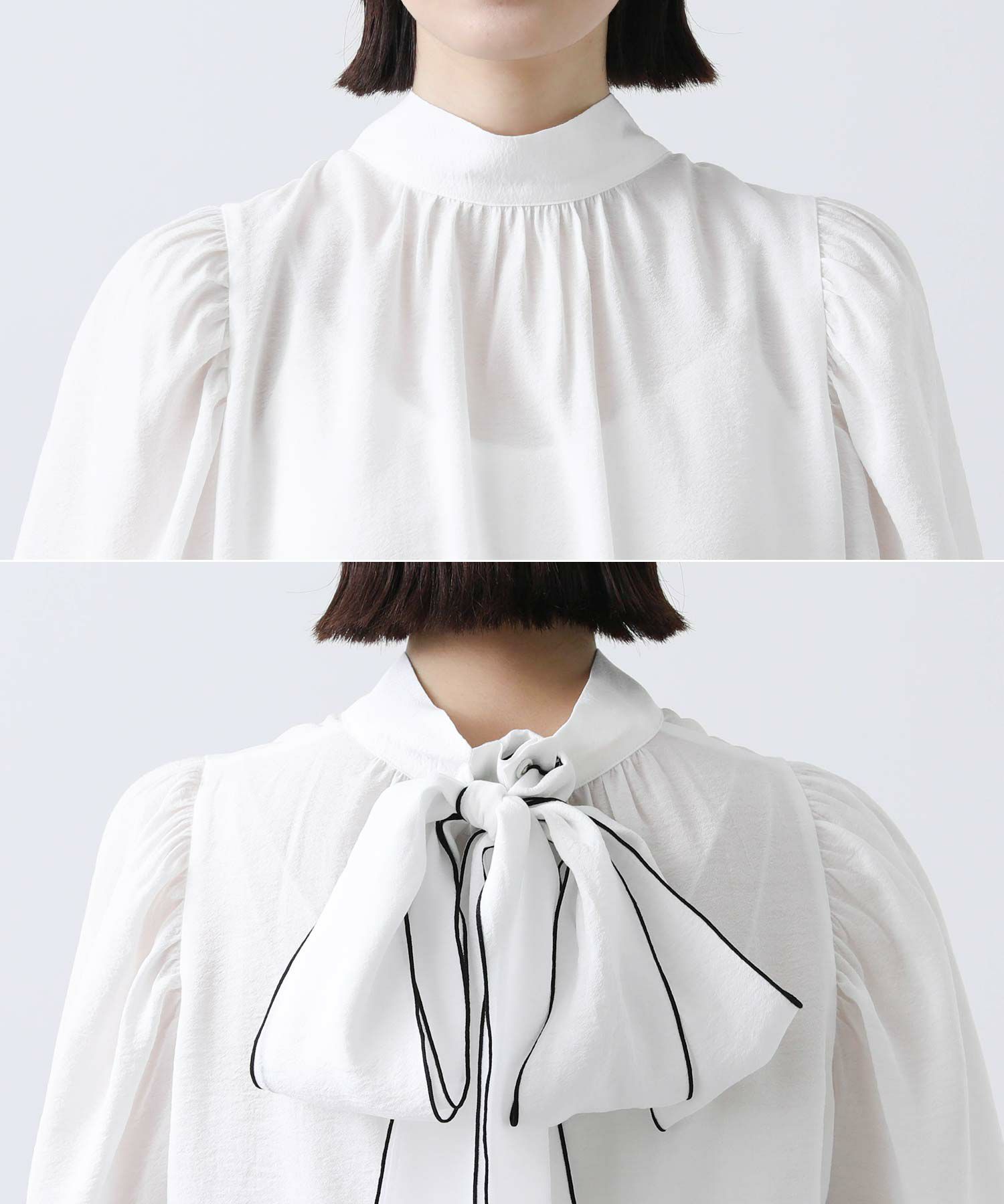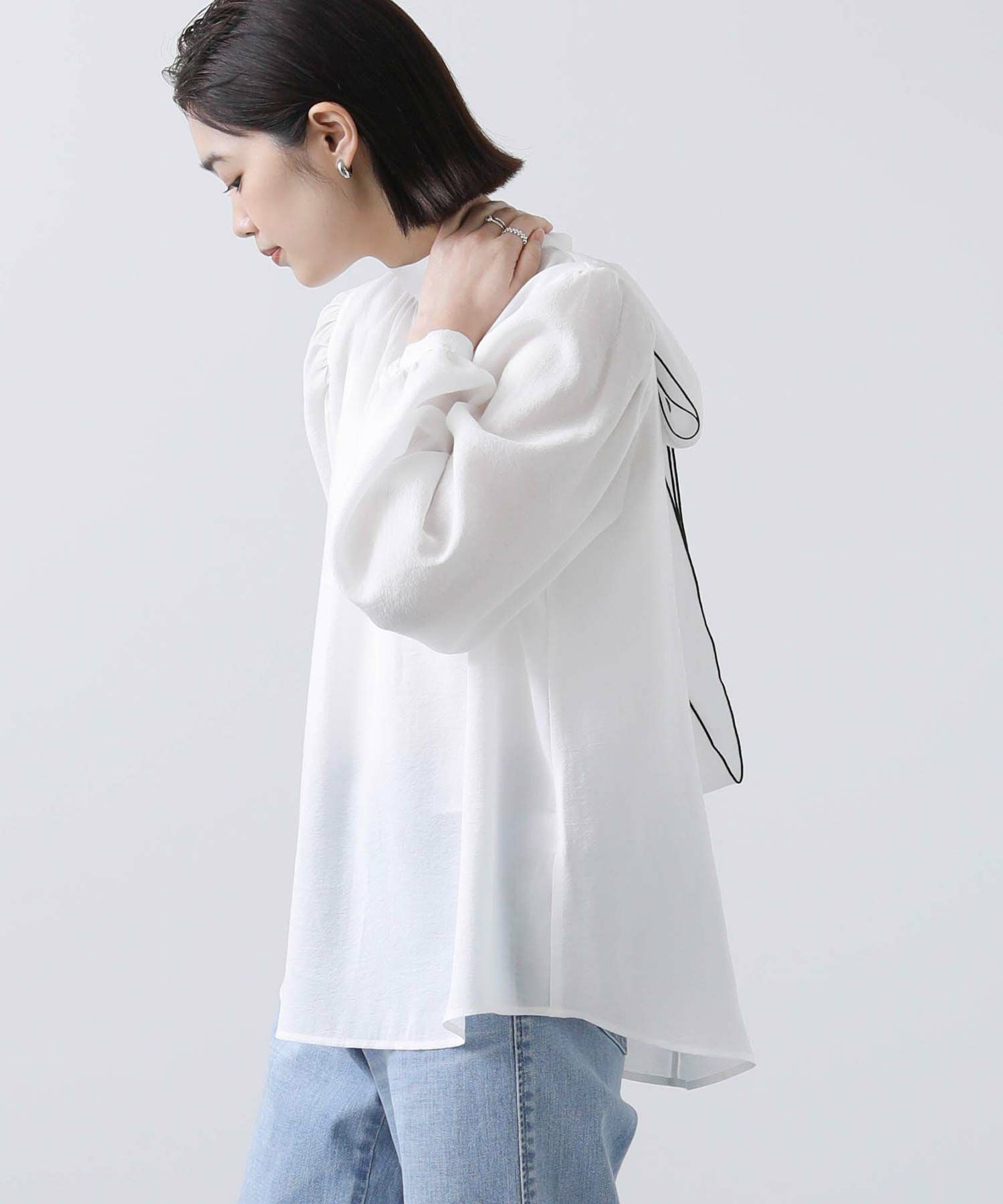 春らしいシアーの風合いが軽やかなリボンブラウス。