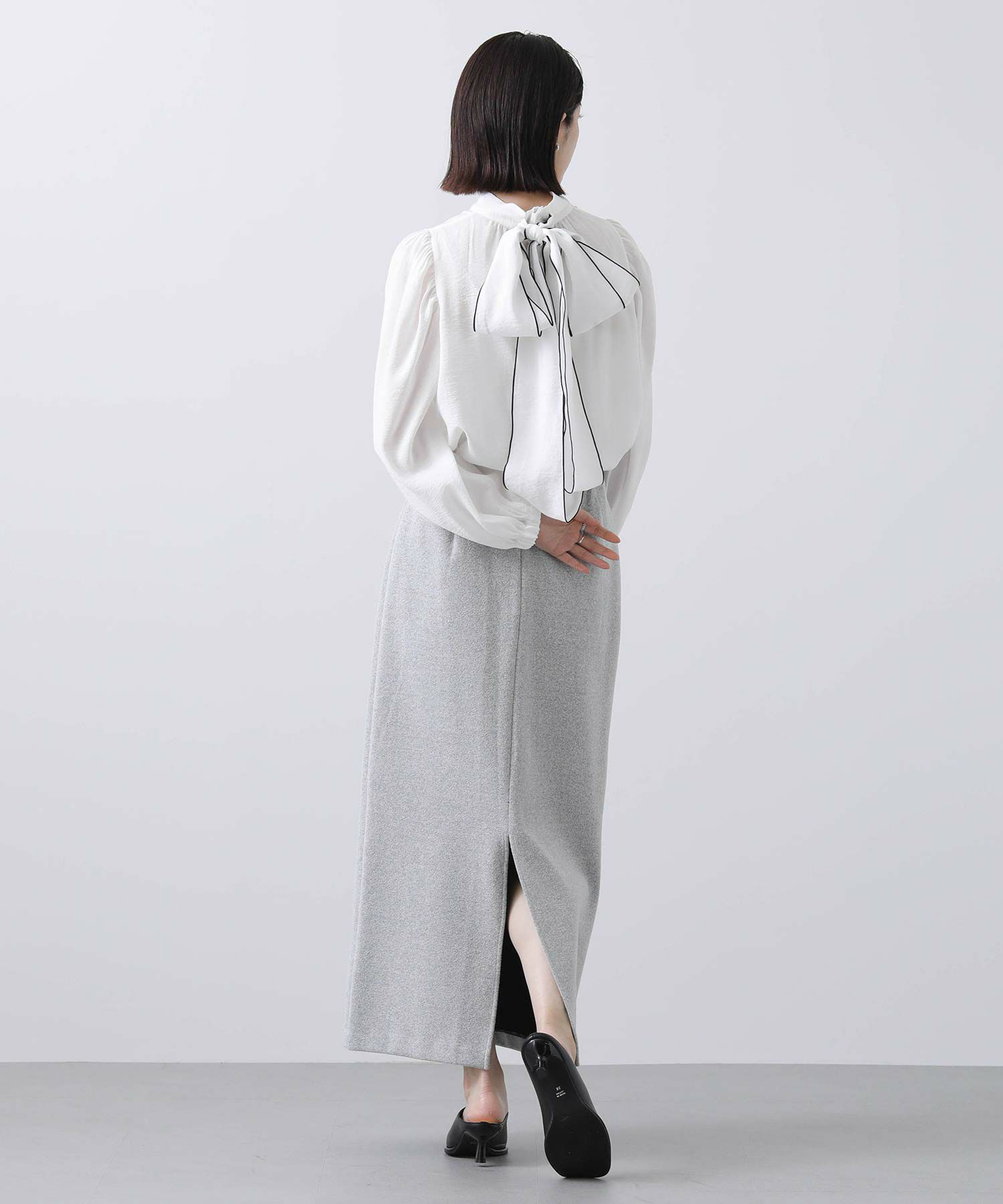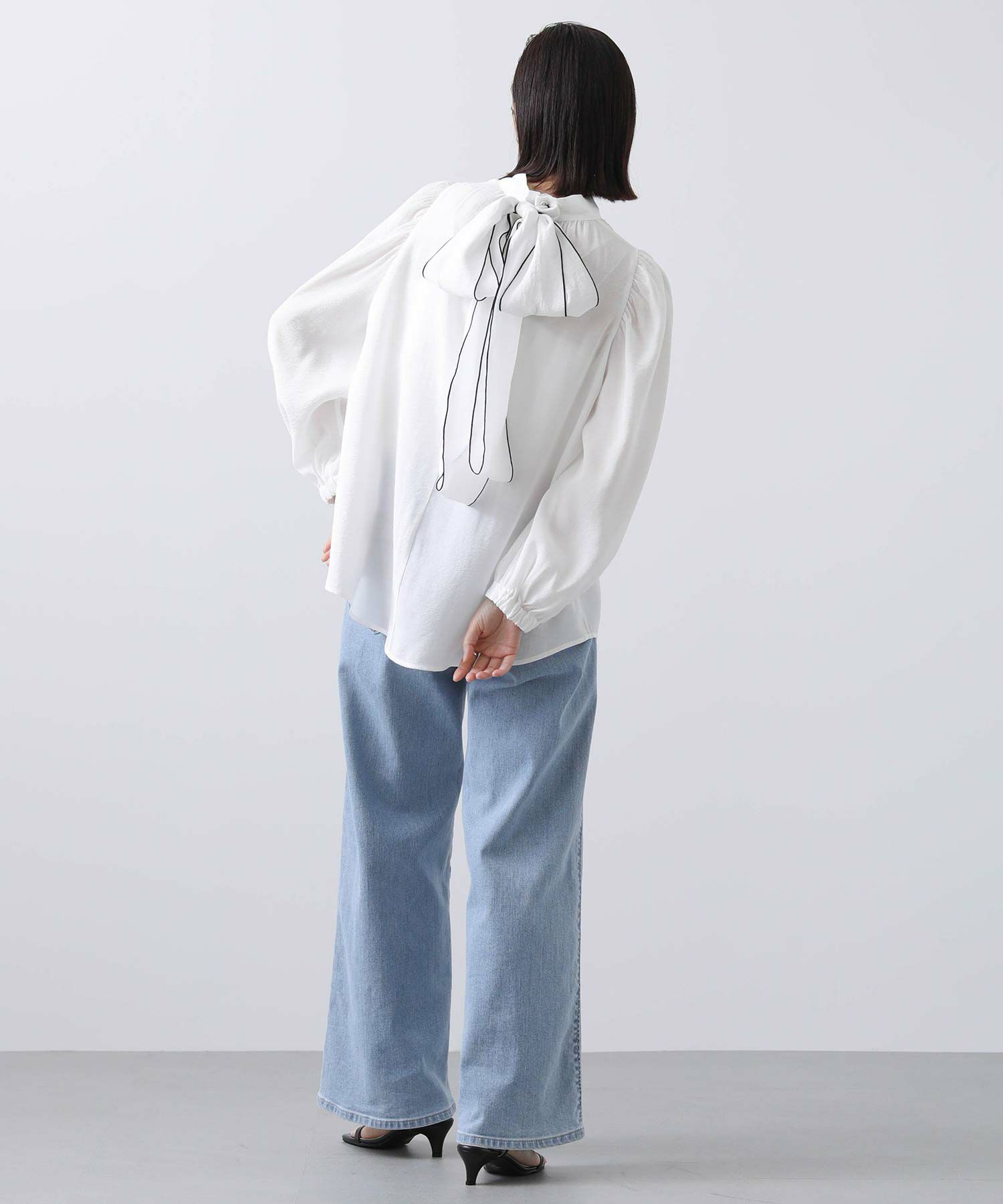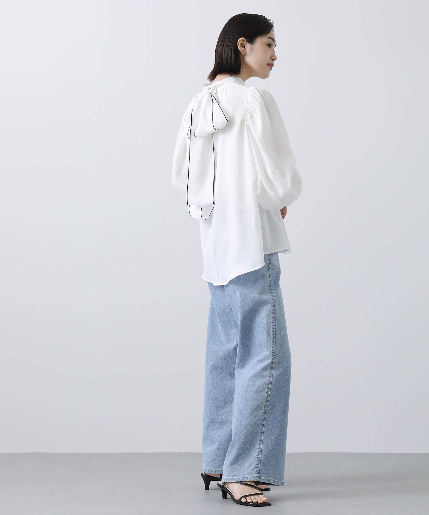 春らしいシアーの風合いが軽やかなリボンブラウス。