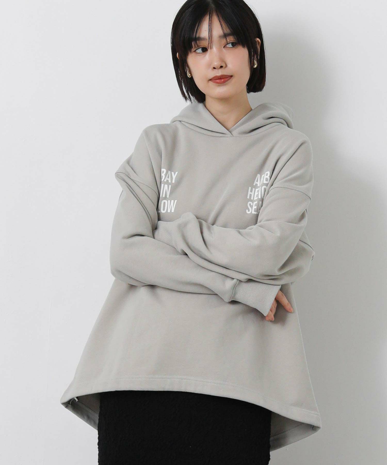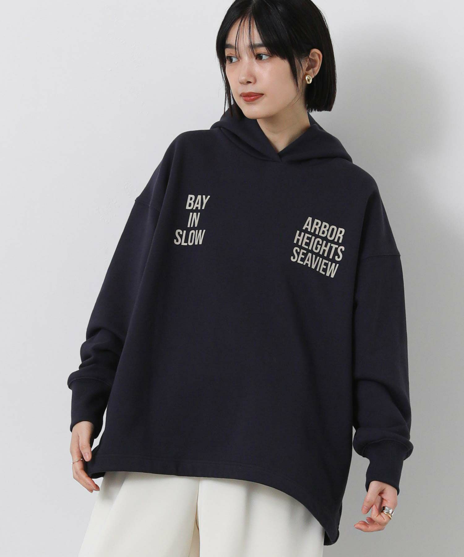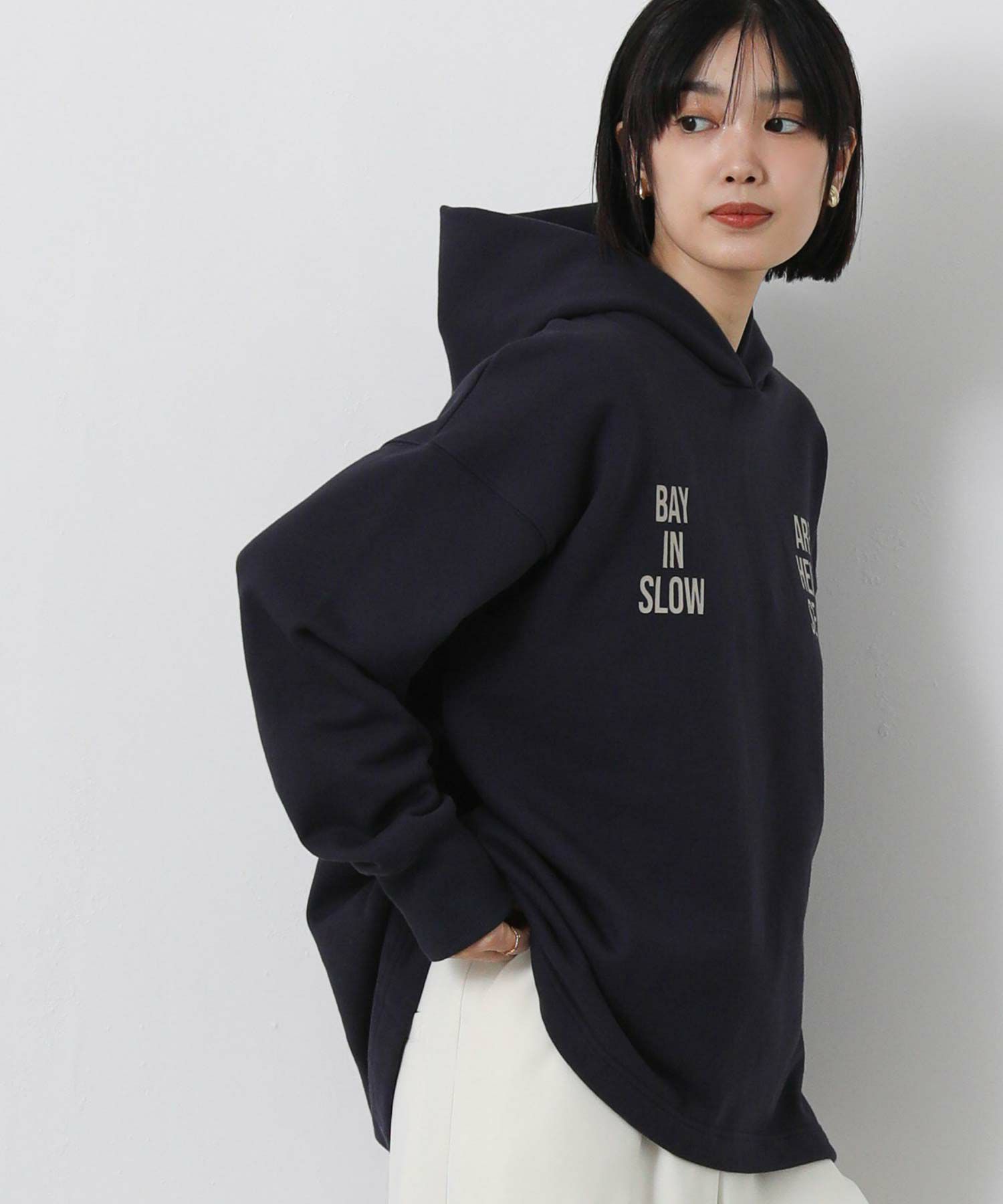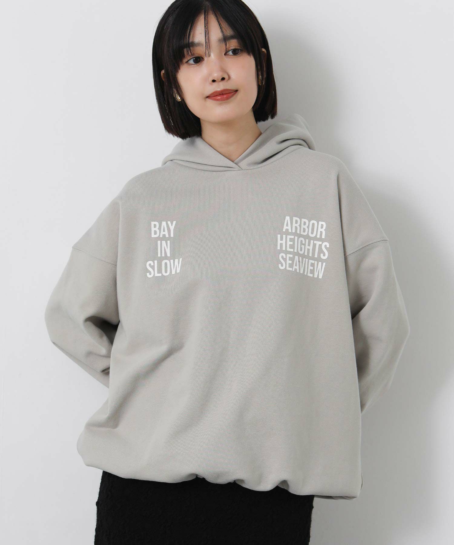 ロゴのインパクトが印象的なフーディー。