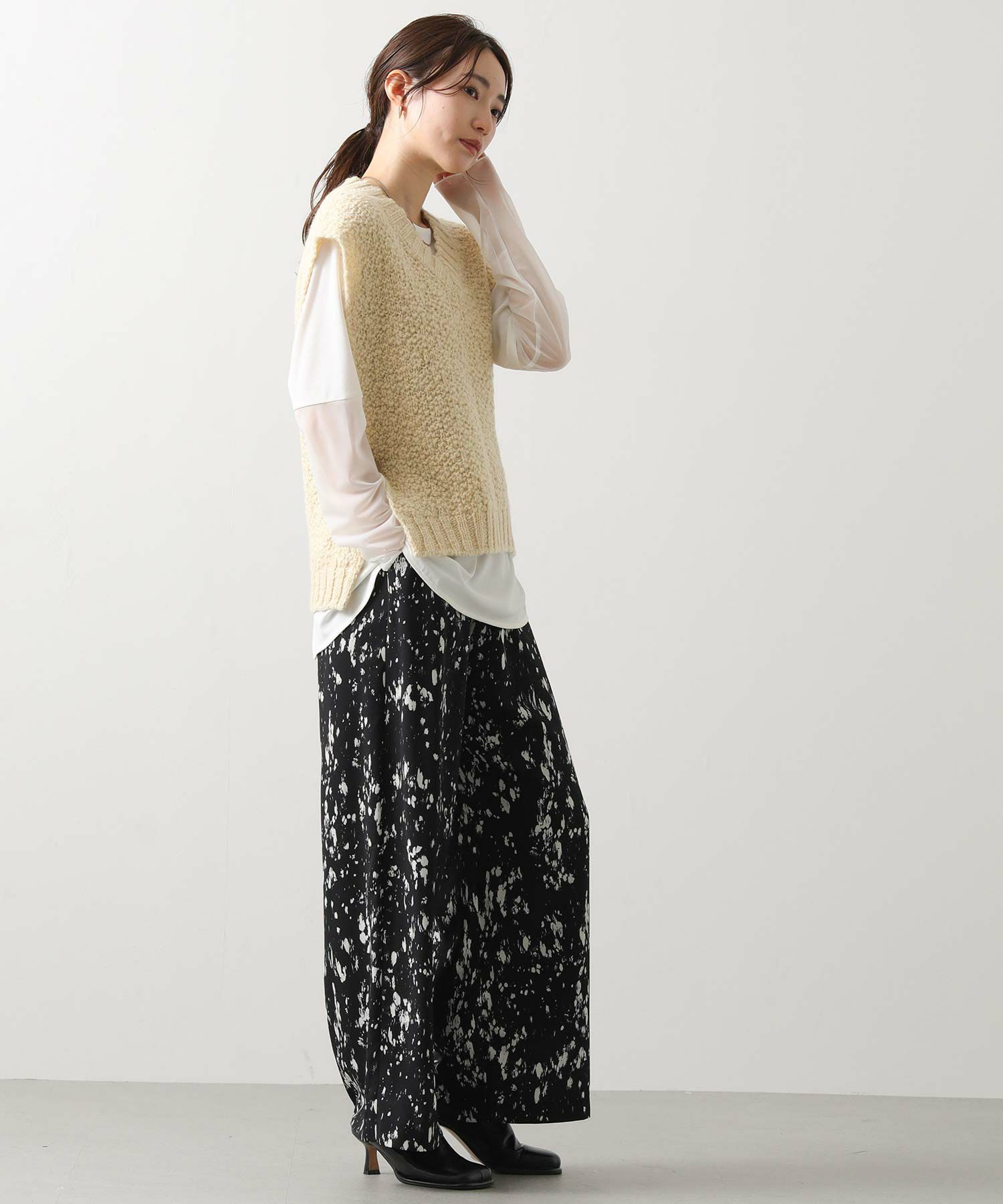 シャツやカットソー、アウターにも自由に合わせやすいアイテム。