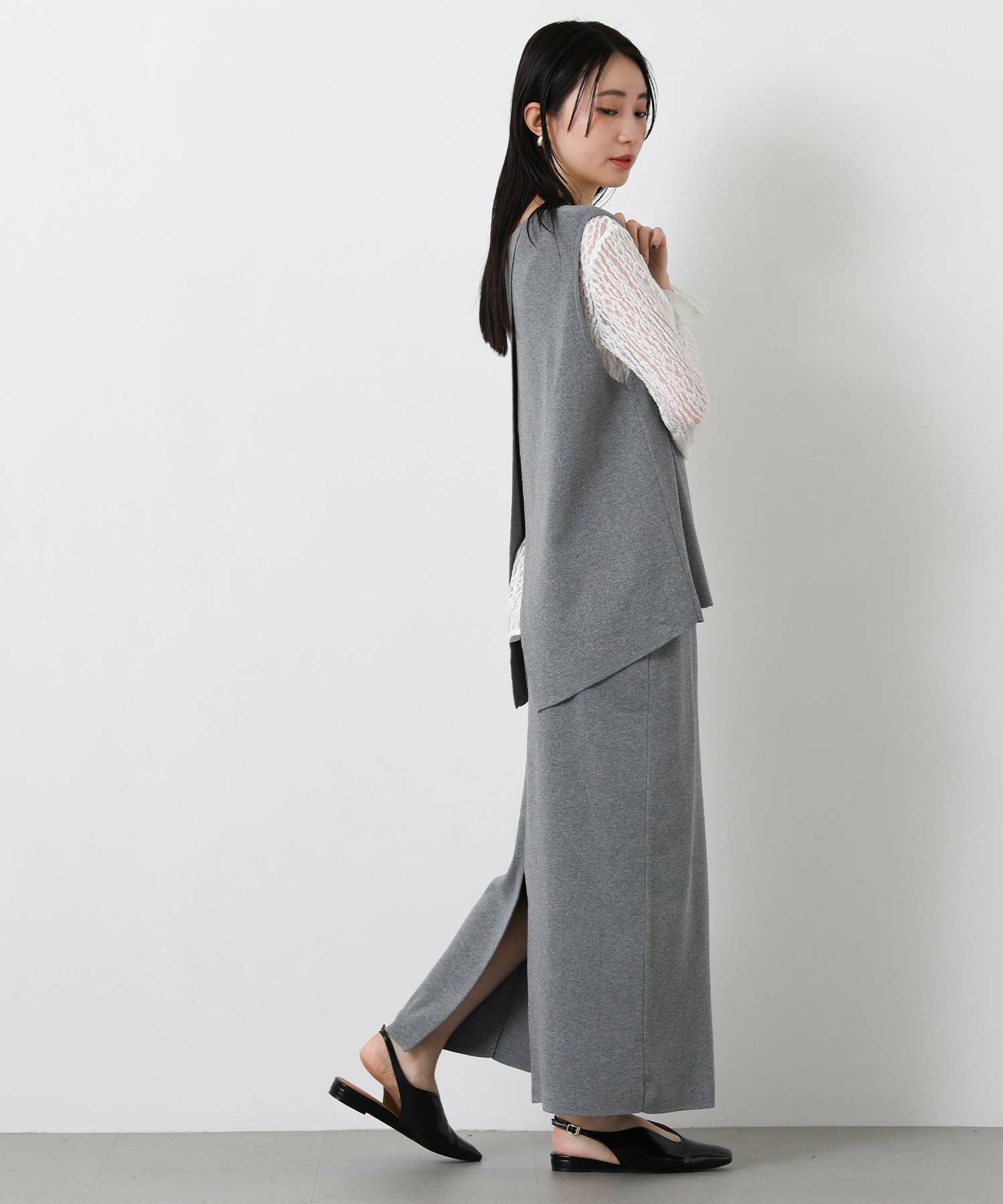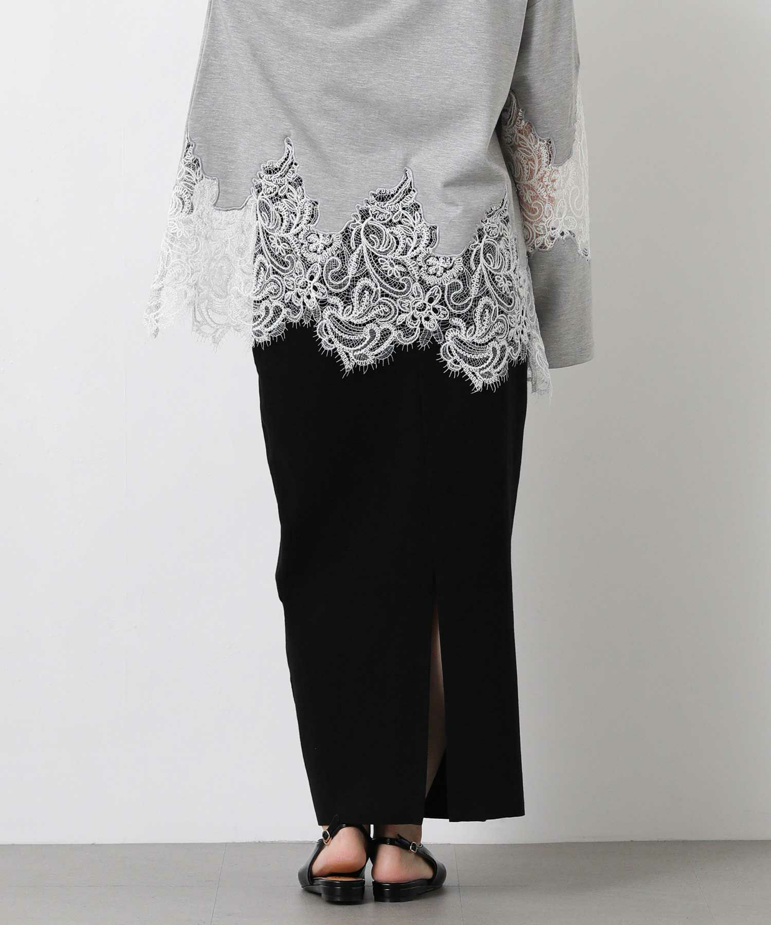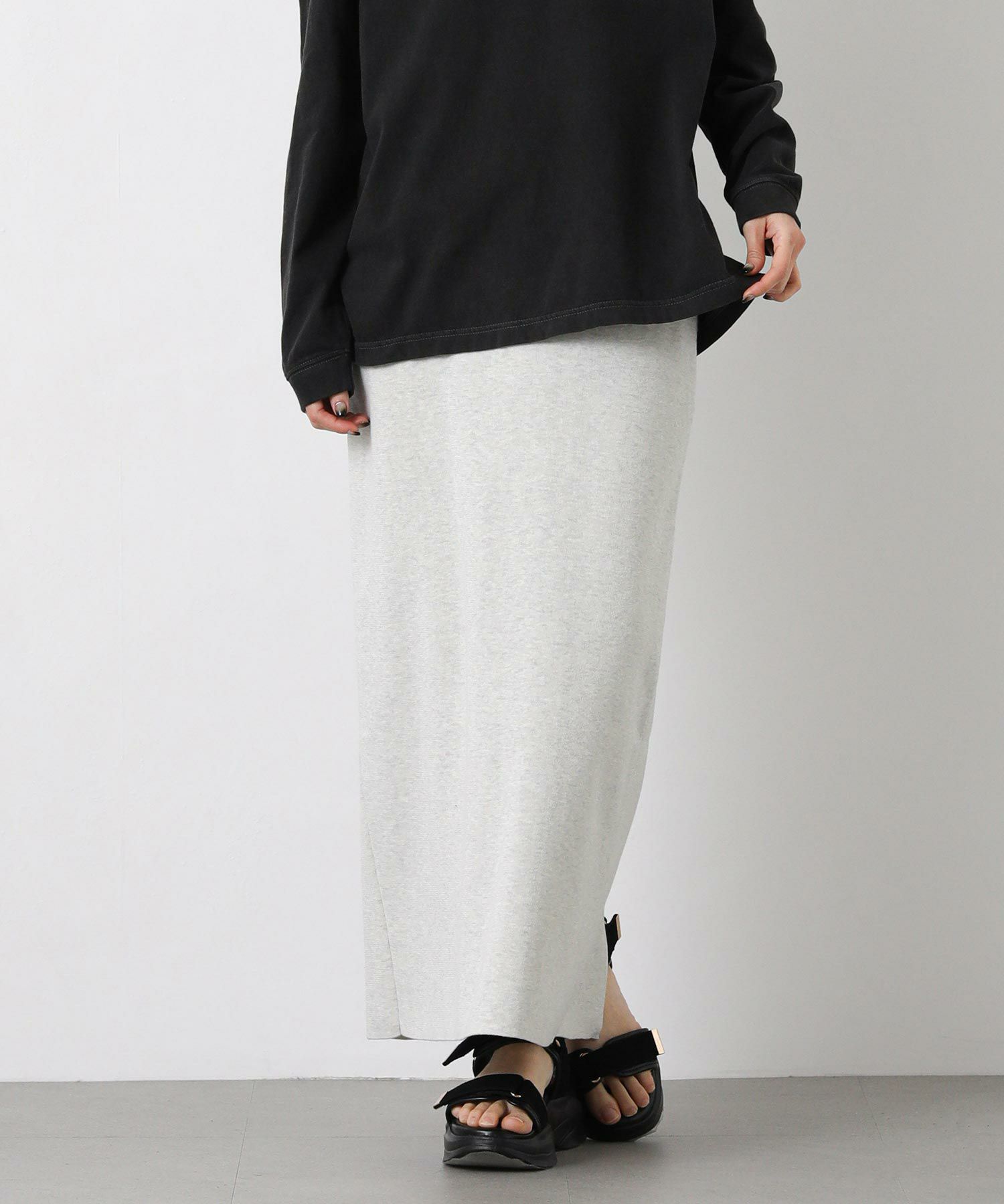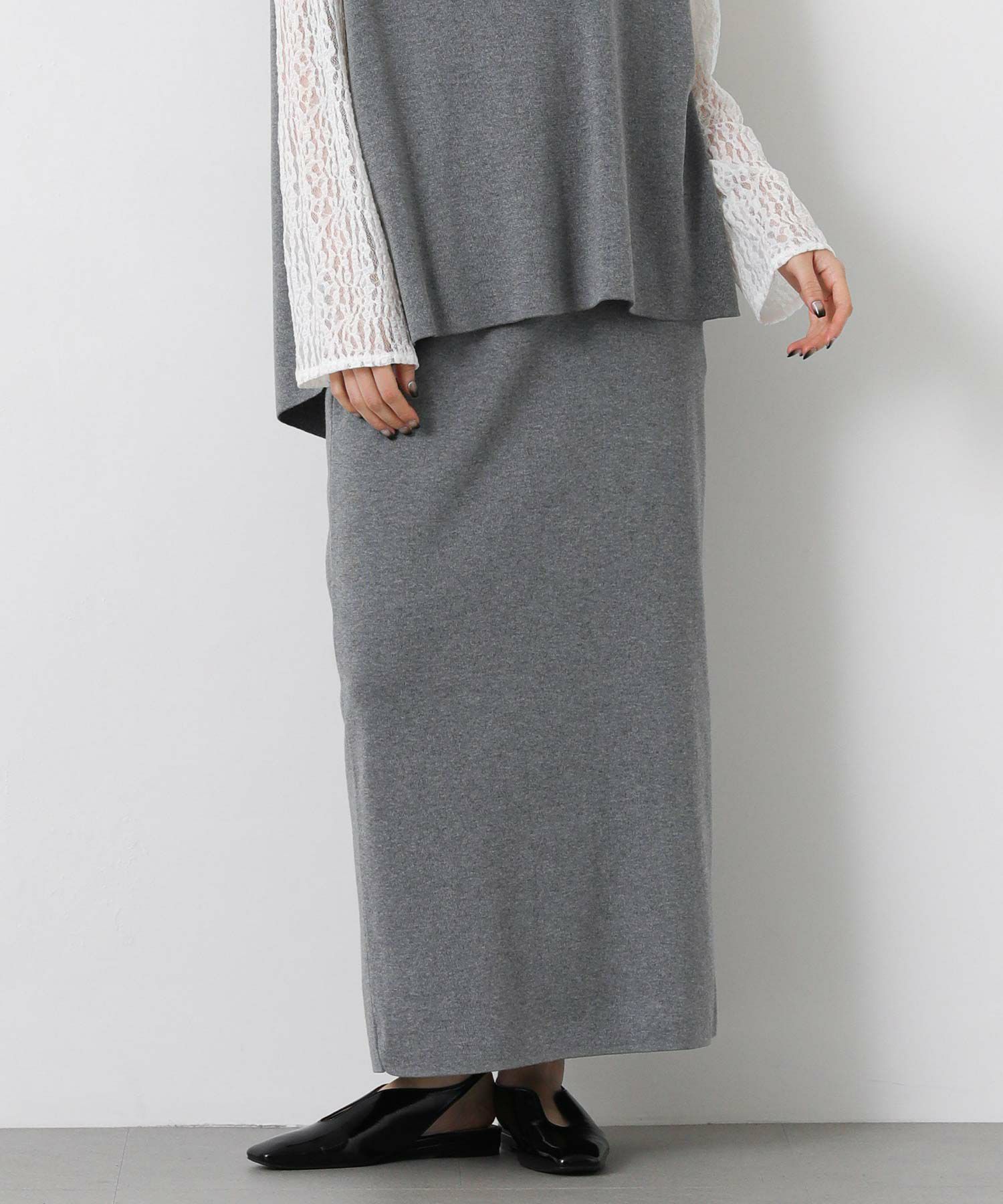 さりげない光沢感のあるサラっとした着心地の糸を使用したタイトスカート。