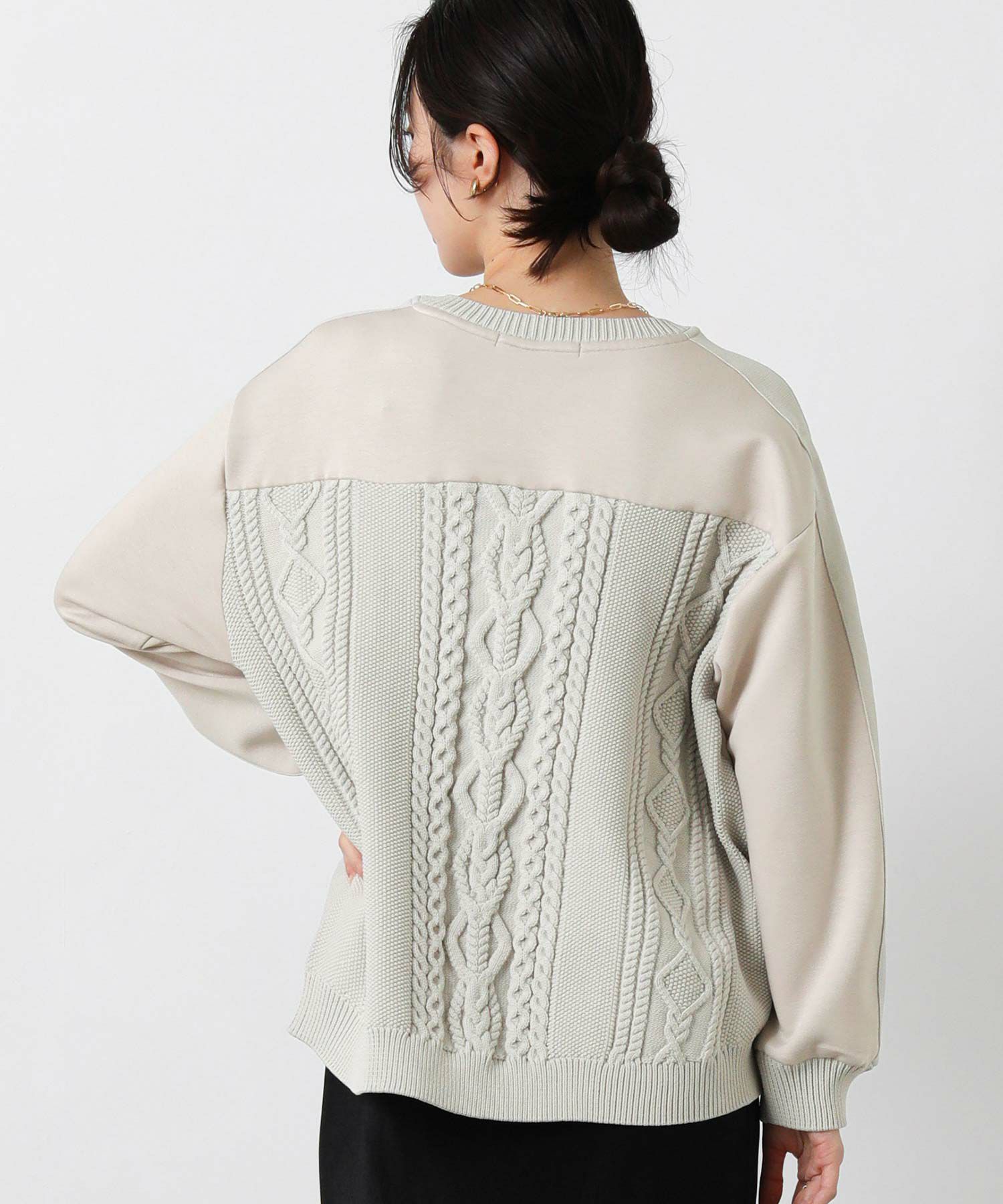 ケーブルニットとカットソーをドッキングしたプルオーバー。