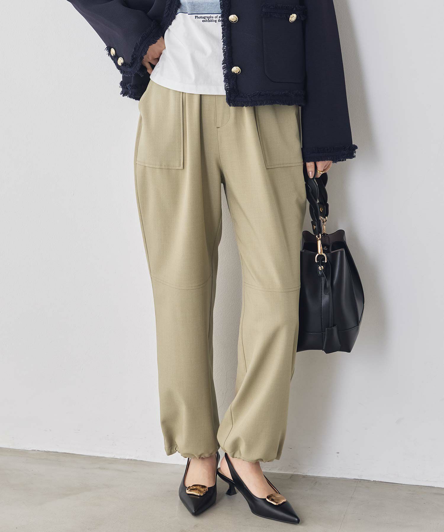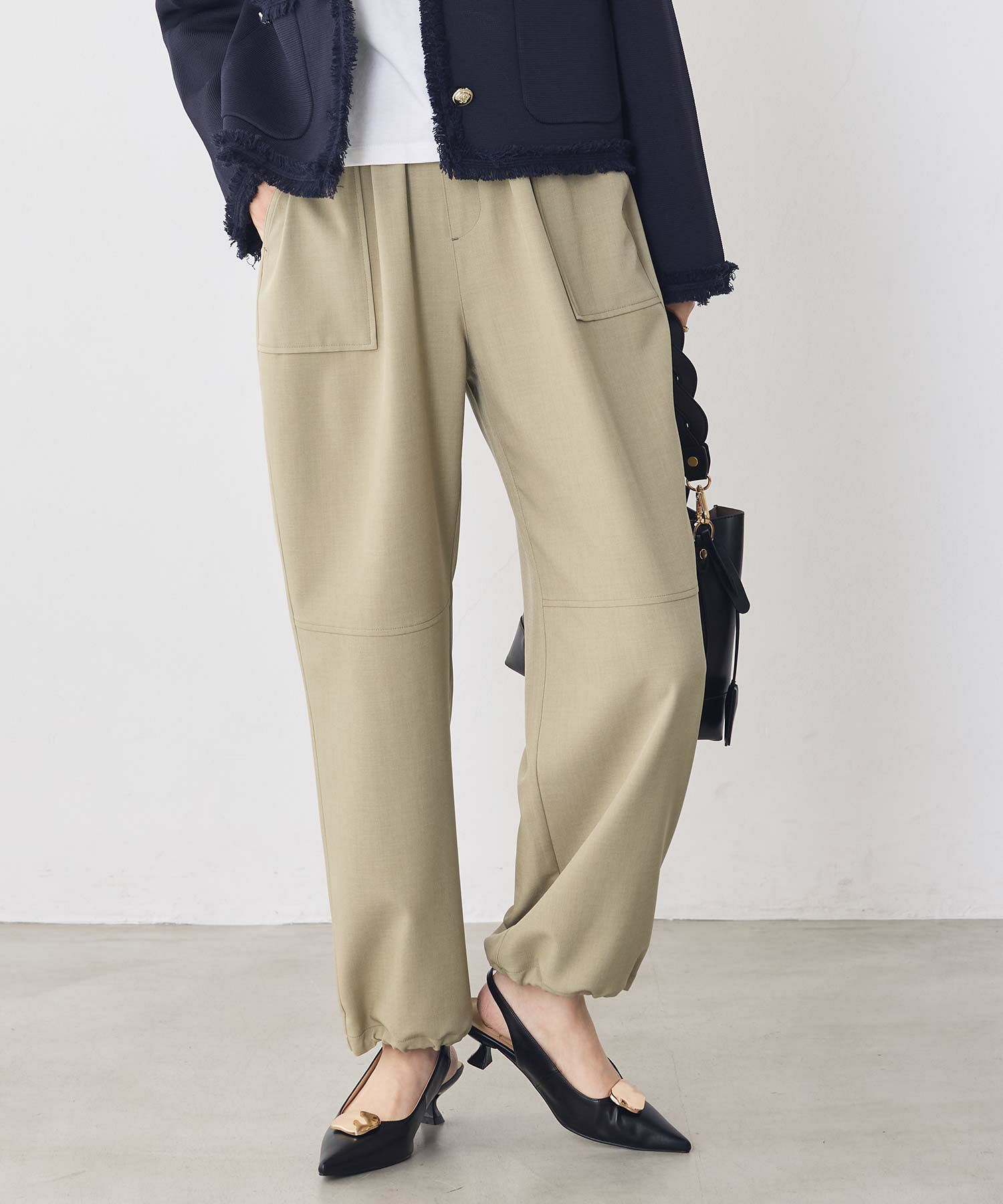 ウエストは総ゴム仕様でラフな着用感ながらも、脚のラインを綺麗に魅せてくれるシルエットにこだわった1着。