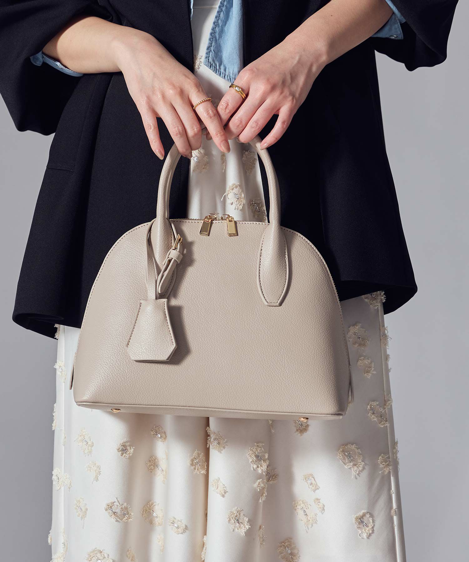取り外し可能なショルダーストラップ付きで手持ちのハンドバッグとしても、肩掛けのショルダーバッグとしても楽しめる2way仕様。
