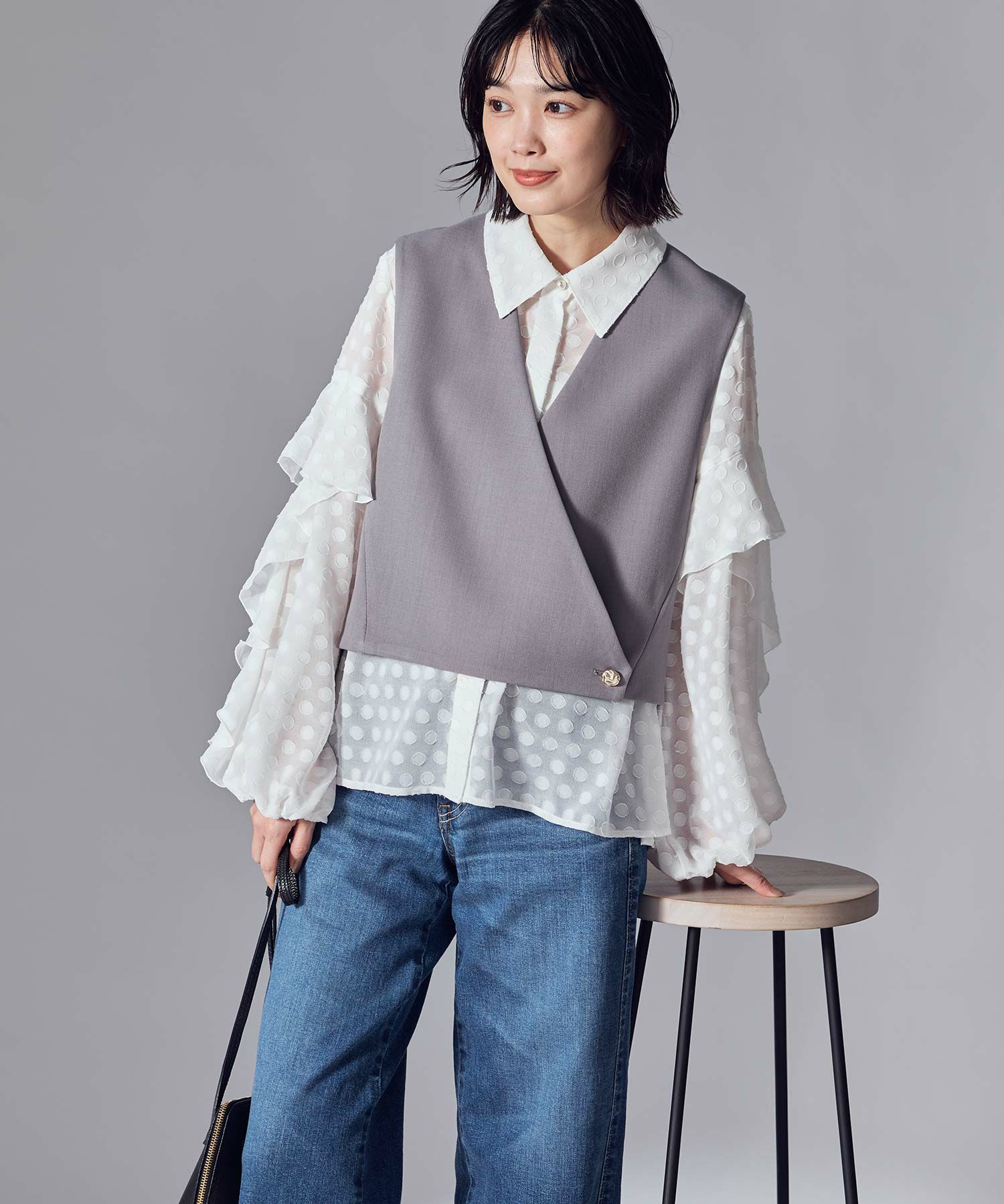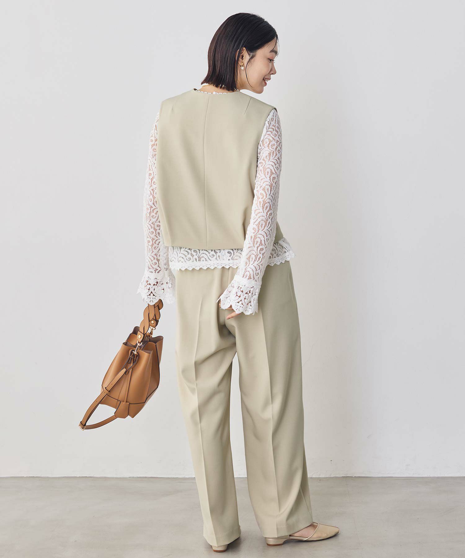ジャケットのセットアップよりも堅苦しくならず、合わせるインナー次第でスタイリングの表情が変わります。