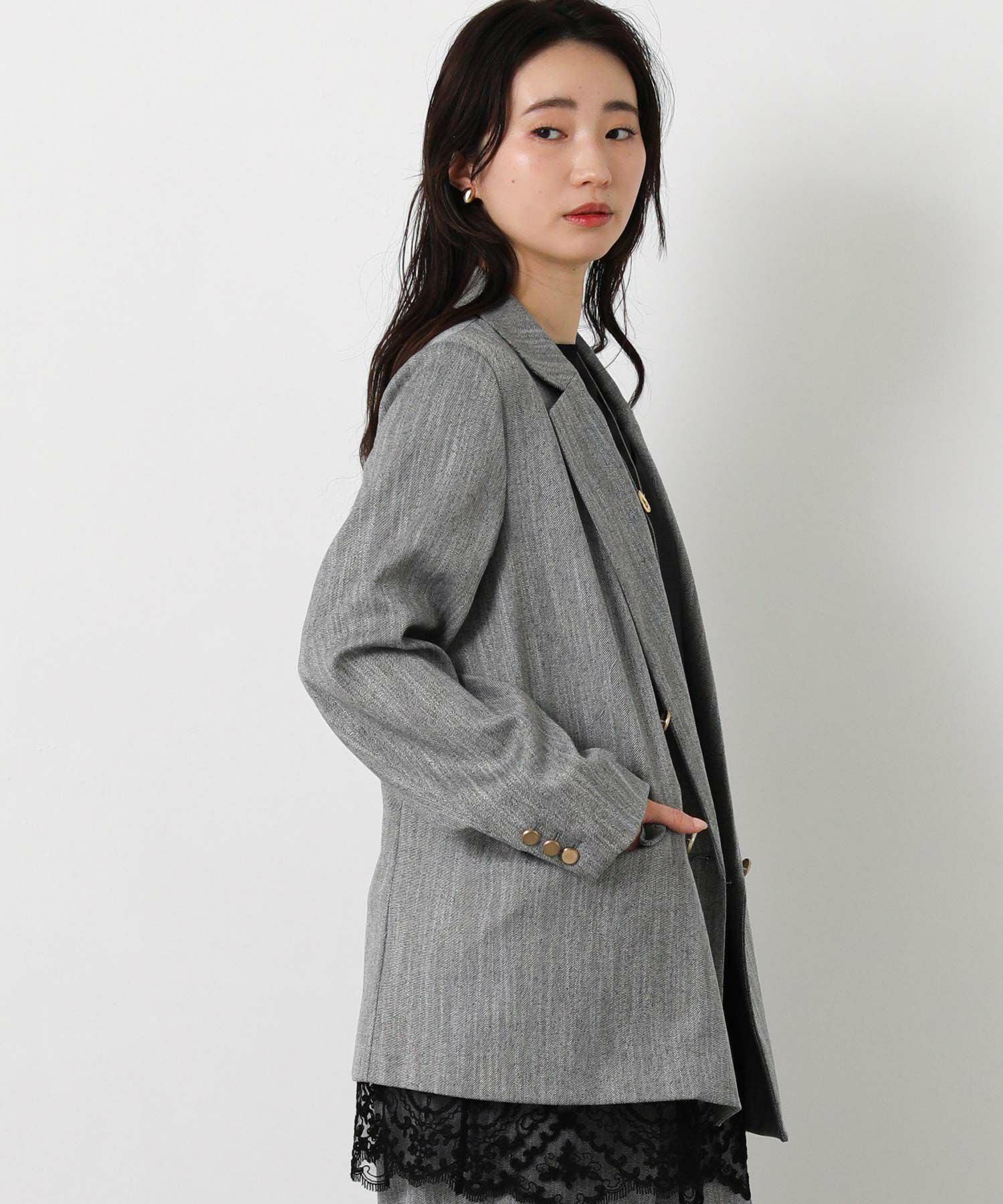 程よいゆとりを持たせたリラックス感のあるサイジング、襟の刻み位置や釦位置の重心を少し下げて、堅すぎない抜け感のある印象に仕上げました。