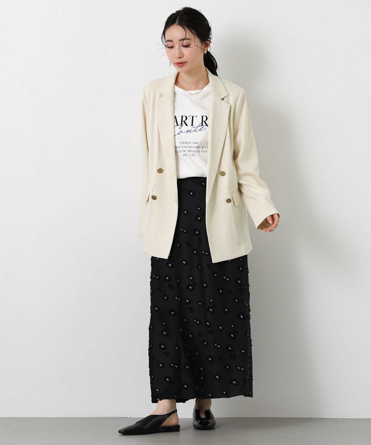 同素材のパンツLUスラブハイウエストワイド(OEO1034426004)とセットアップでの着こなしもオススメ。