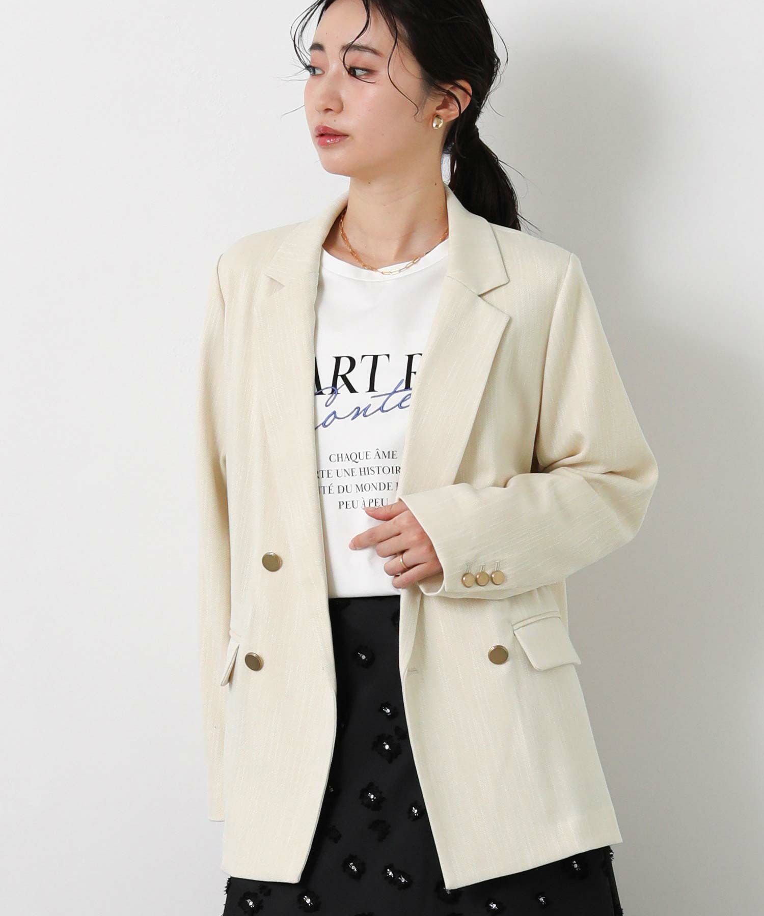 軽やかなスラブツイード素材を使用したテーラードジャケット。
