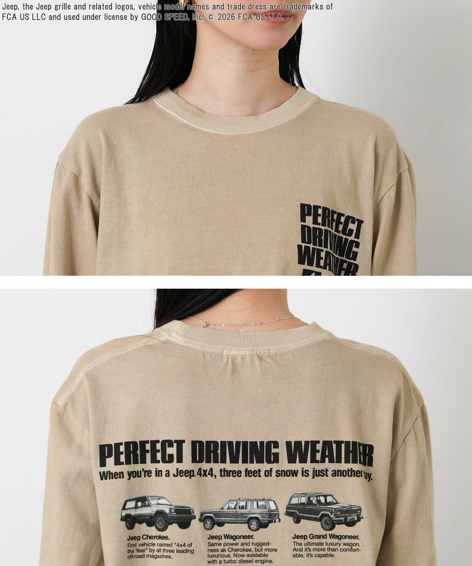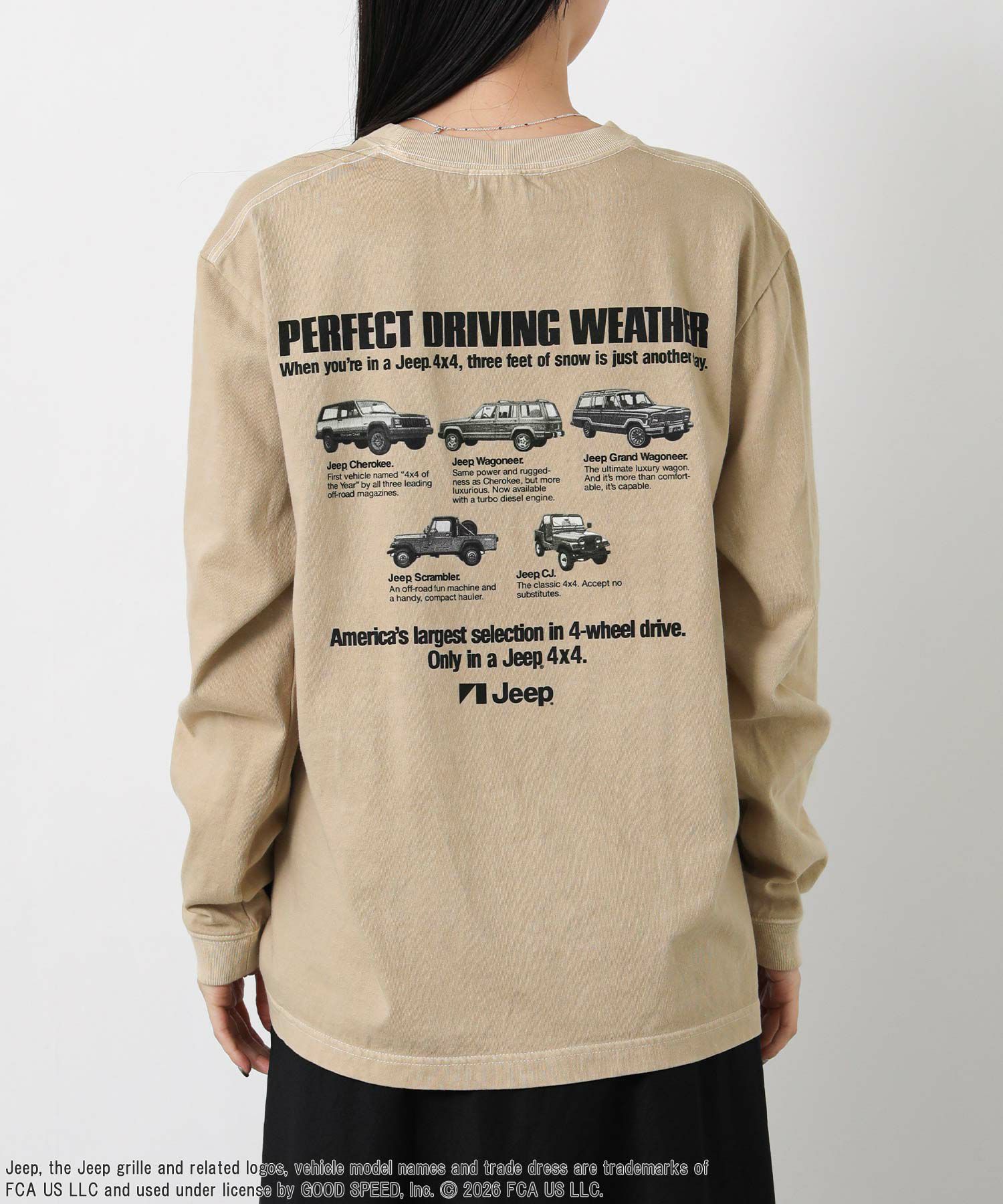 【GOODROCKSPEED/グッドロックスピード】から、アメリカの自動車ブランド「ジープ」とのコラボラインのロンTをセレクト。