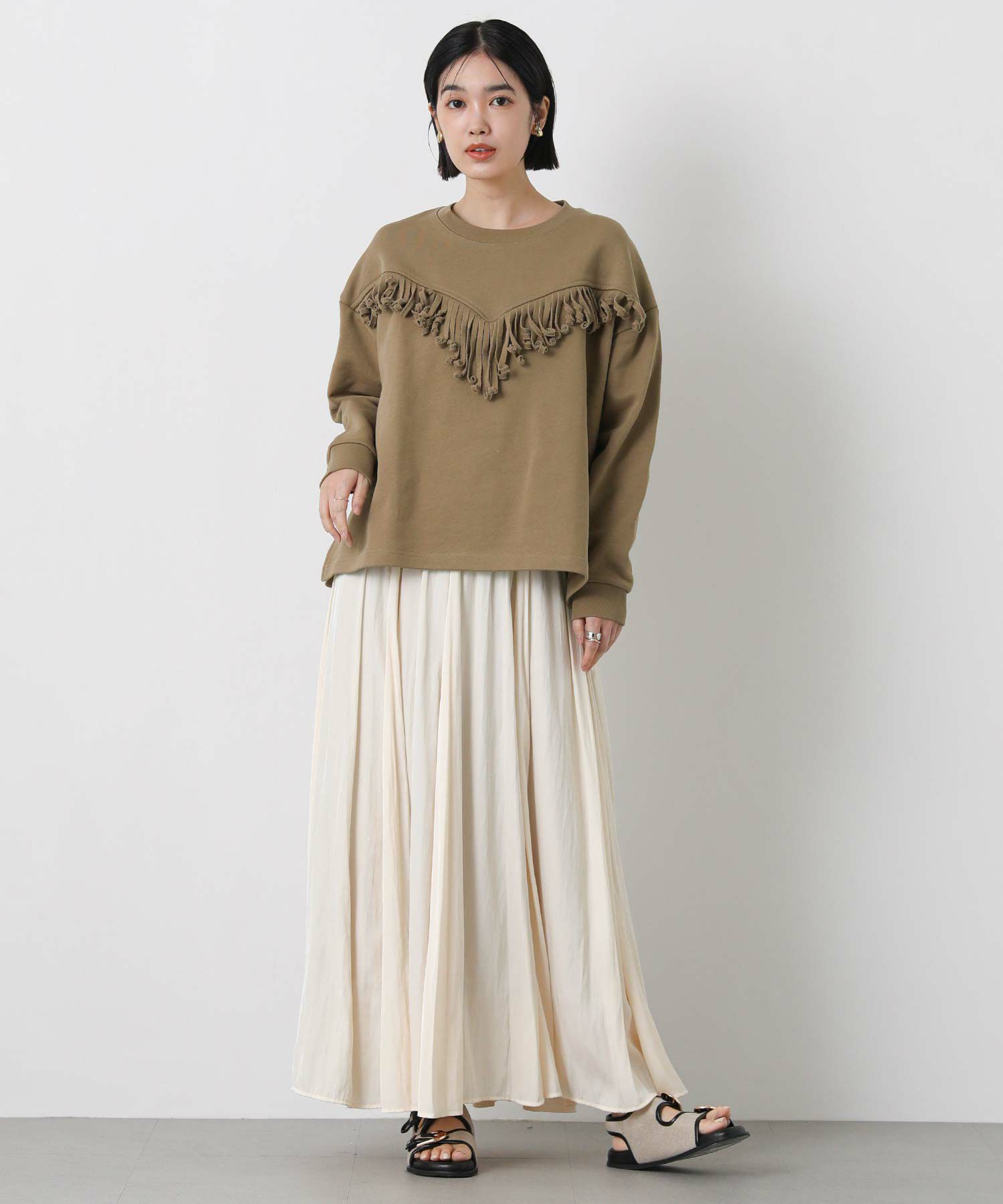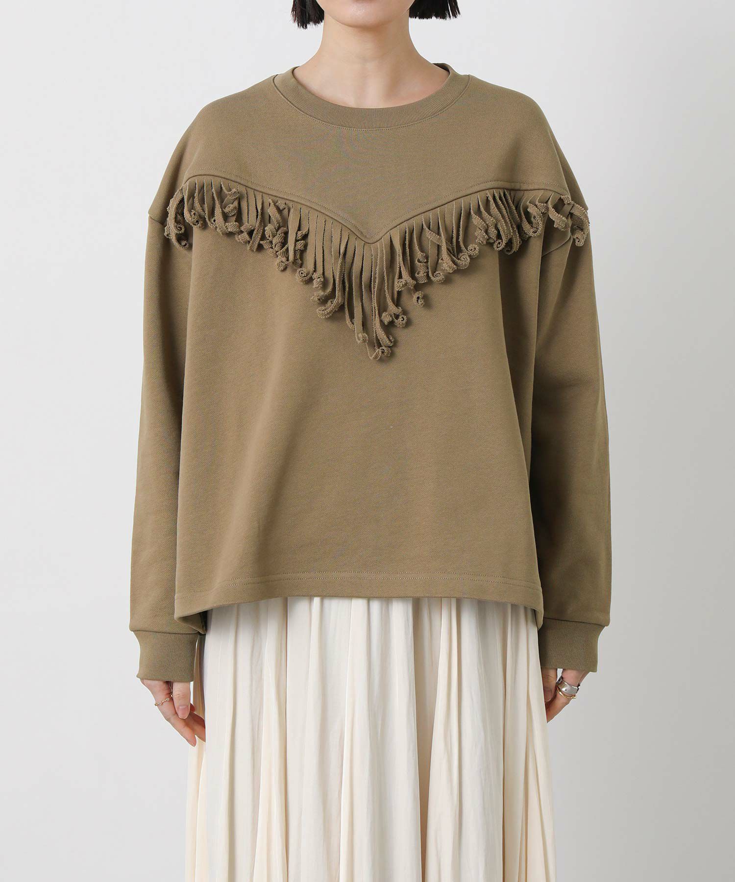【+81BRANCA(ハチイチブランカ)】から、フリンジを効かせた存在感のあるスウェットをセレクト。