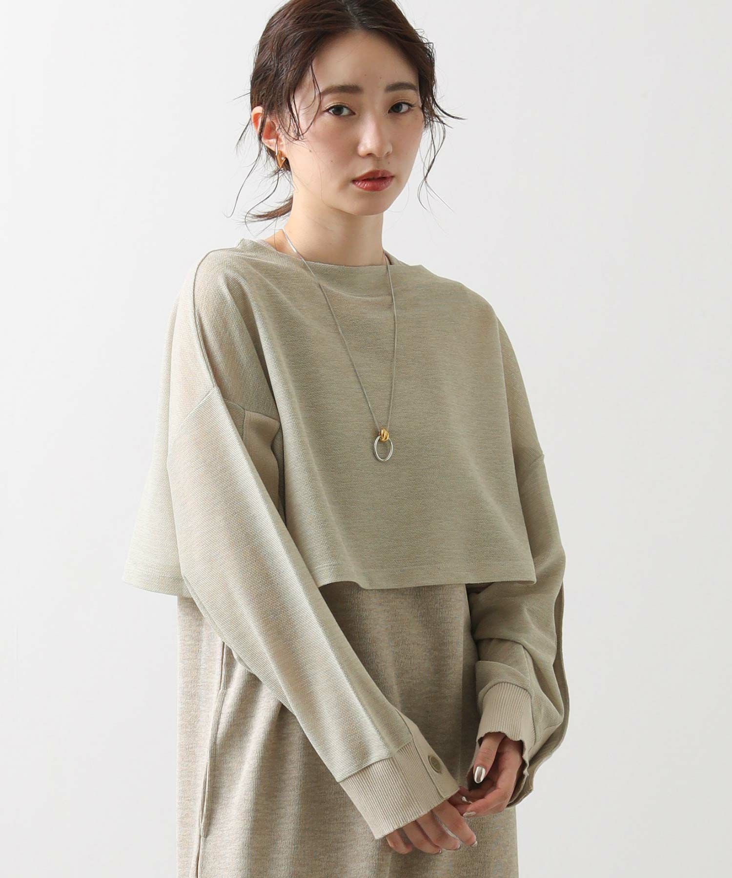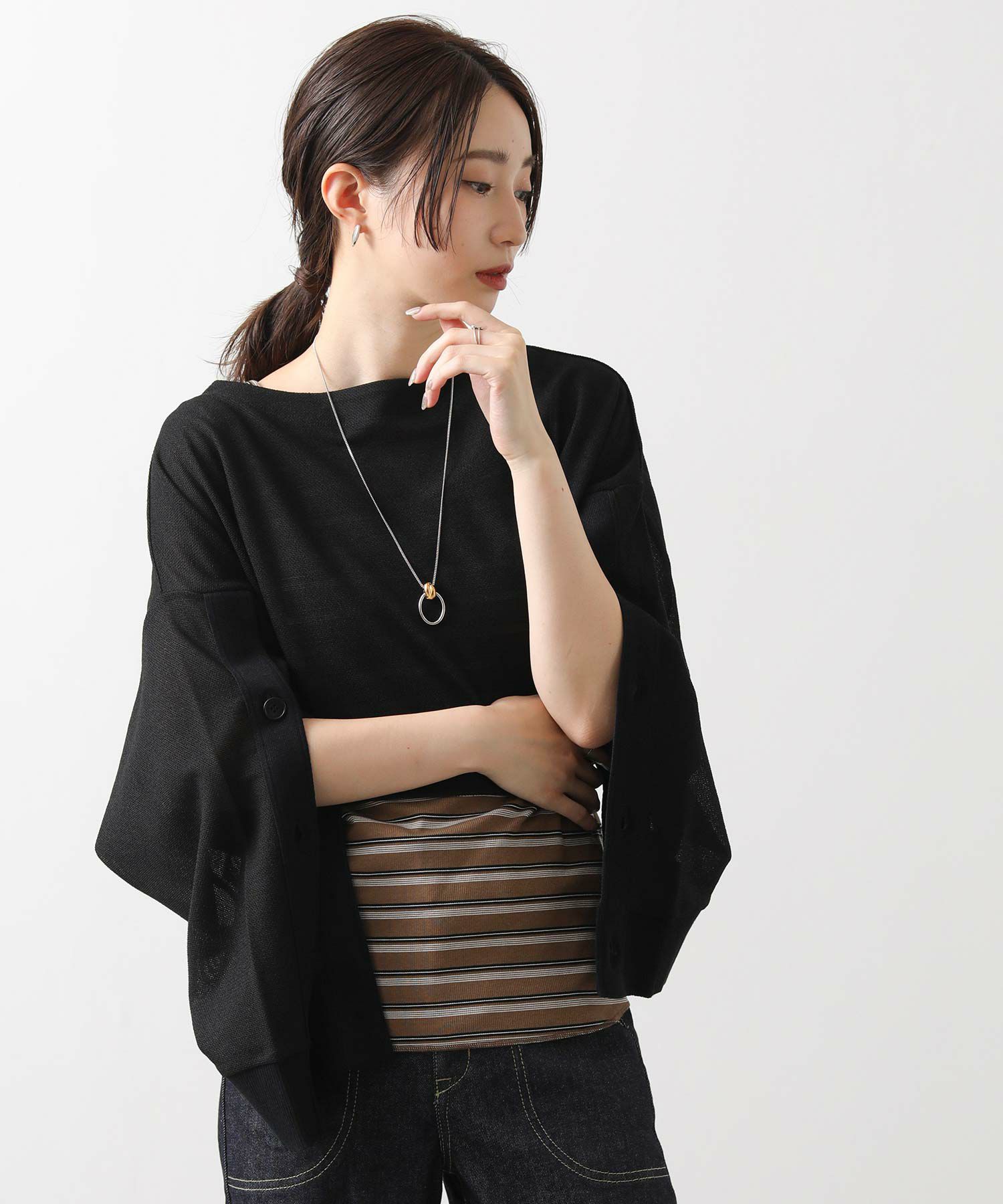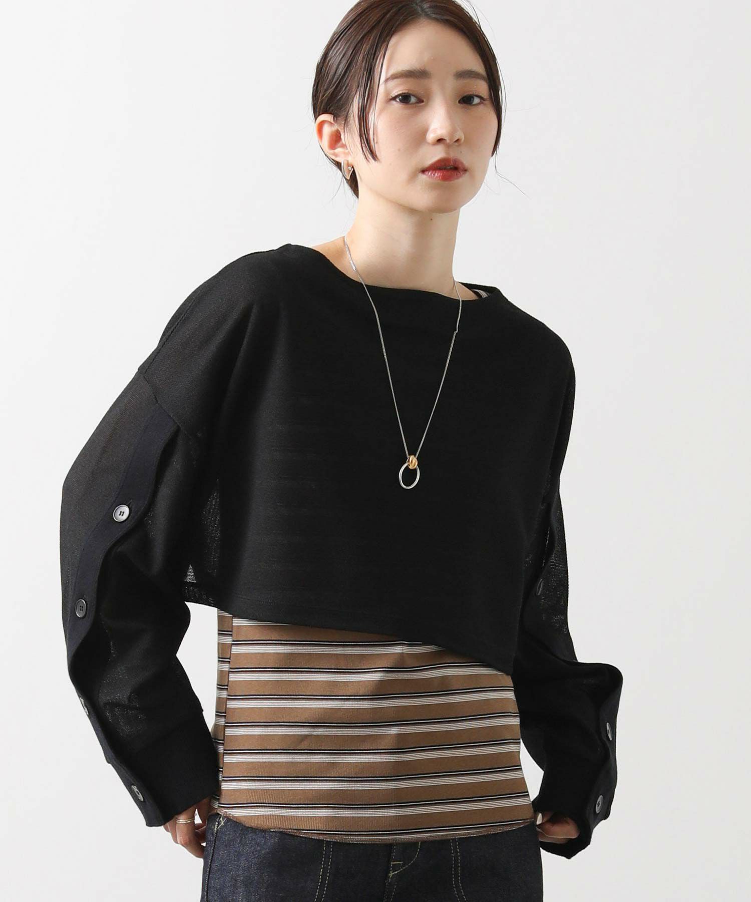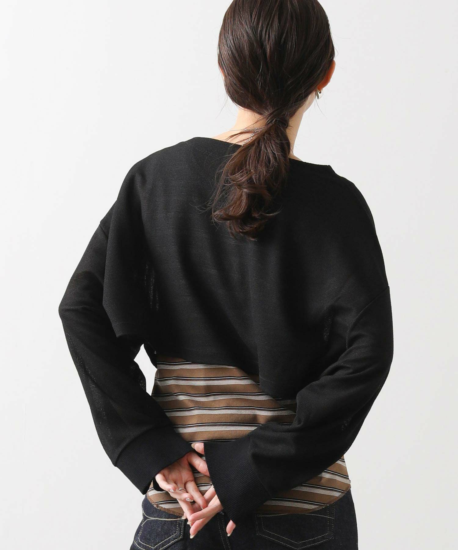 【Munich(ミューニック】から、透け感と清涼感のある素材で作ったレイヤードスタイルが楽しめるショート丈トップスをセレクト。