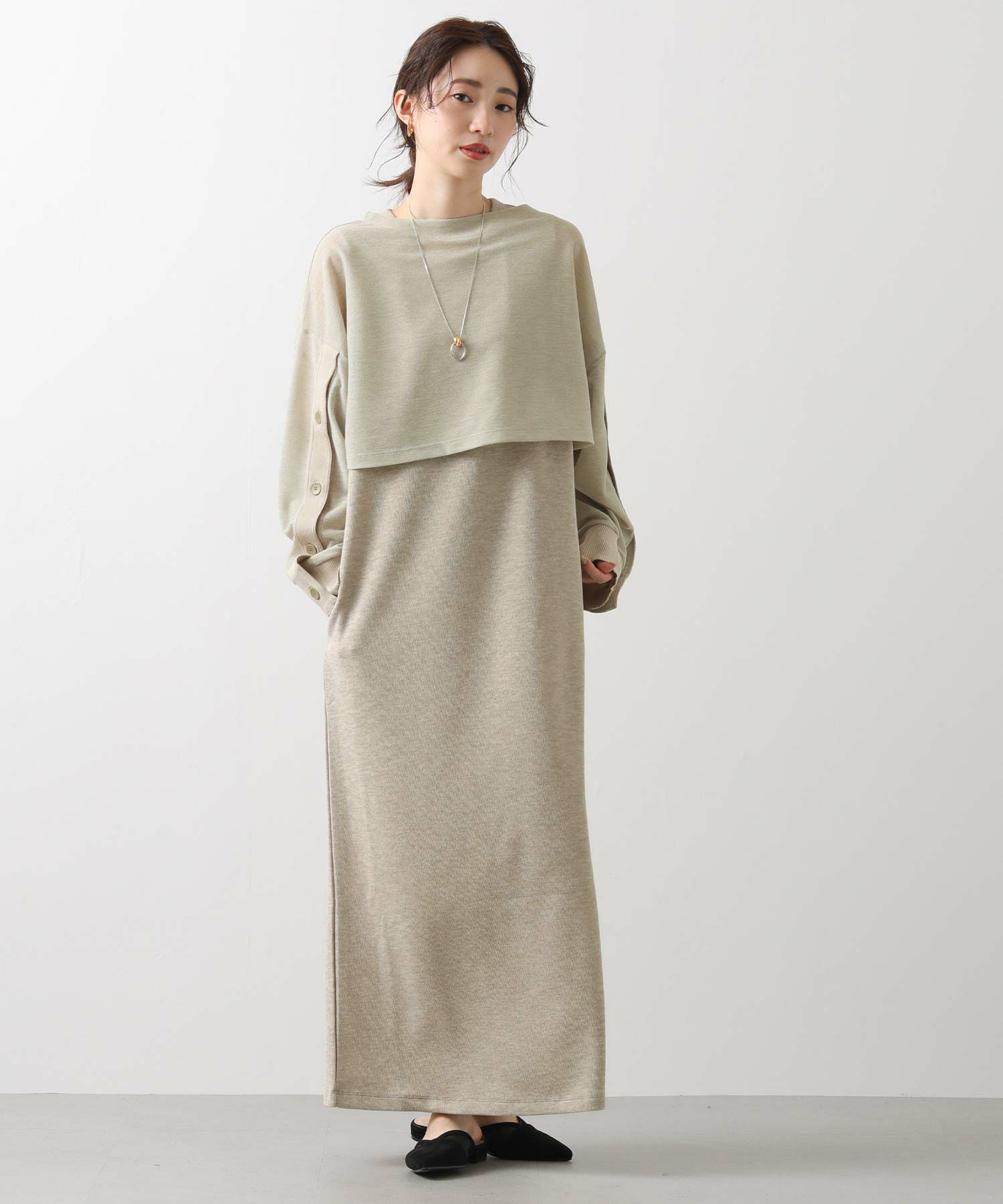 インナーにはタイトなカットソーや衿付きのシャツ、ワンピースと幅広く合わせやすく、レイヤードコーデが楽しめるアイテム。