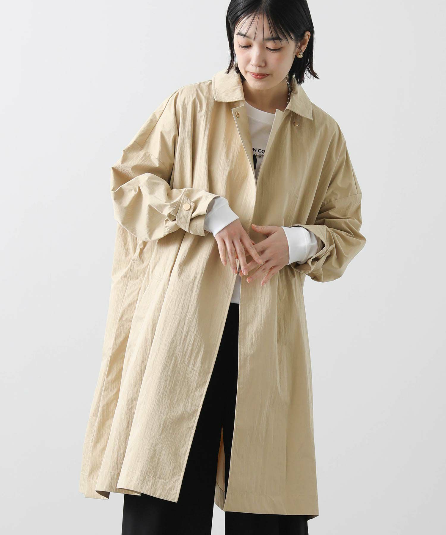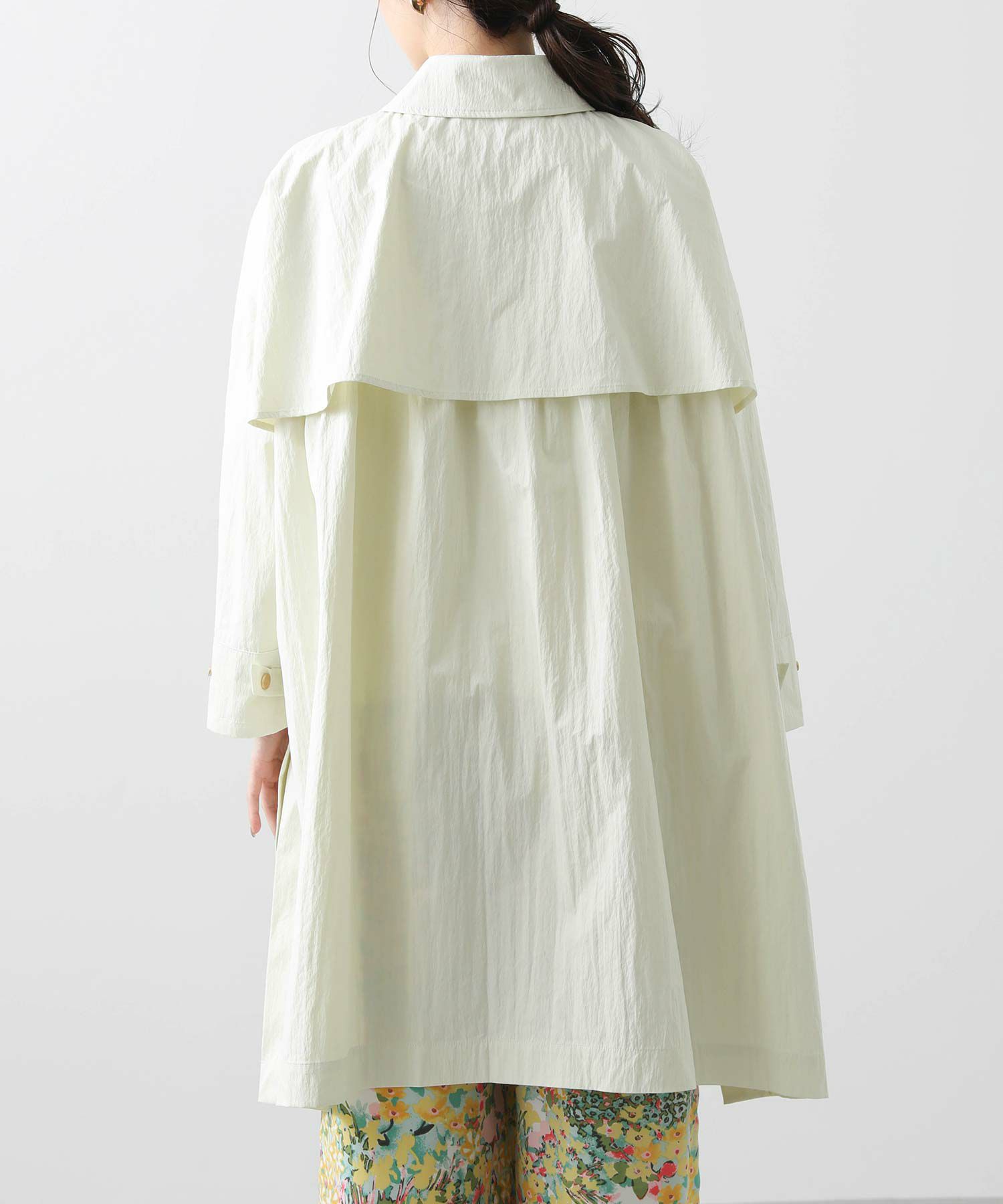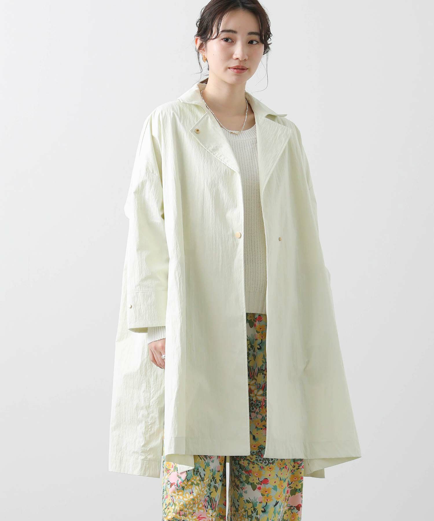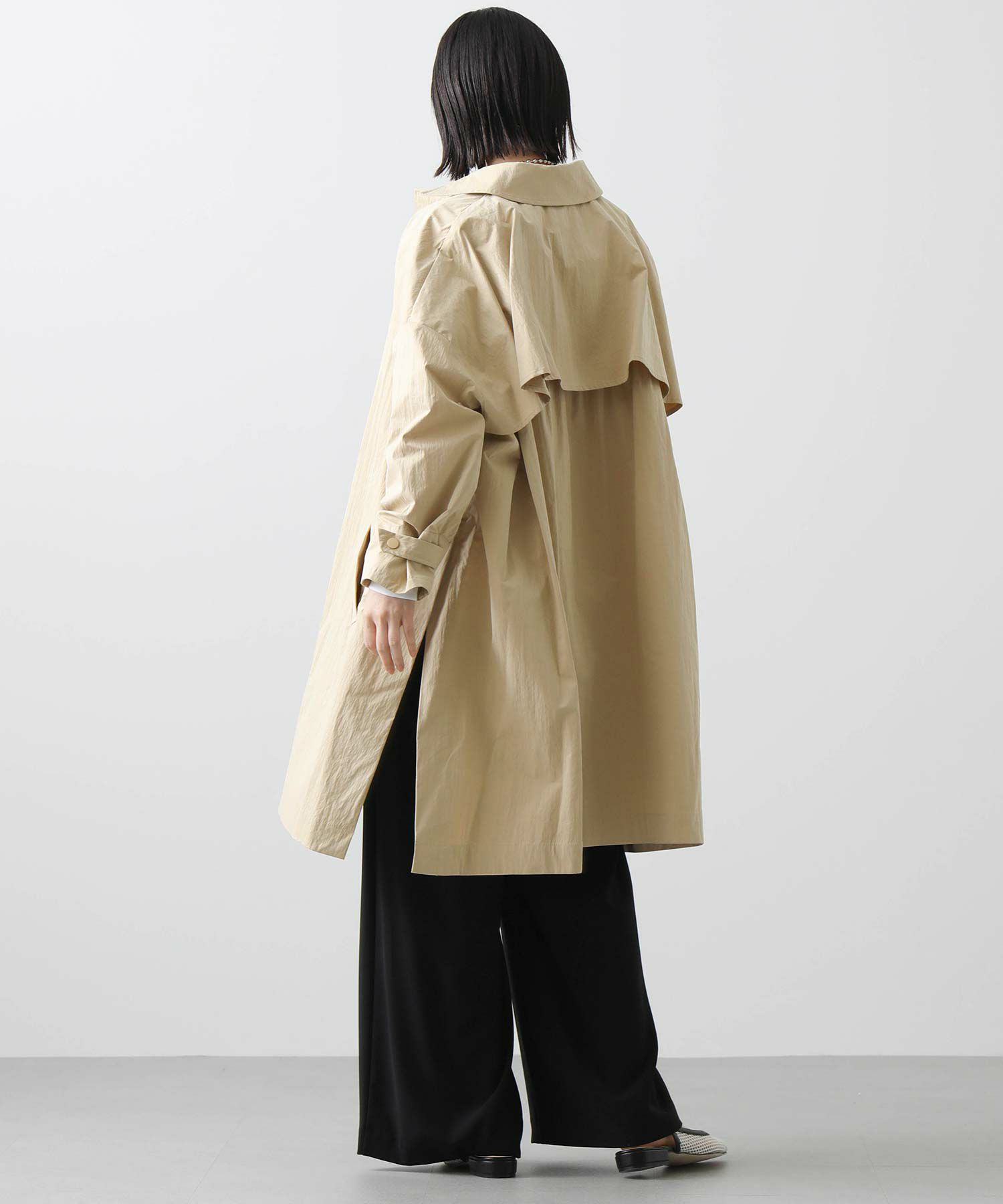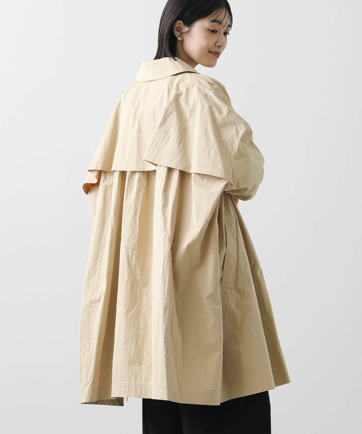 トレンチコートから着想を得たこなれ感のあるコートで、閉じても開いてもサマになるスタンダードなステンカラーデザイン。ピーチ感のある表面と程よい厚み、ハリのある素材でシルエットを美しく保ちます。