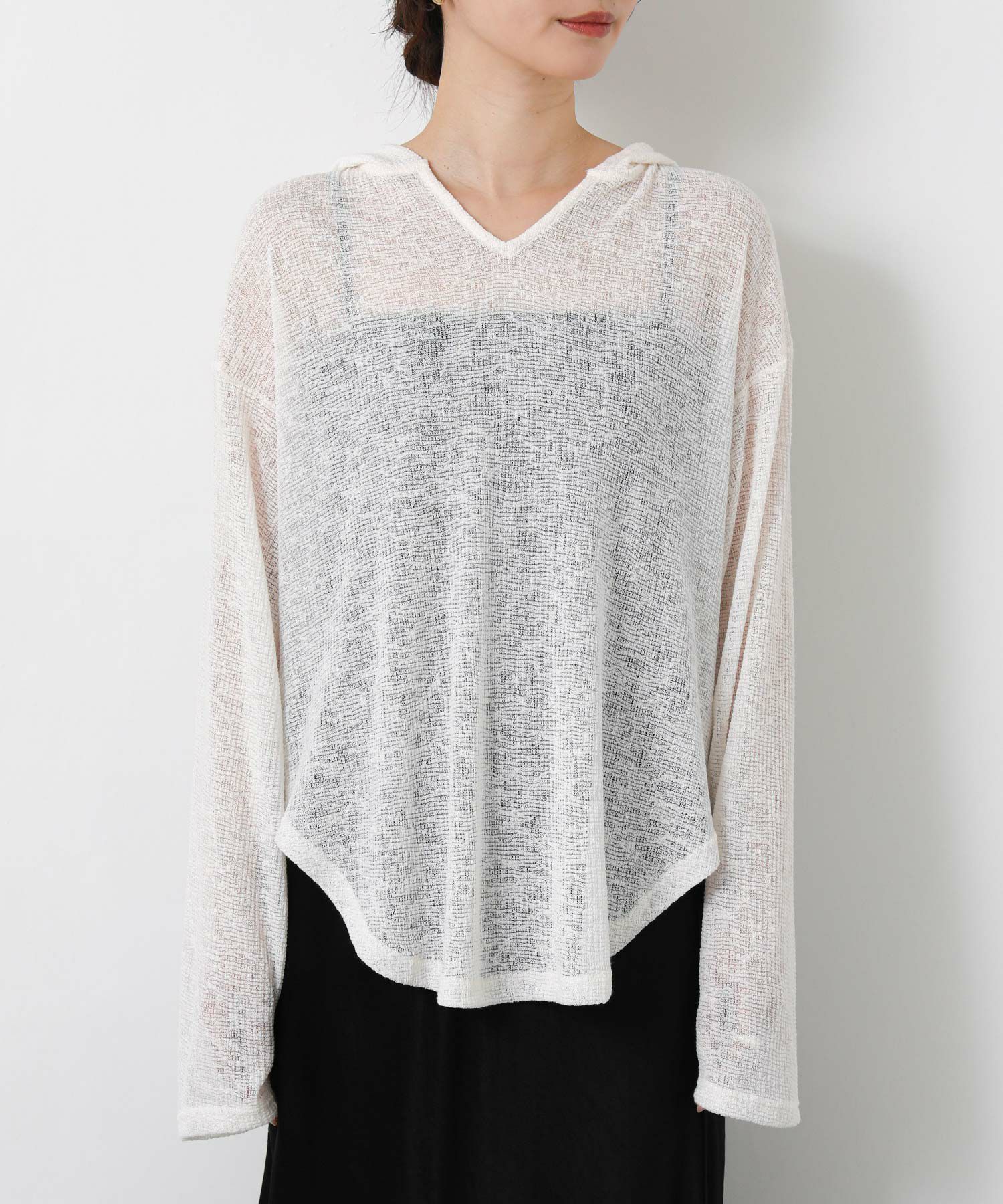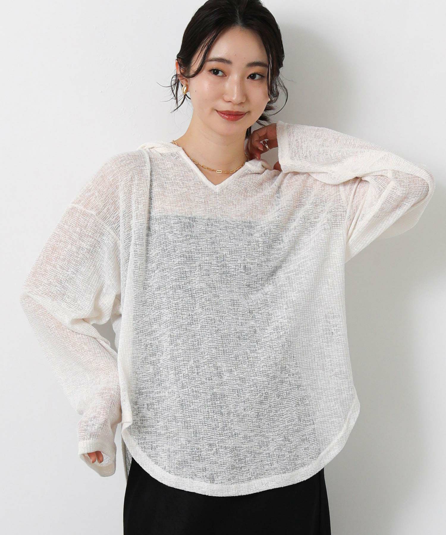 【CHIGNON/シニヨン】から、レイヤードスタイルが楽しめるシアーフーディートップスをセレクト。