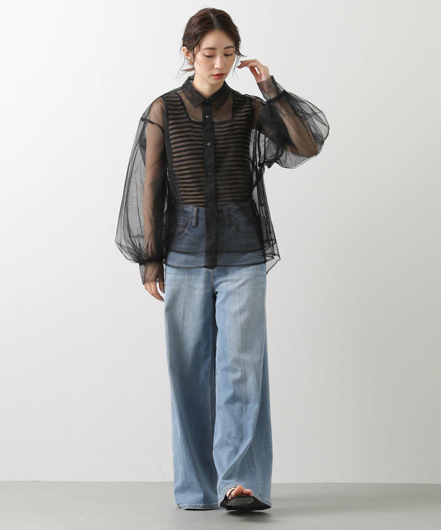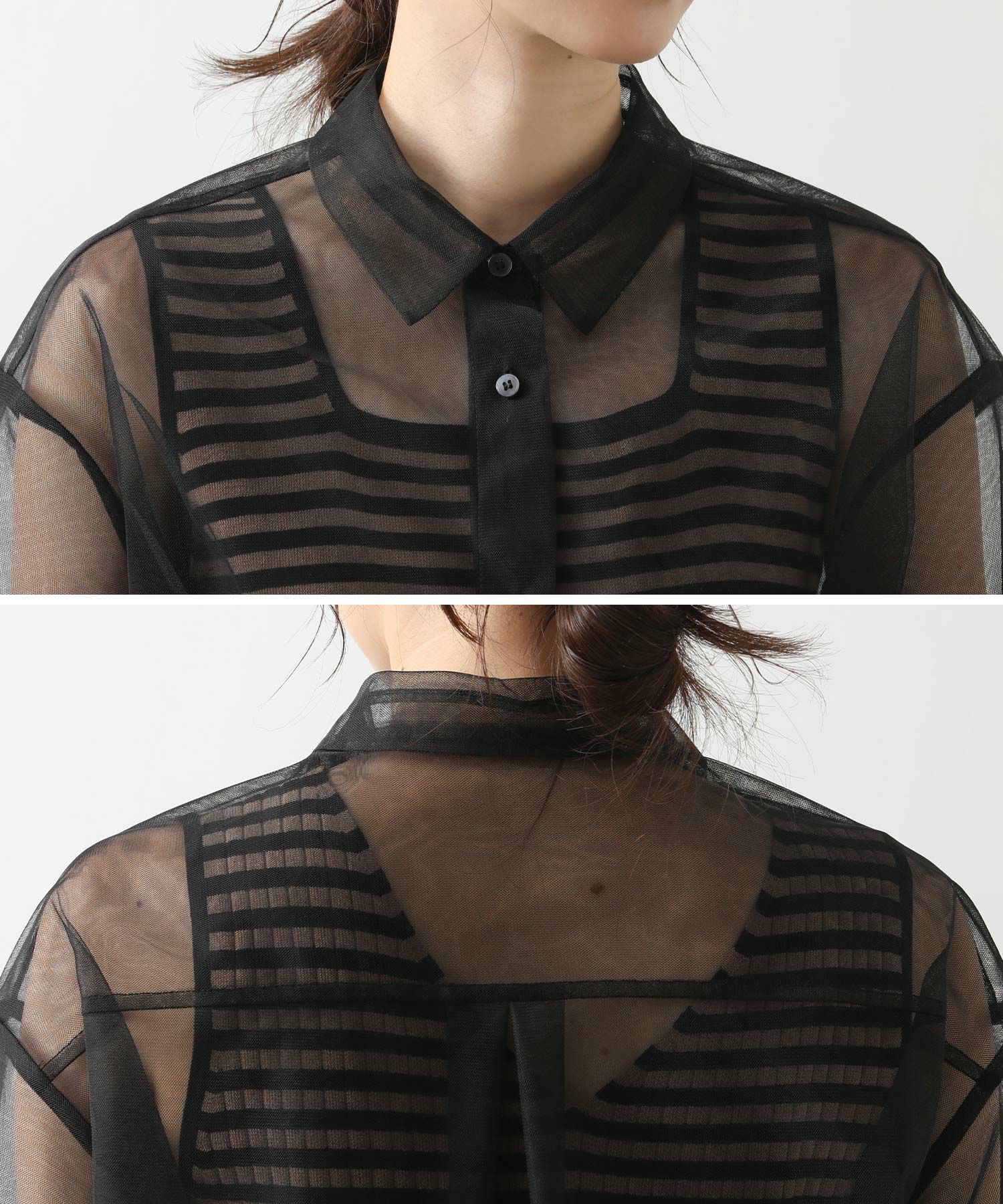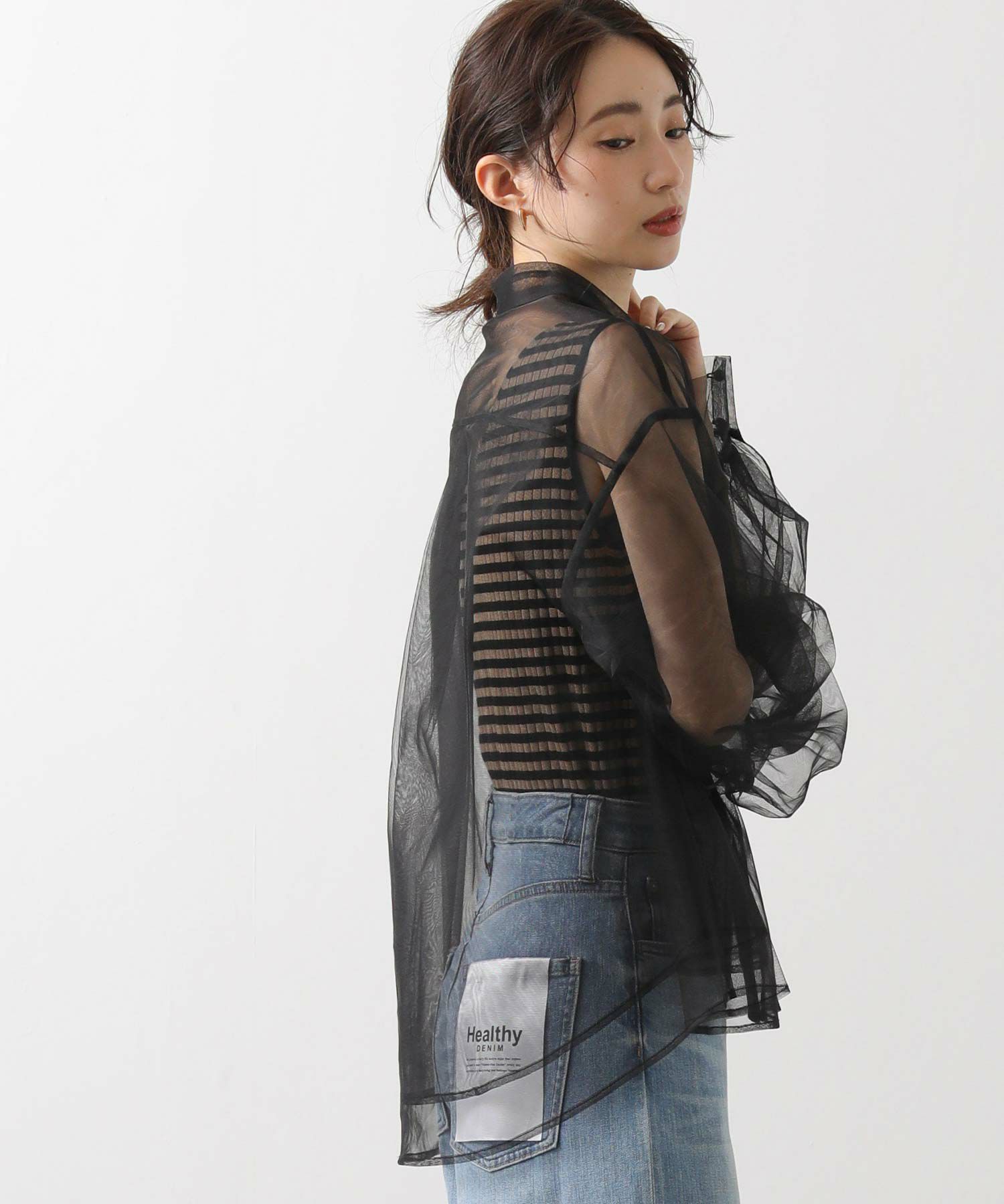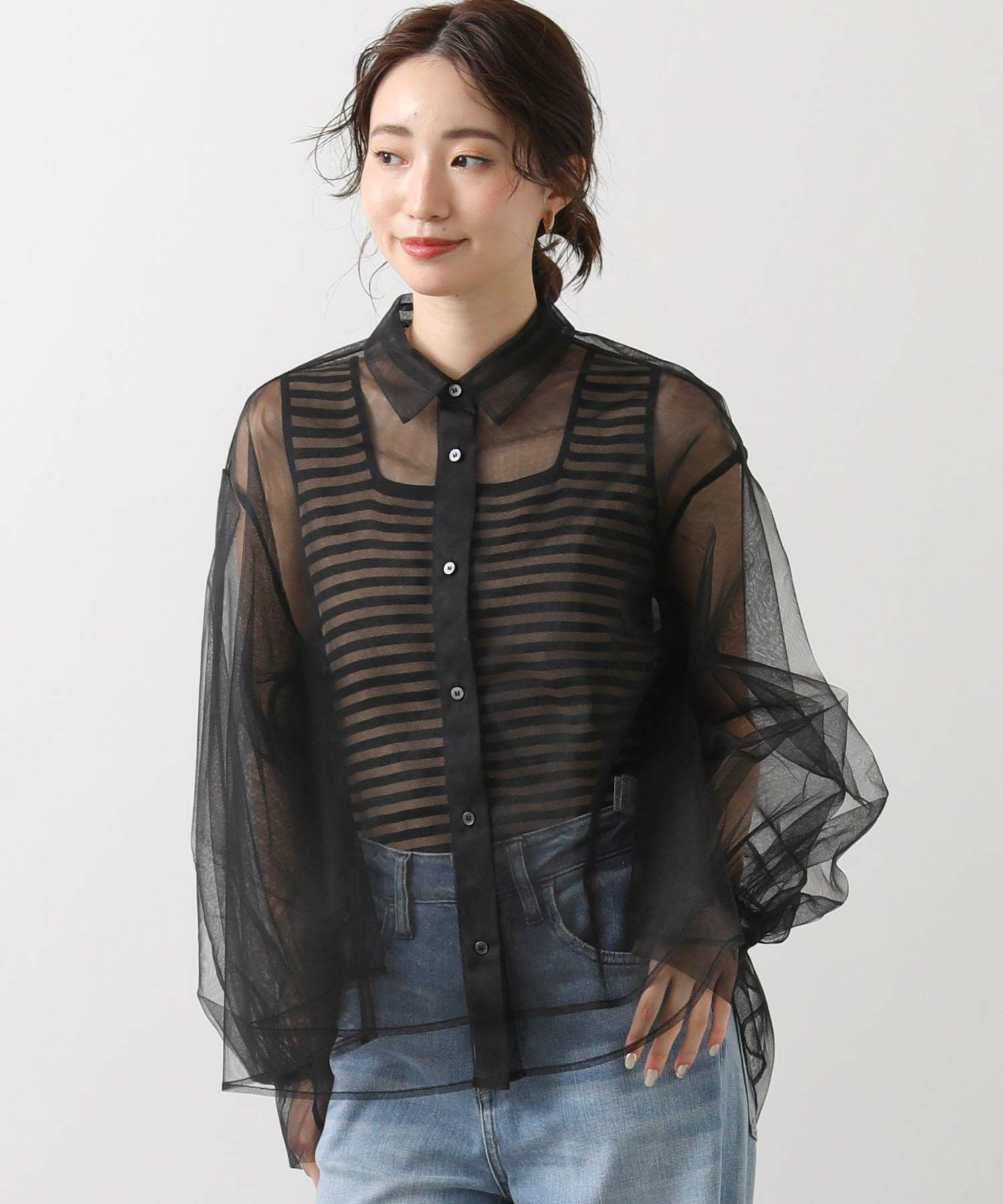 チュールをふんだんに使用したシアーブラウス。