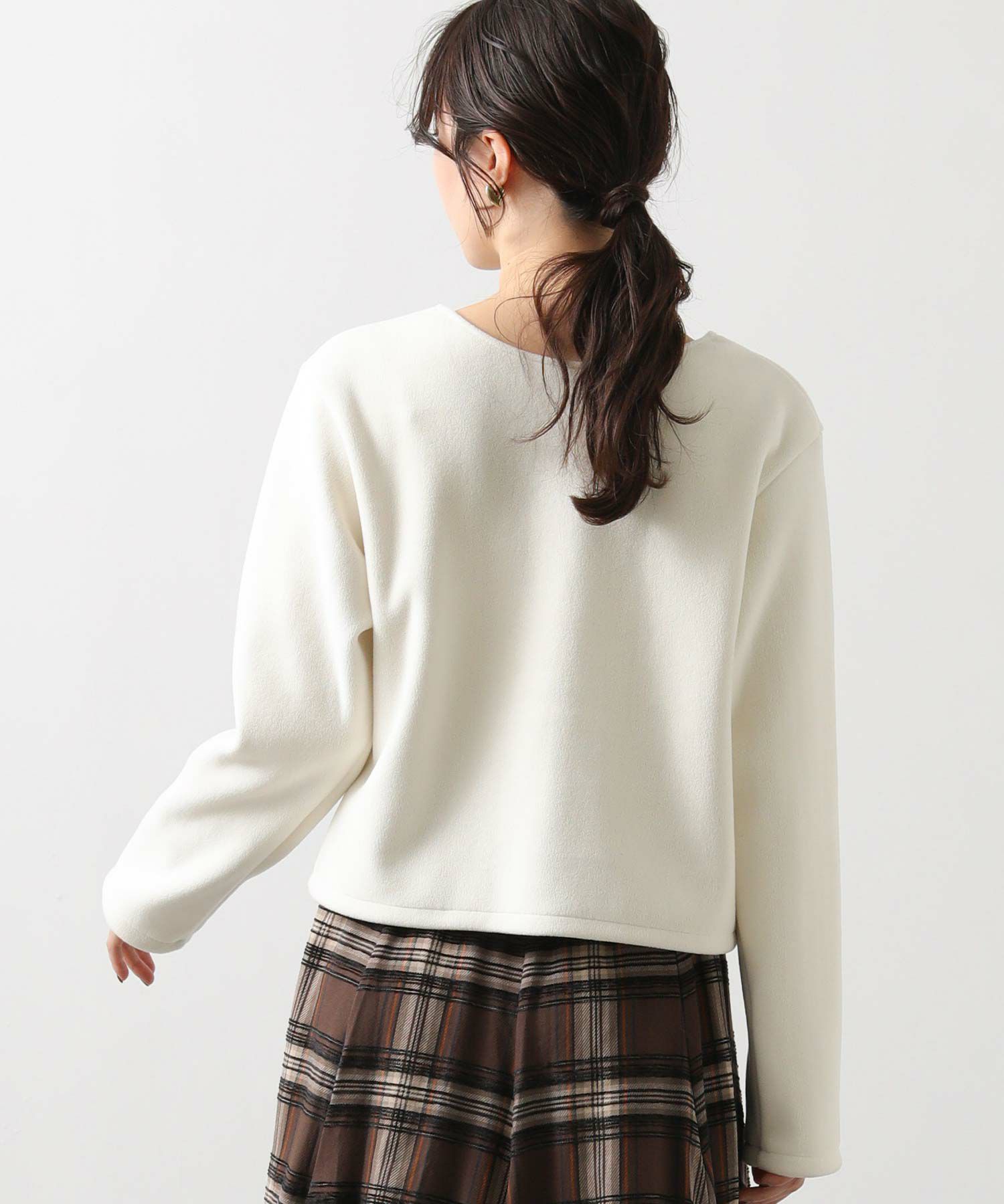 前後どちらでも着られる2WAY仕様の微起毛カーディガン。