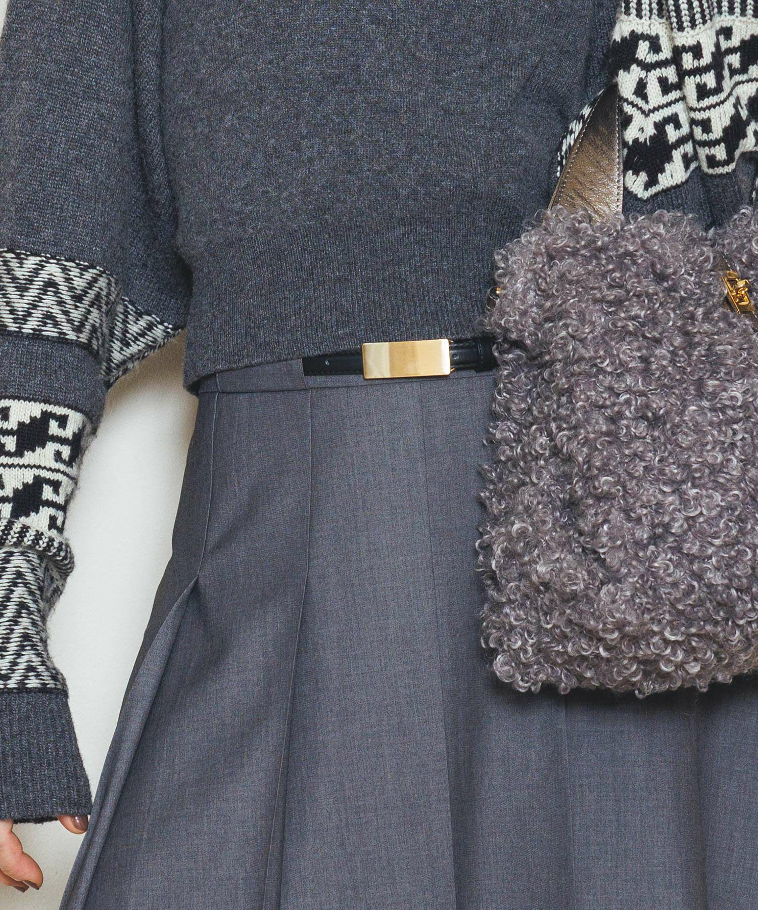 スカートやパンツはもちろん、ワンピースやジレ、ニットカーディガンの上から付けてウエストマークするのもオススメ。