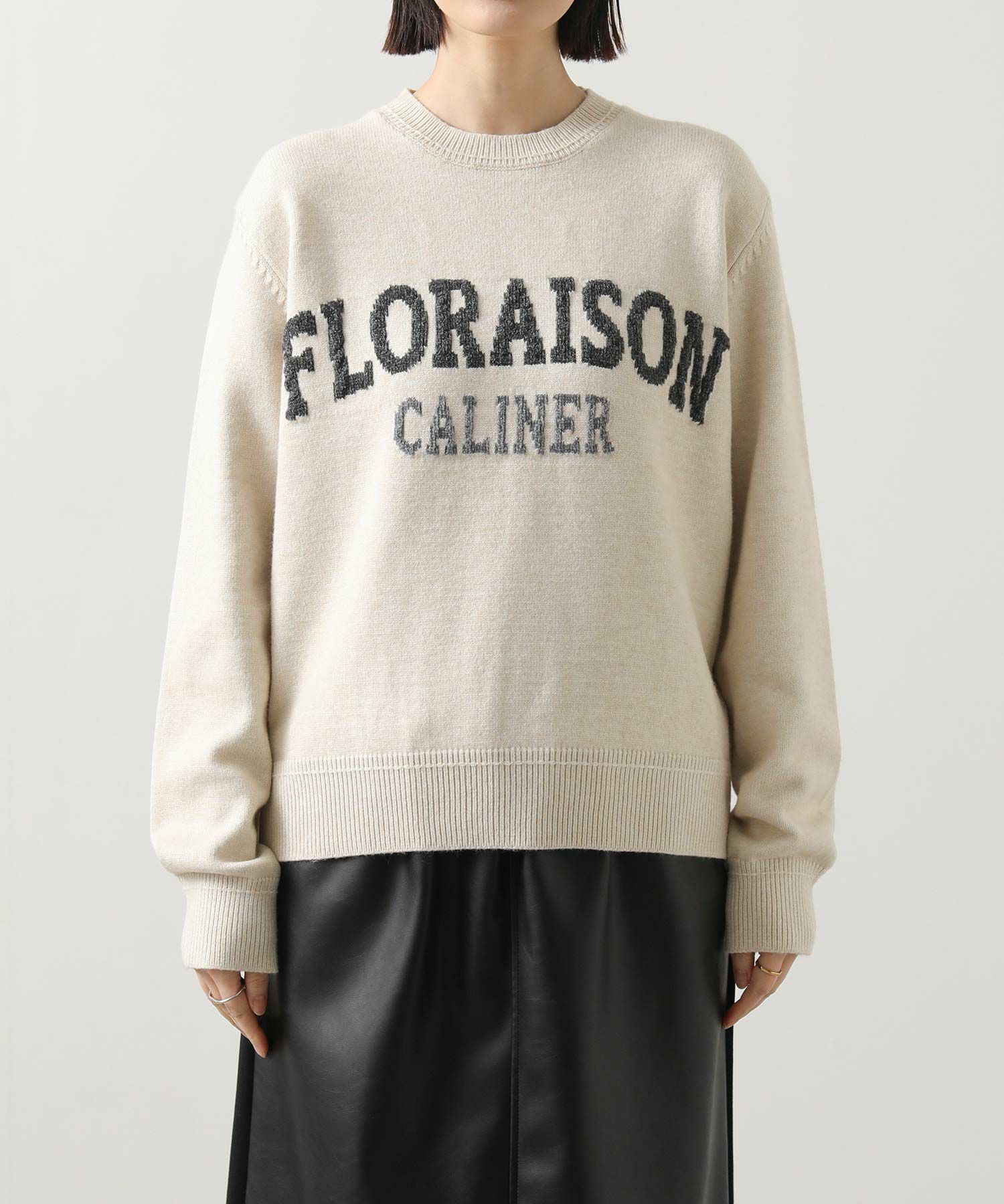 ロゴにさりげく光るラメ糸と立体感のあるモール糸を組み合わせたデザインニット。