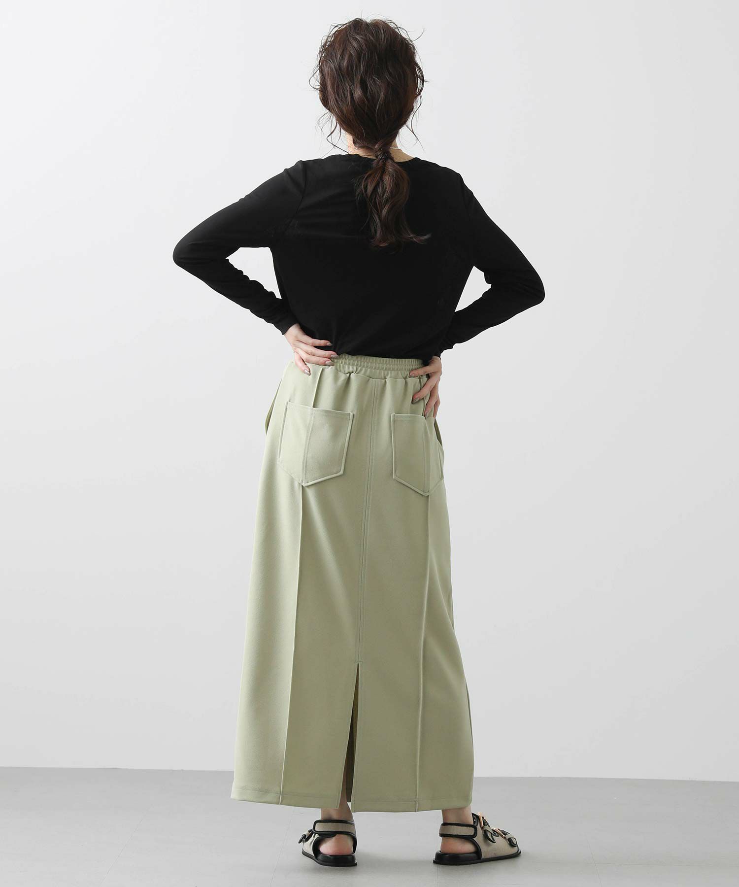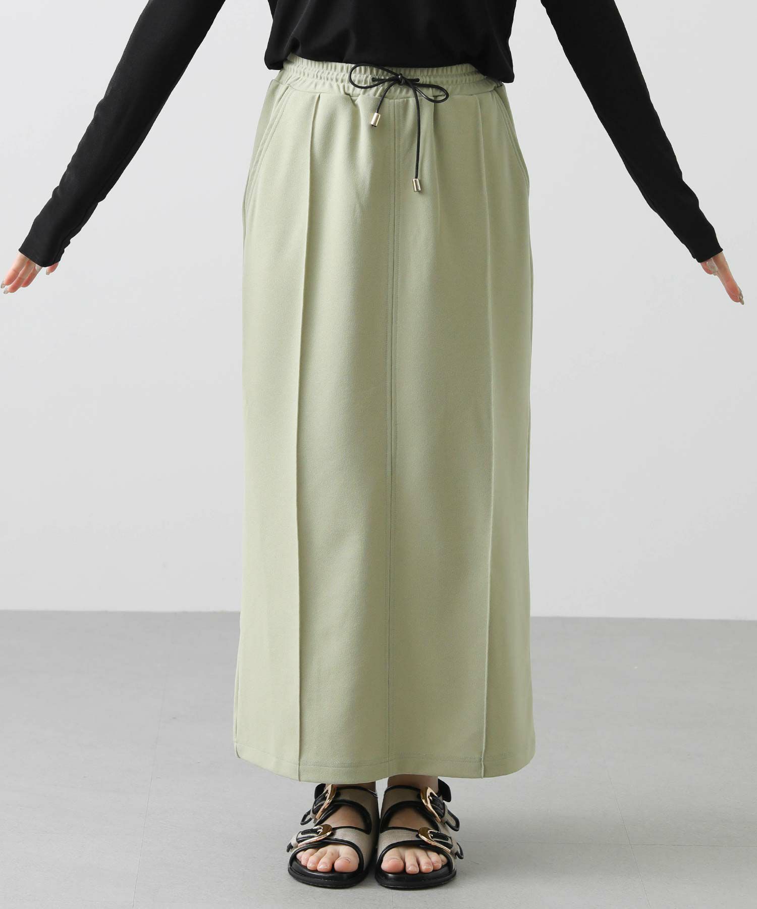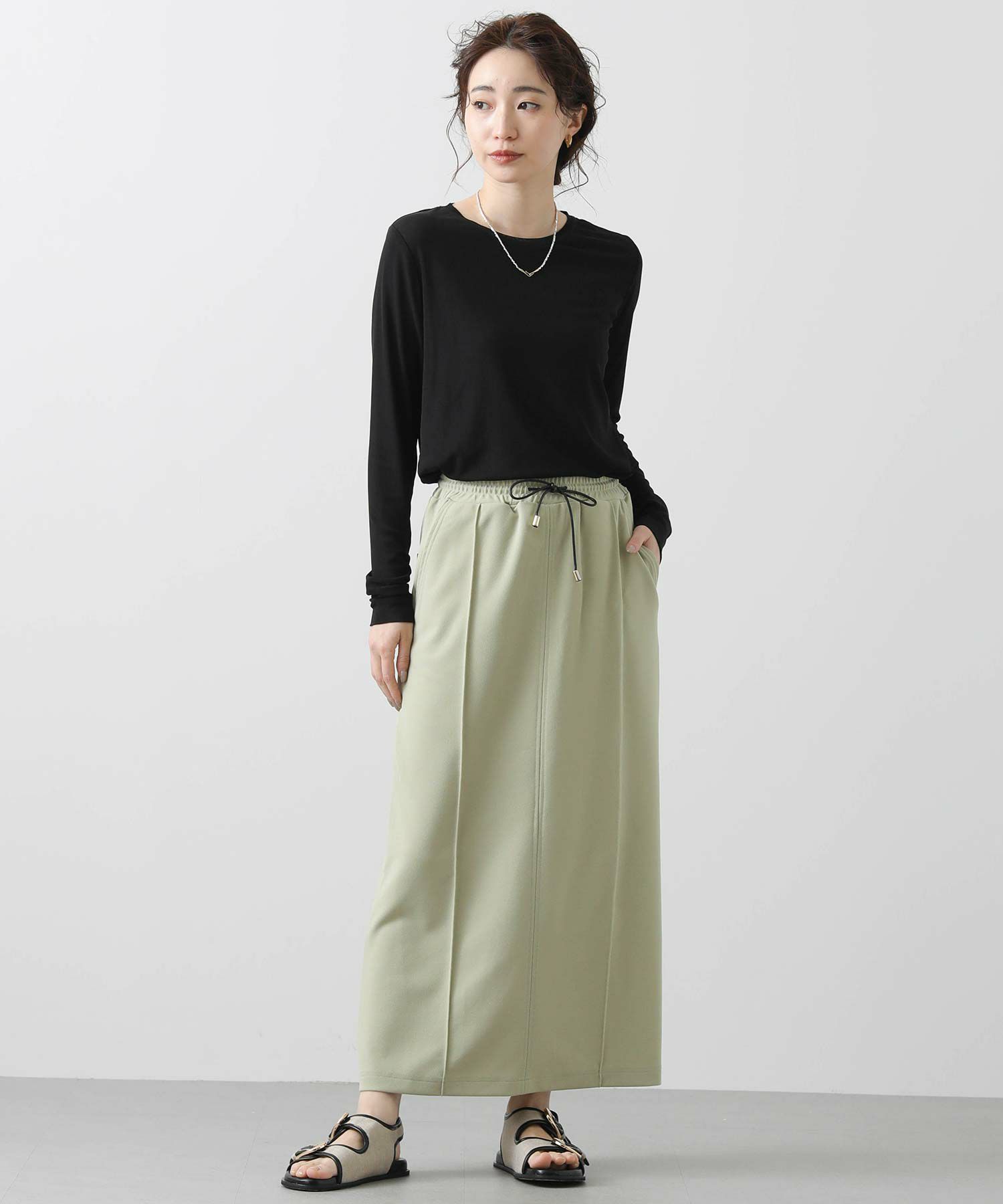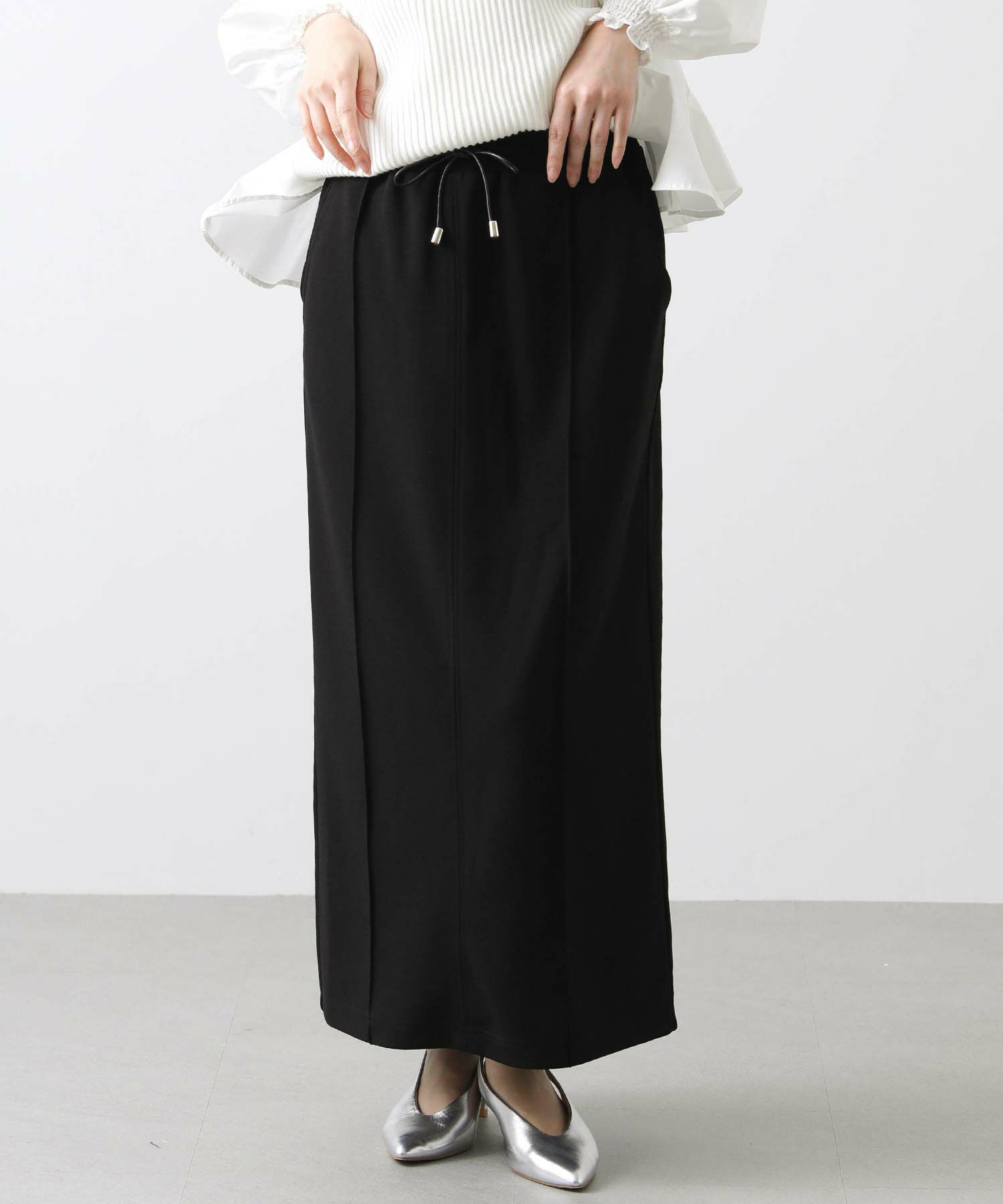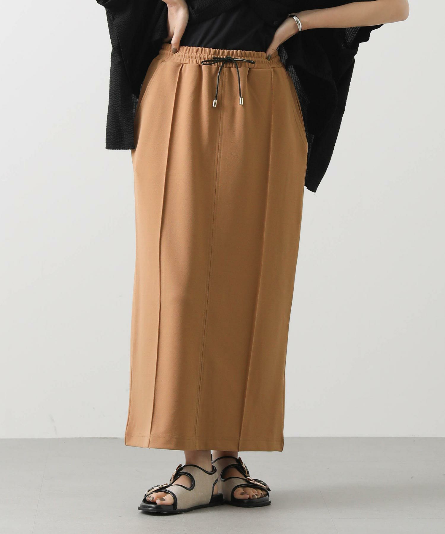 肌当たりの良いジョーゼット素材のタイトスカート。