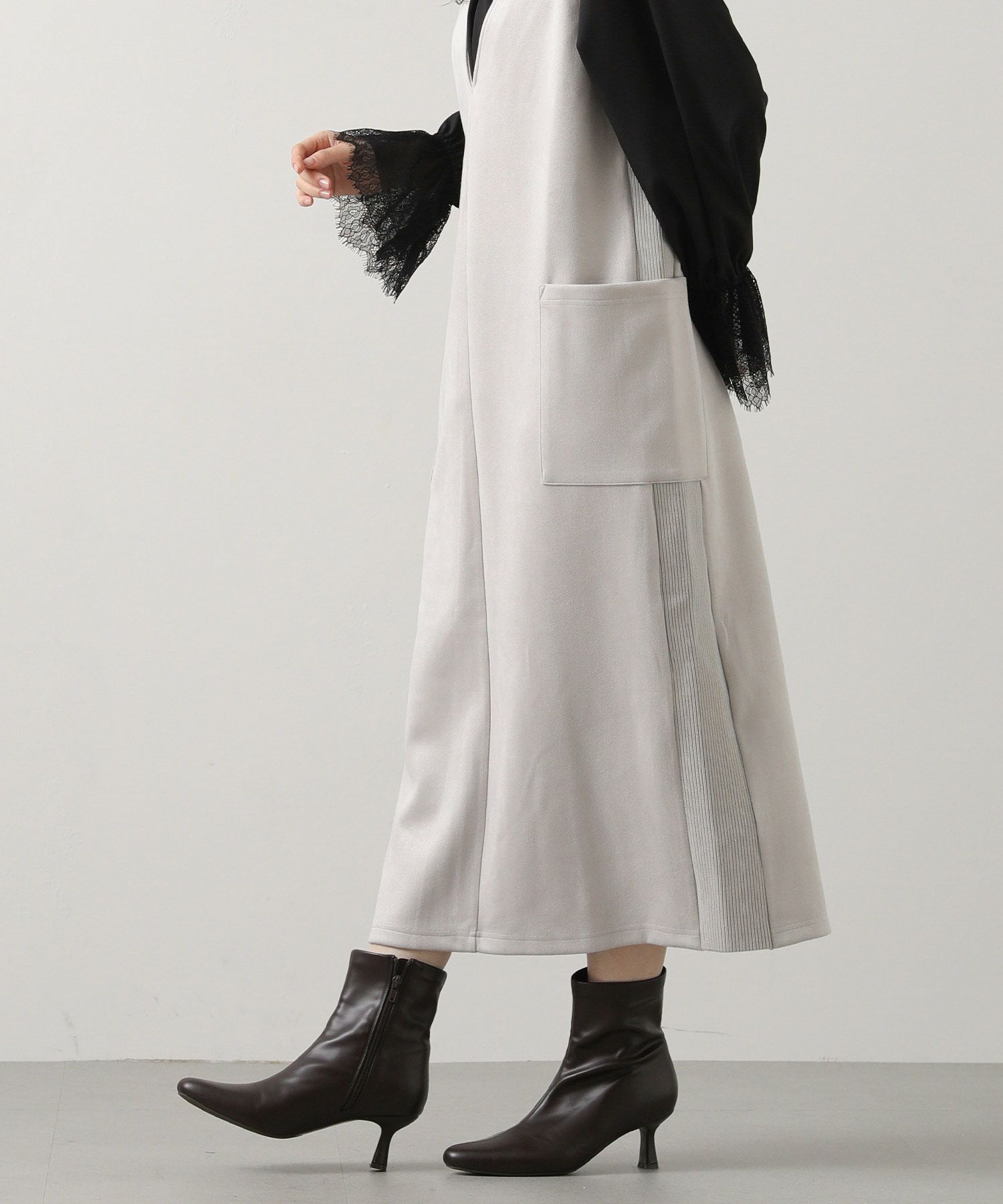 シーズンムードを高めてくれる、スエードライク素材のワンピース。