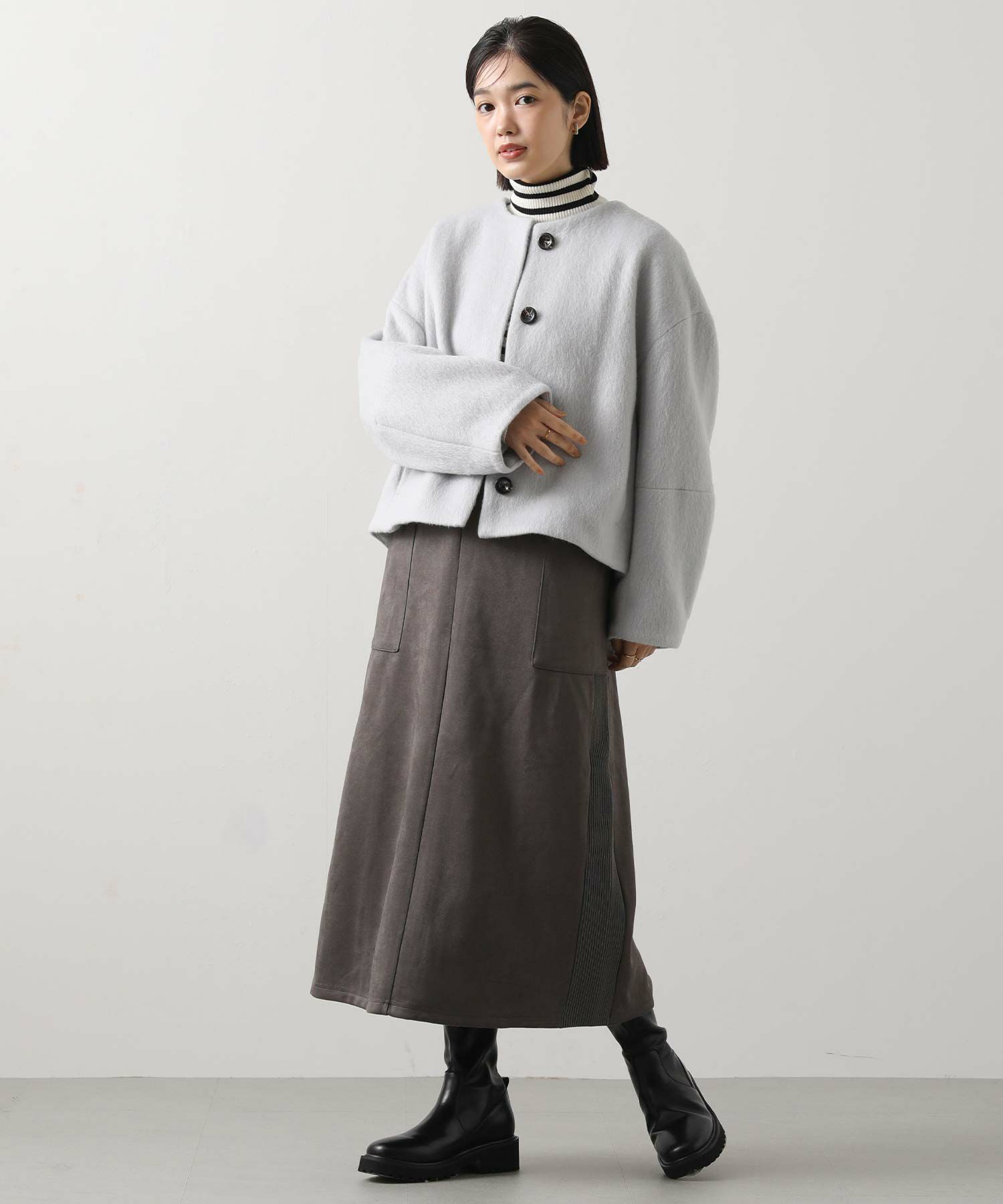 ※着用画像は撮影状況、光の当たり具合で色みが違って見える場合がございます。実際の色みについては、画像一覧の最後に掲載している詳細画像をご参照ください。
