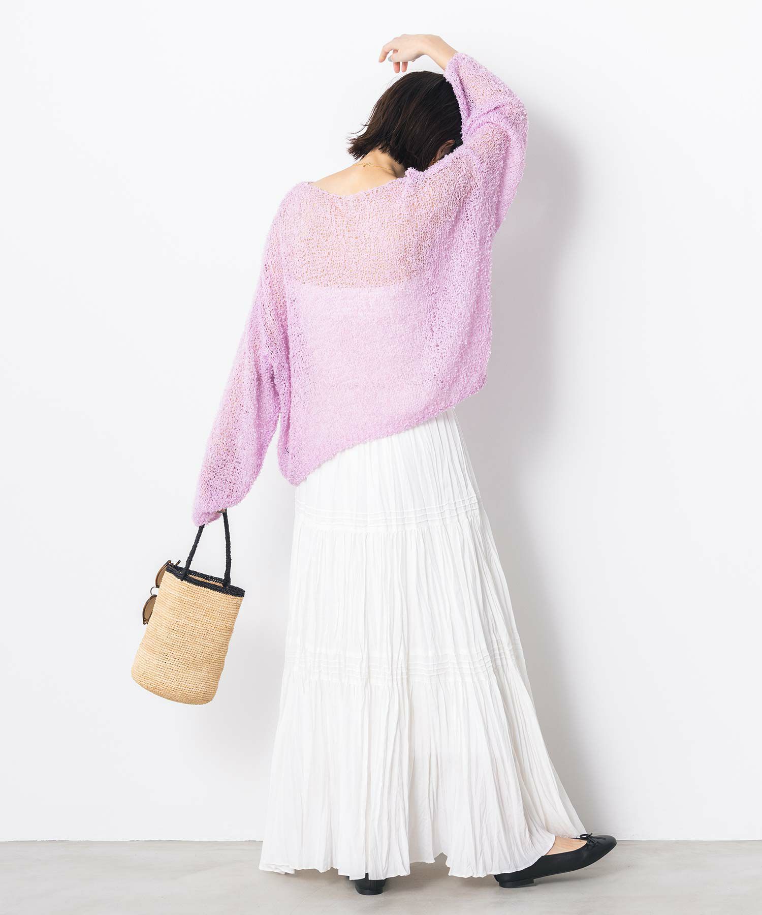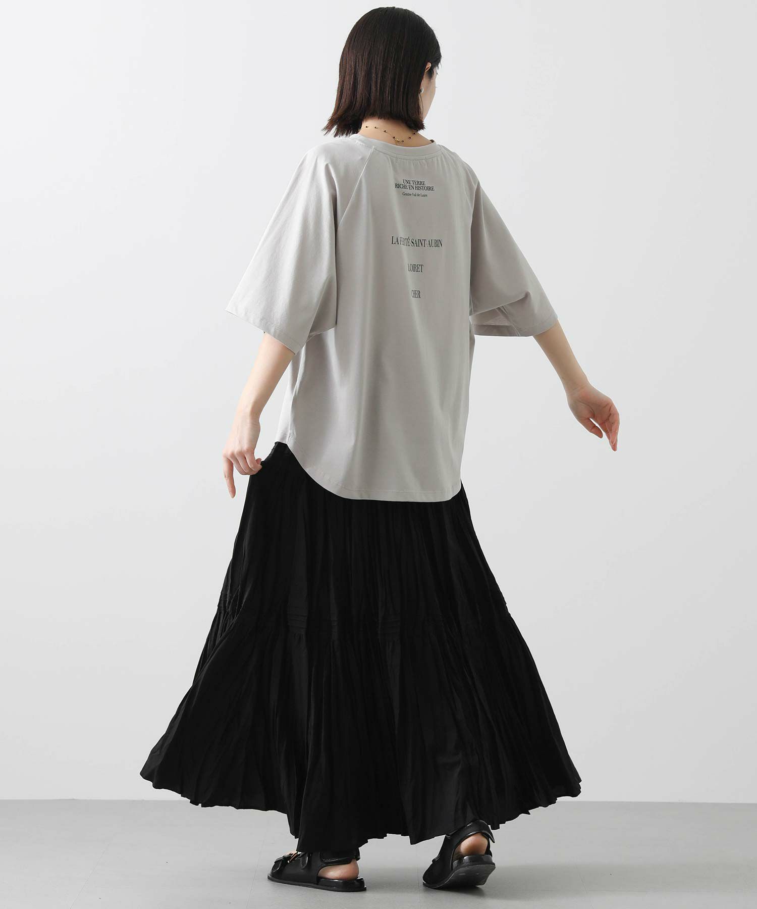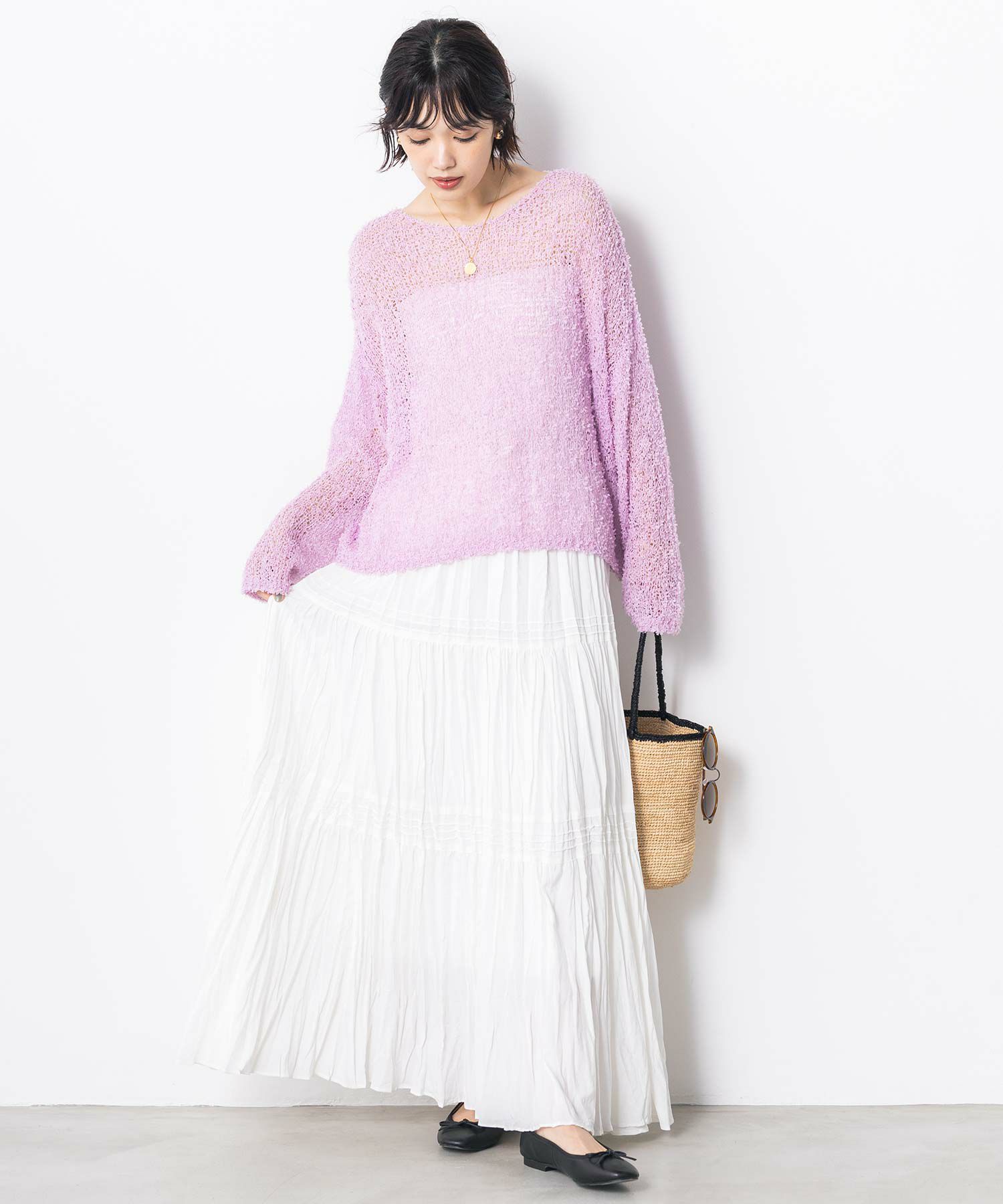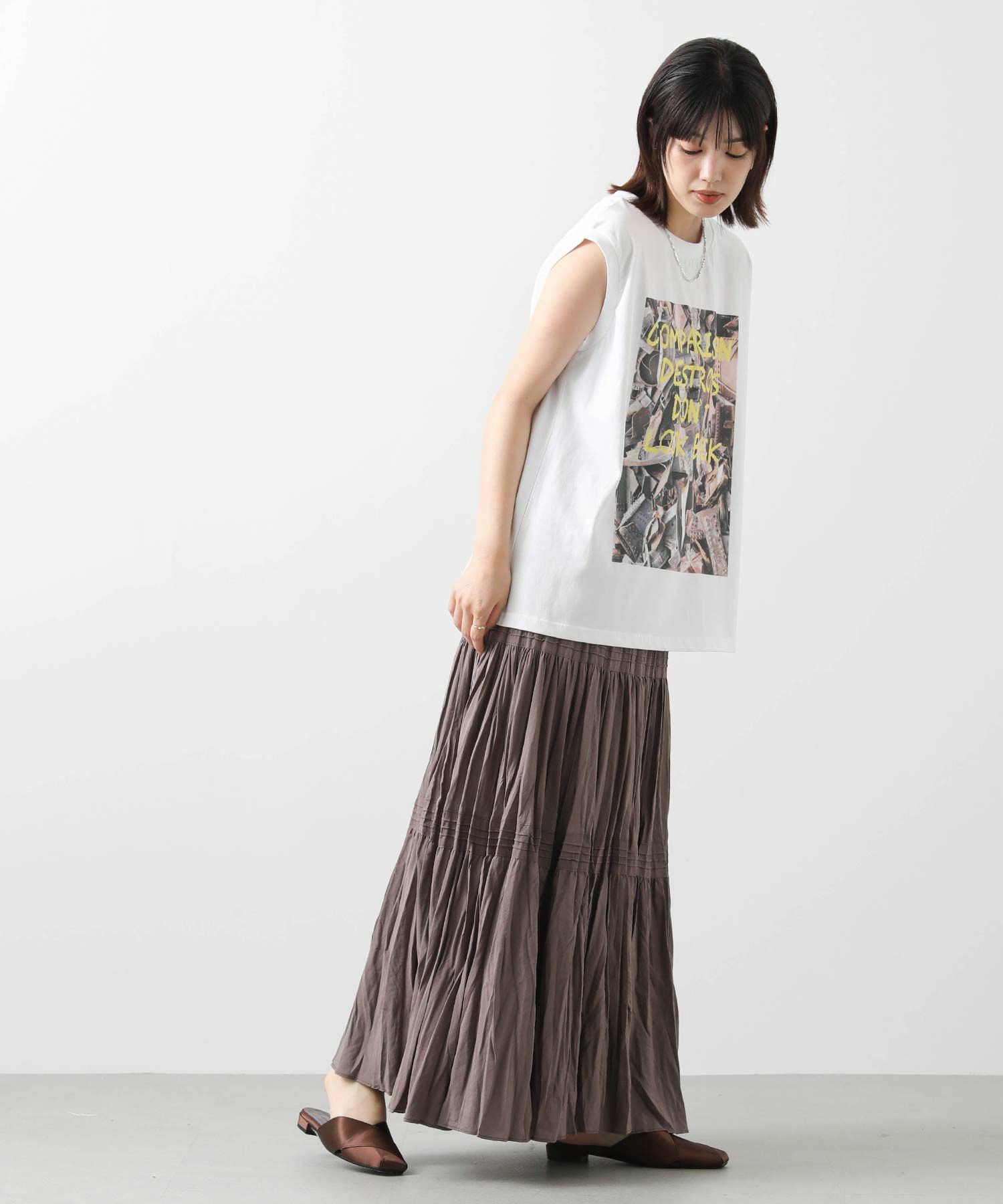 ティアードデザインながら、腰回りにボリュームがでないので、すっきり見せてくれます。切り替えのピンタックデザインがポイント。ポリエステルのローン生地でカジュアル過ぎずきれいめな印象です。