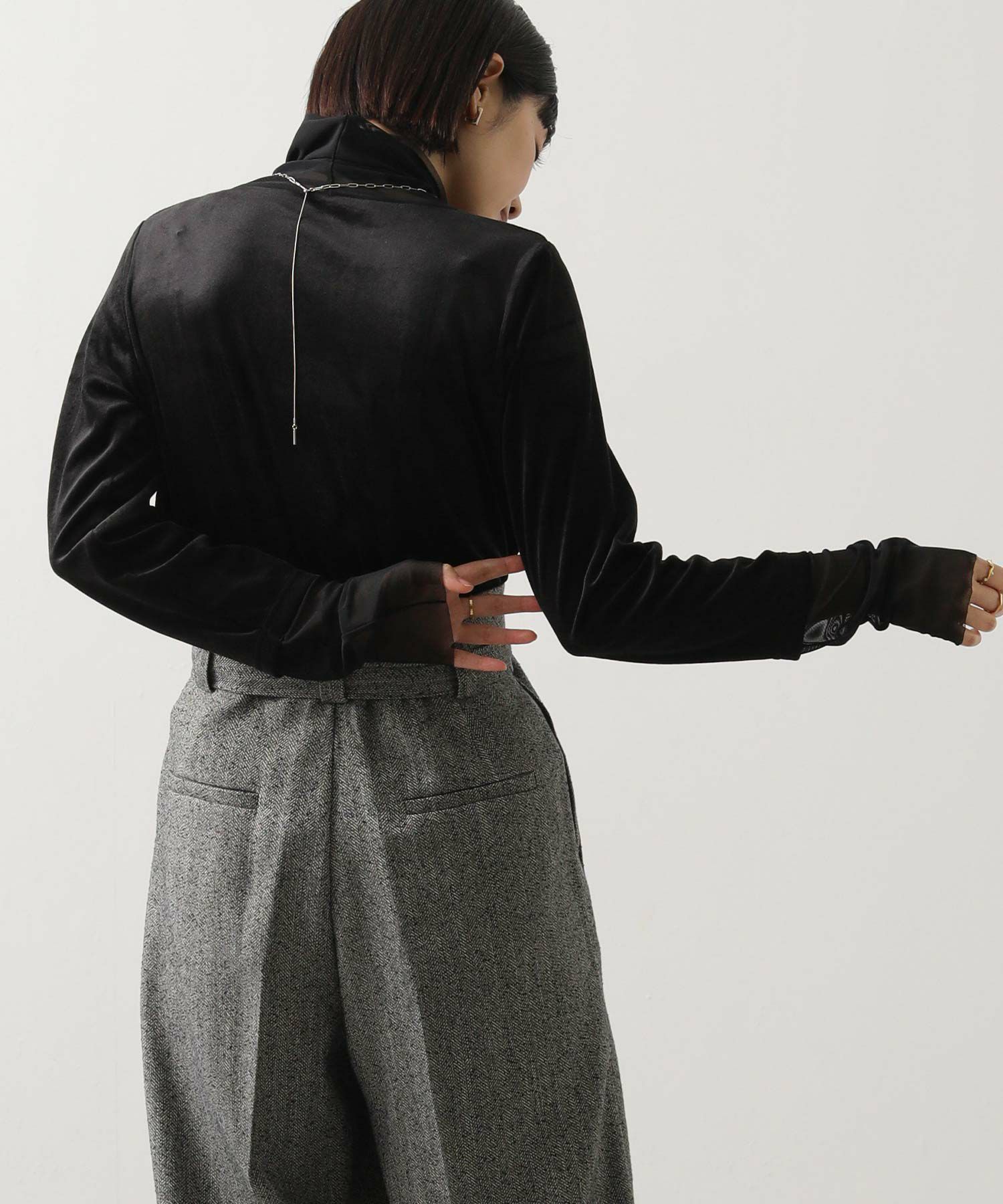 上品な光沢と優しい風合いが魅力のベロア素材は今季も注目のトレンド。