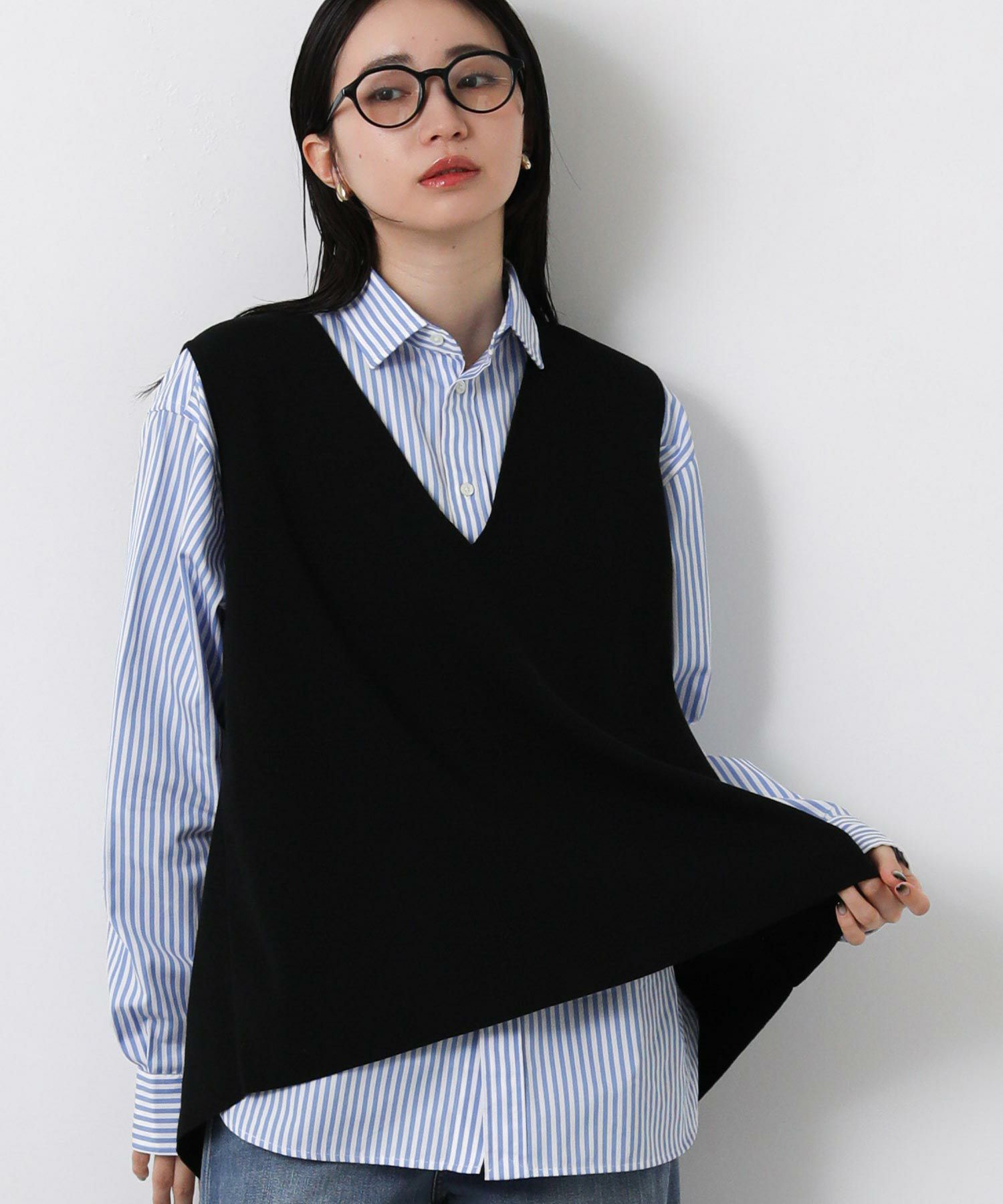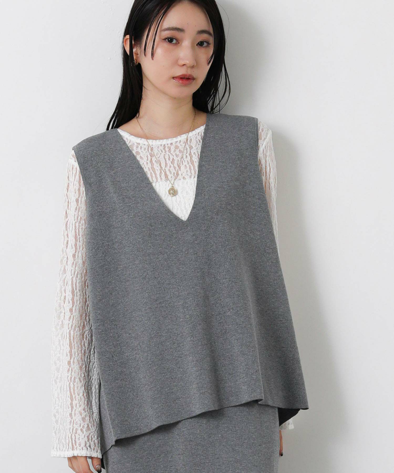 深めのVネックが顔周りをスッキリと見せてくれます。
