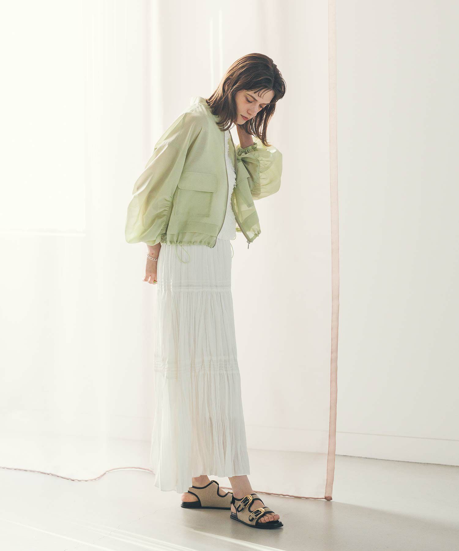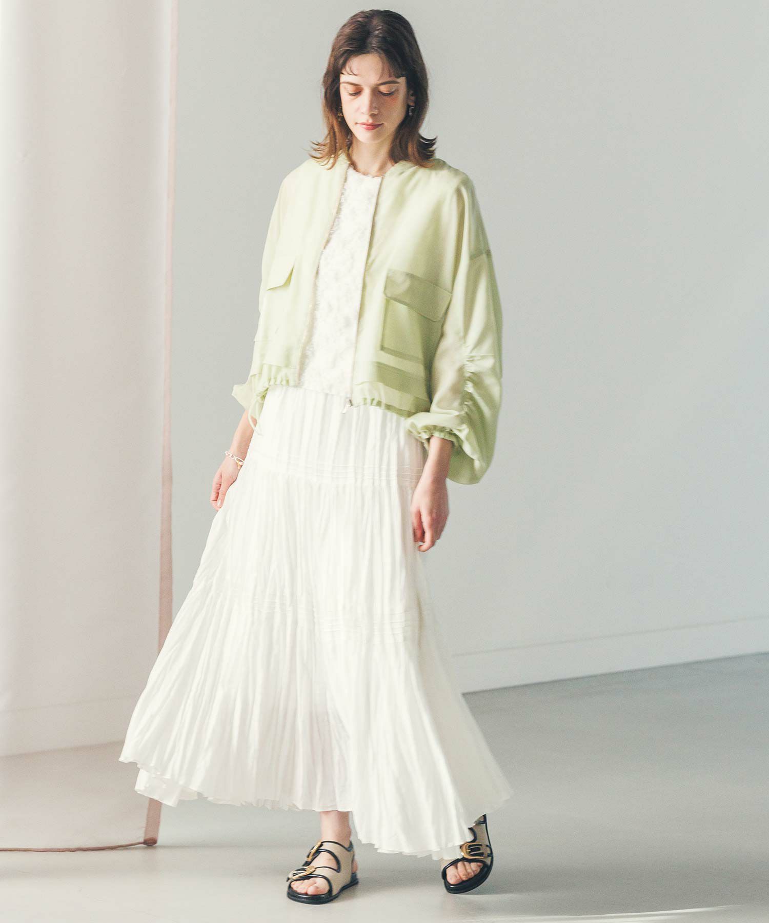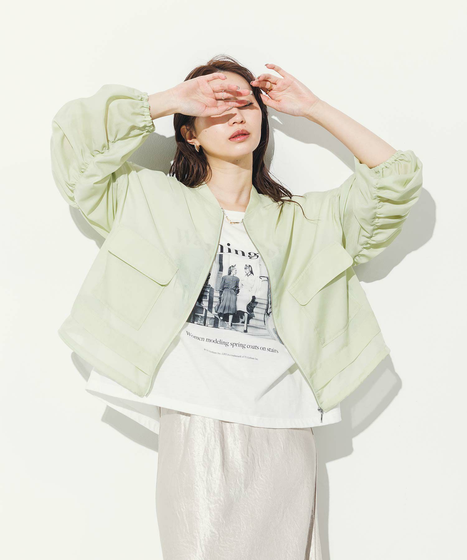 軽やかなシアー素材を使用したMA-1ブルゾン。