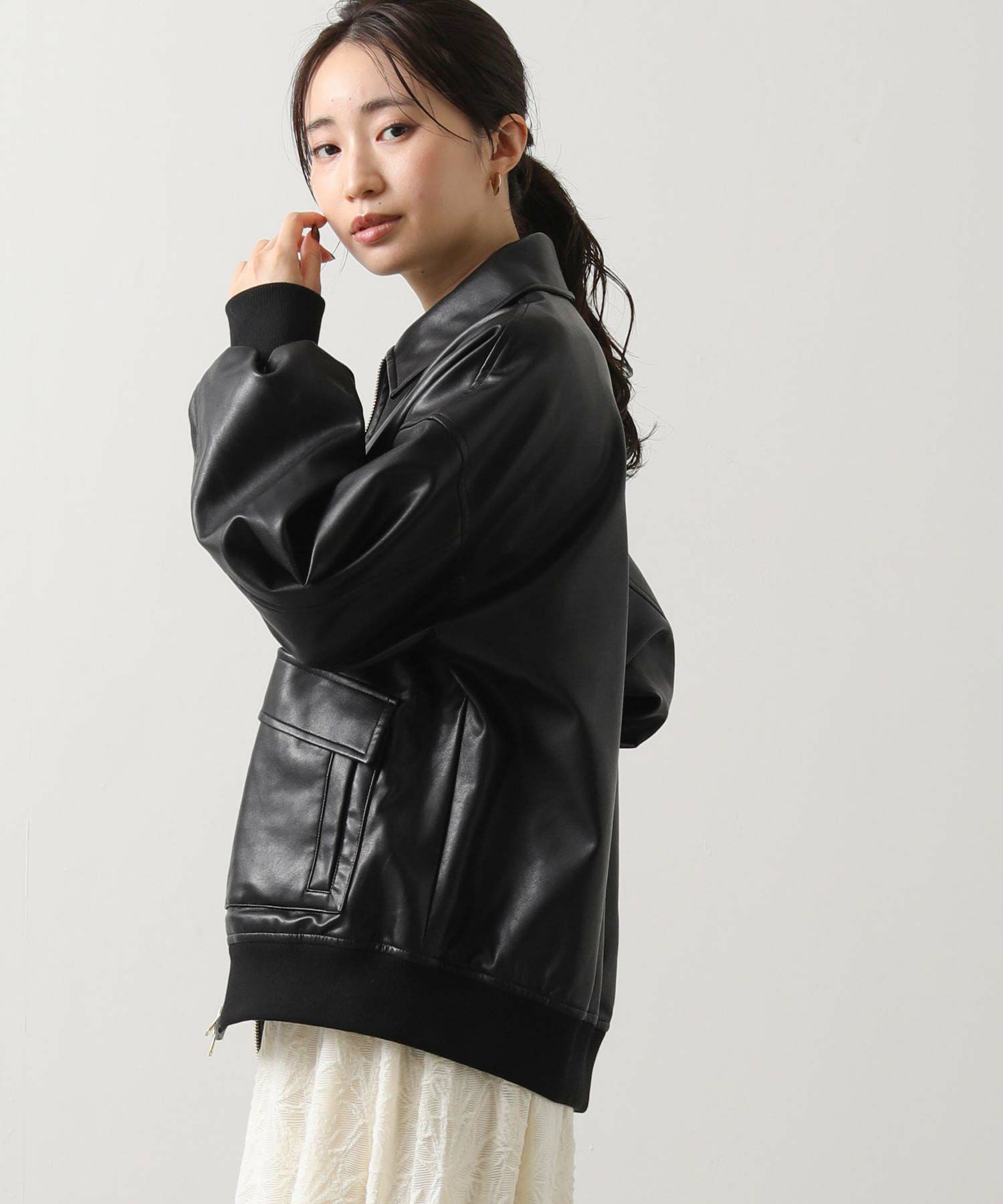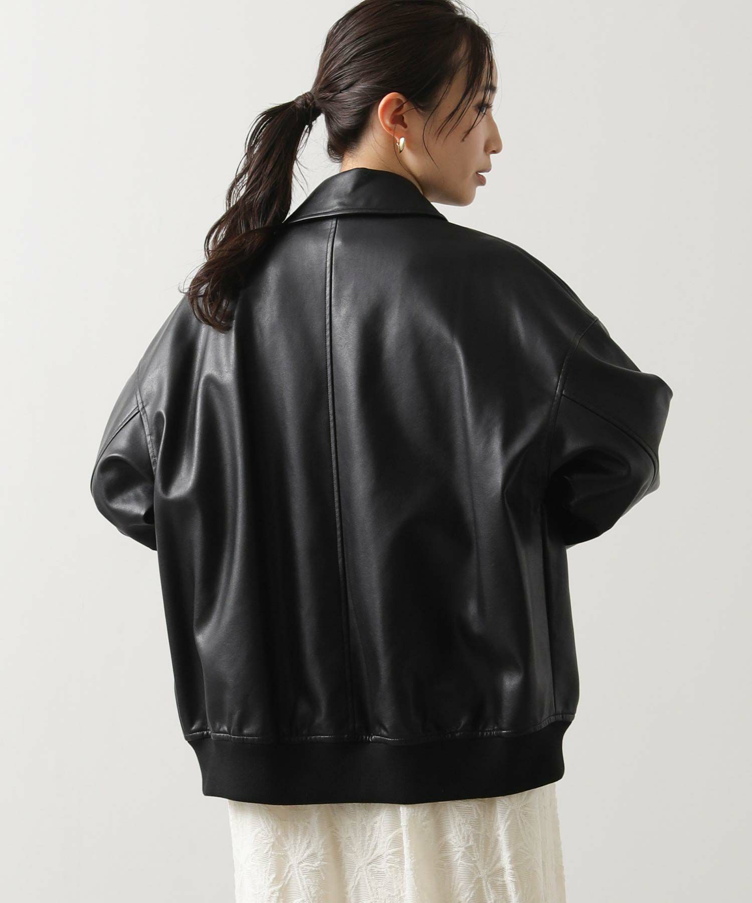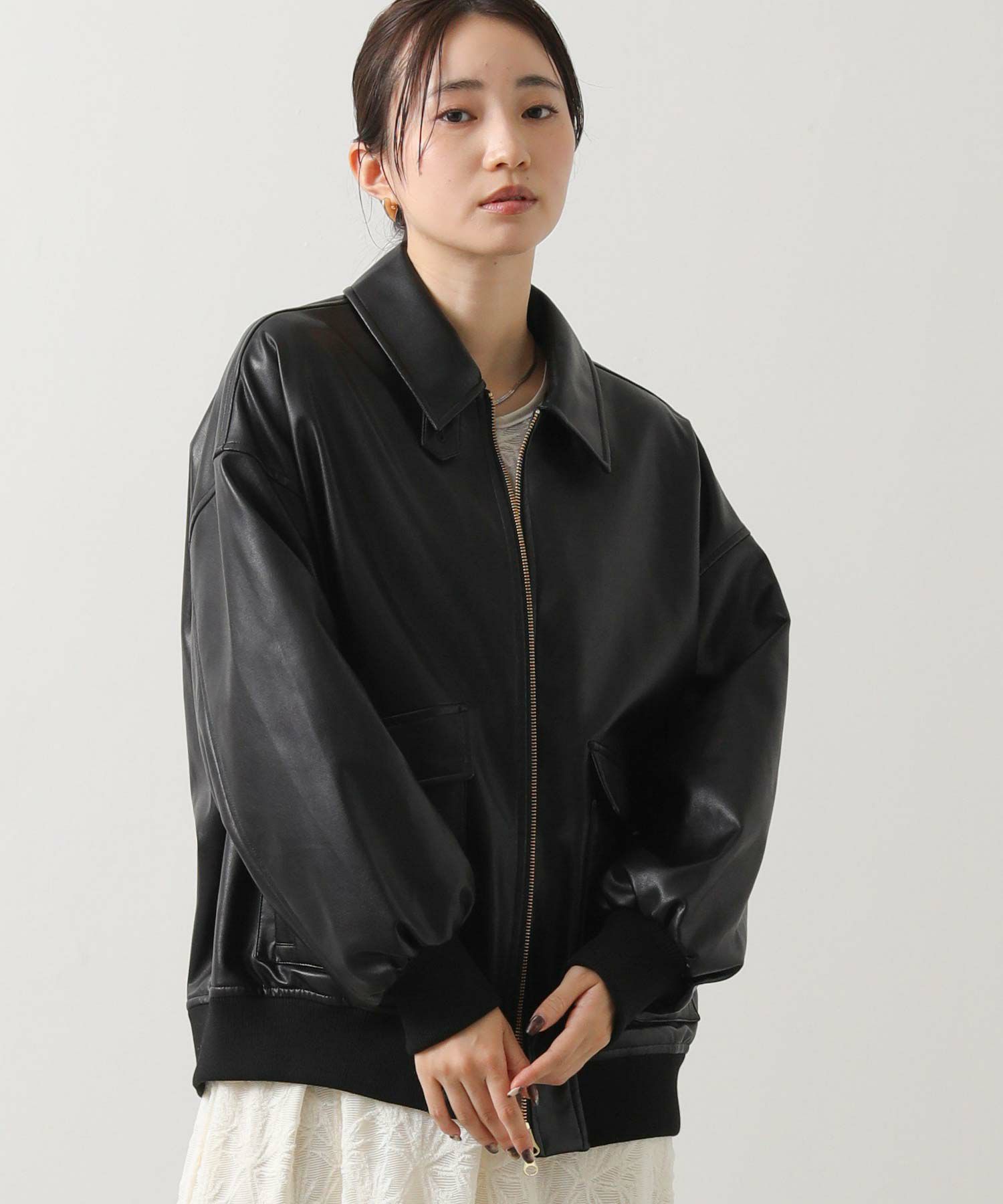 オーバーサイズですが、リアルレザーと違い軽くて羽織りやすいのでデイリー使いにオススメ。