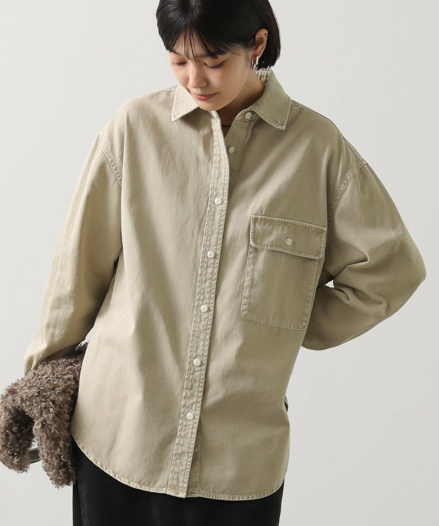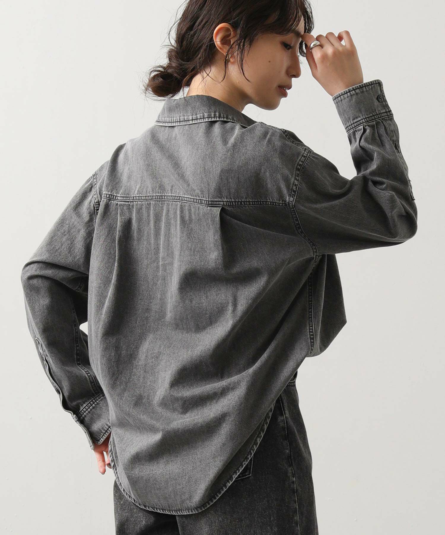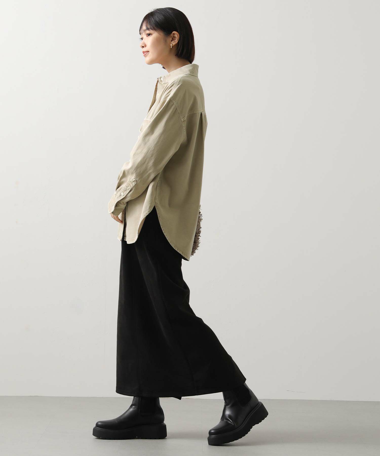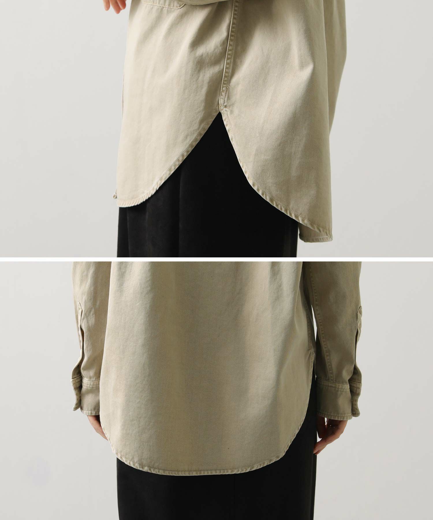 1枚でももちろん、腰に巻いたりジャケットとしてさらっと羽織ったりと、ユーティリティーな着回しの効く1着。