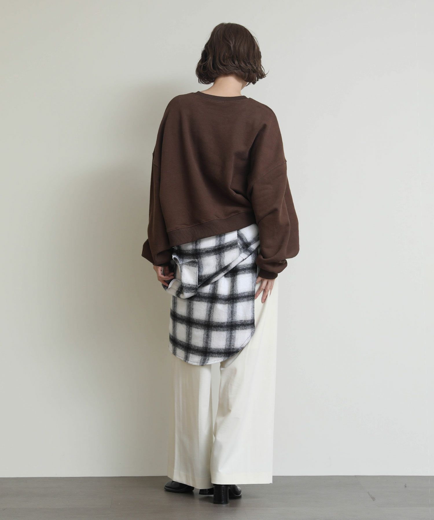 ゆったりとしたサイジングでカジュアルに着ていただけます。やや短めの丈で、インでもアウトでもきまります。インナーにシャツなどをレイヤードするのも◎裏起毛で暖かいのも嬉しいポイントです。
