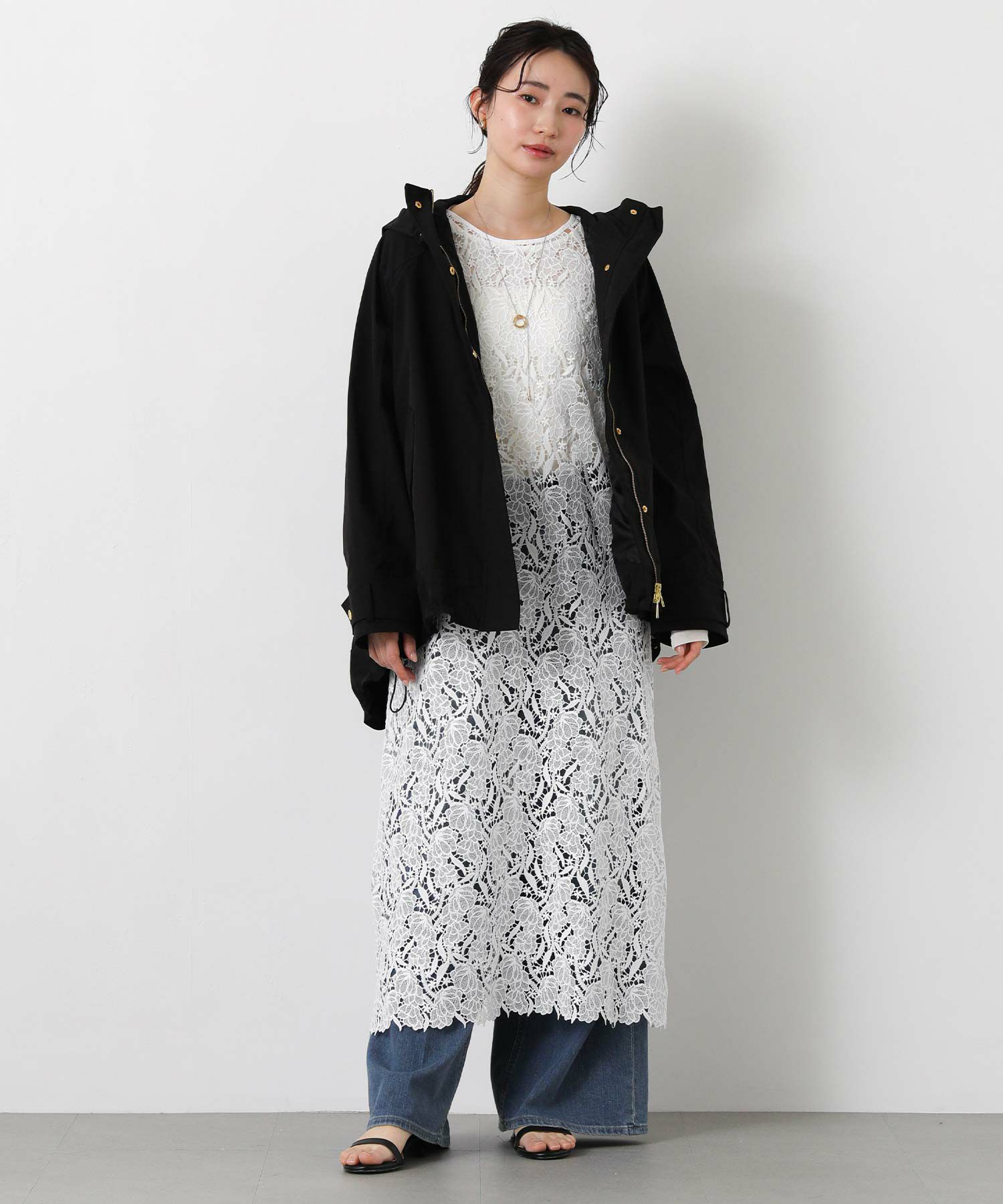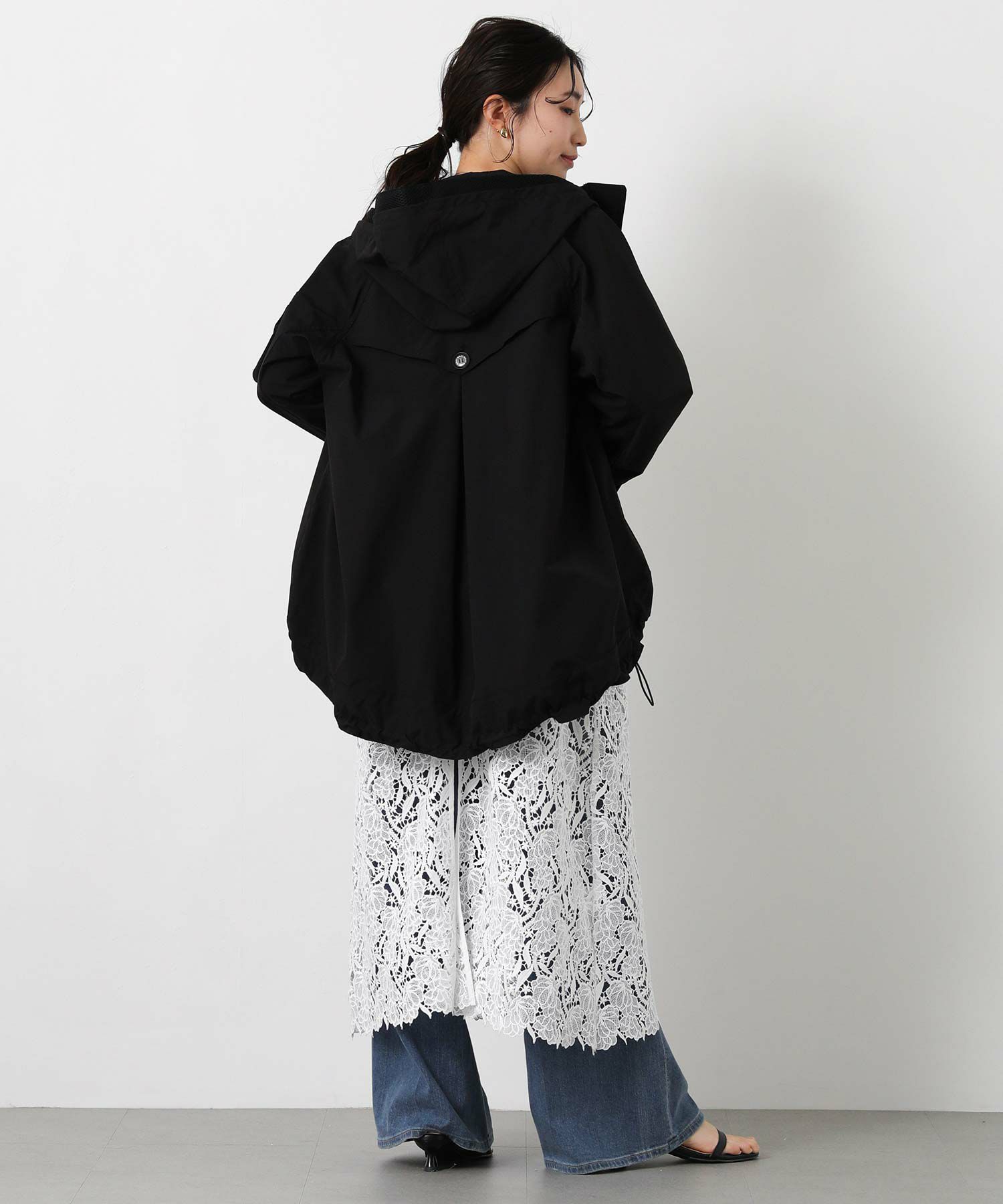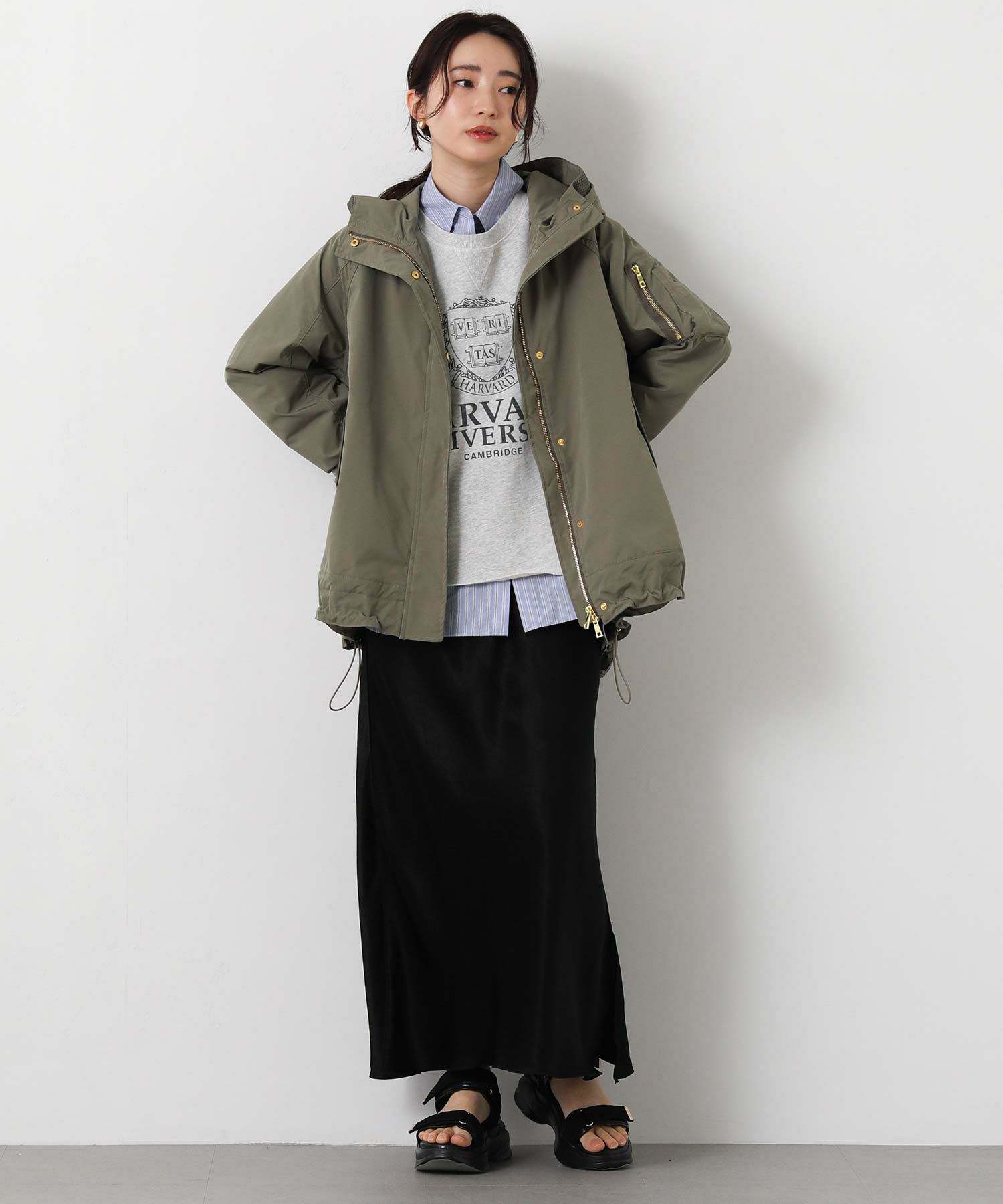 裾のドロストでシルエット調整もでき、パンツにもスカートにもバランス良く合わせられます。