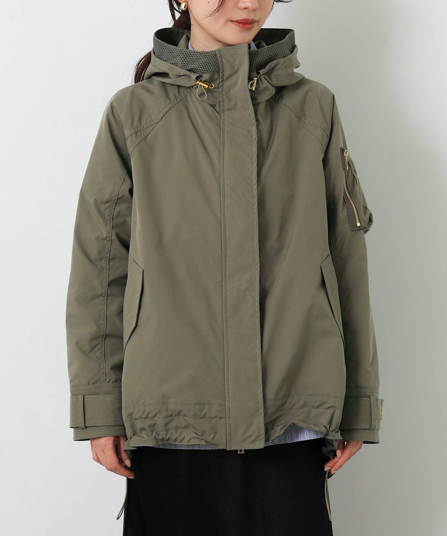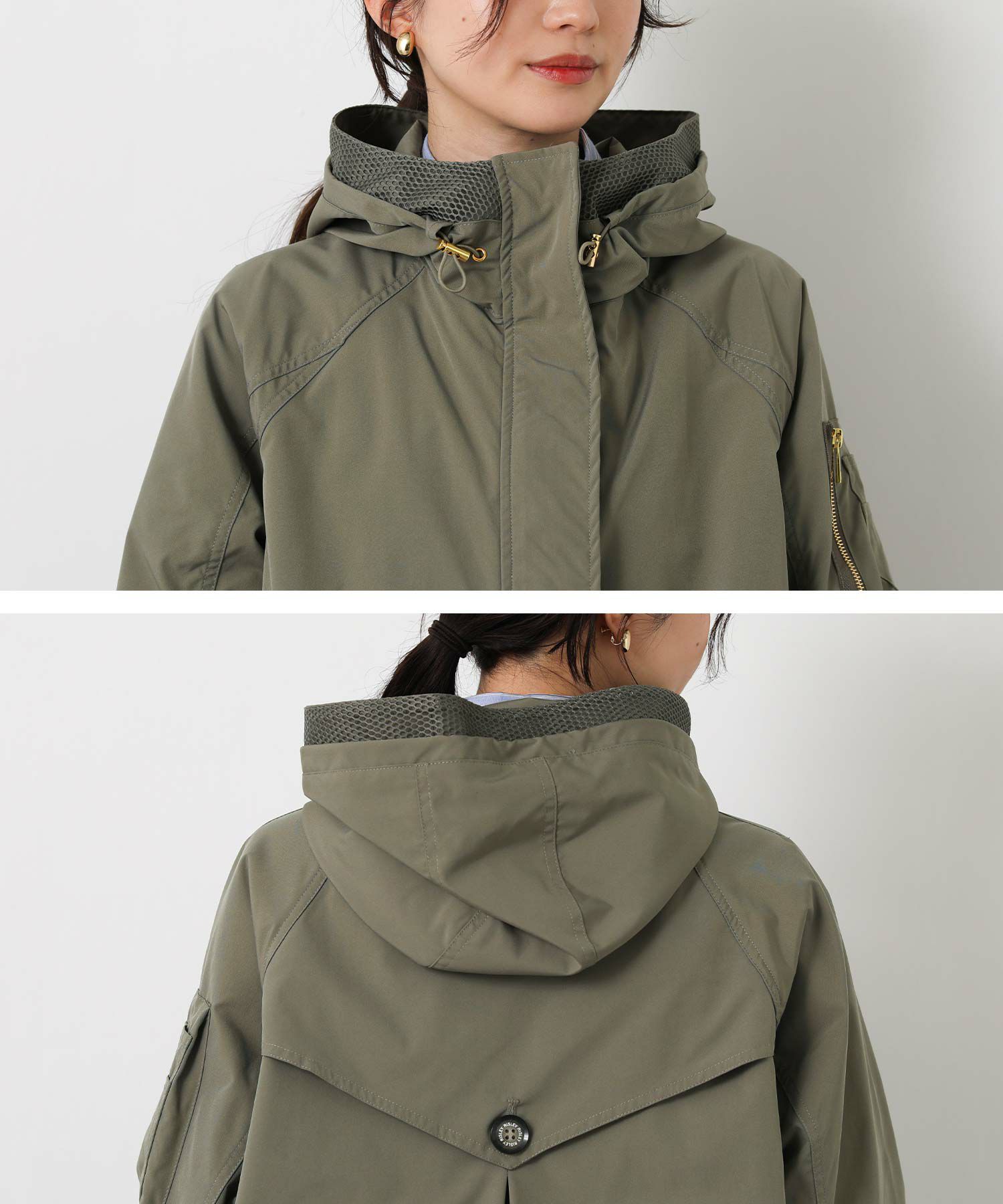 カジュアルになりすぎず、程よい抜け感を演出してくれるメッシュ切替がポイント。 フード周りや内側にメッシュ素材を使用し、軽やかで通気性の良い着心地に。
