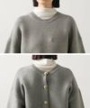 細やかなガーター編みは上品さがあり、ゴールド釦が華やかな印象をプラスしてくれます。