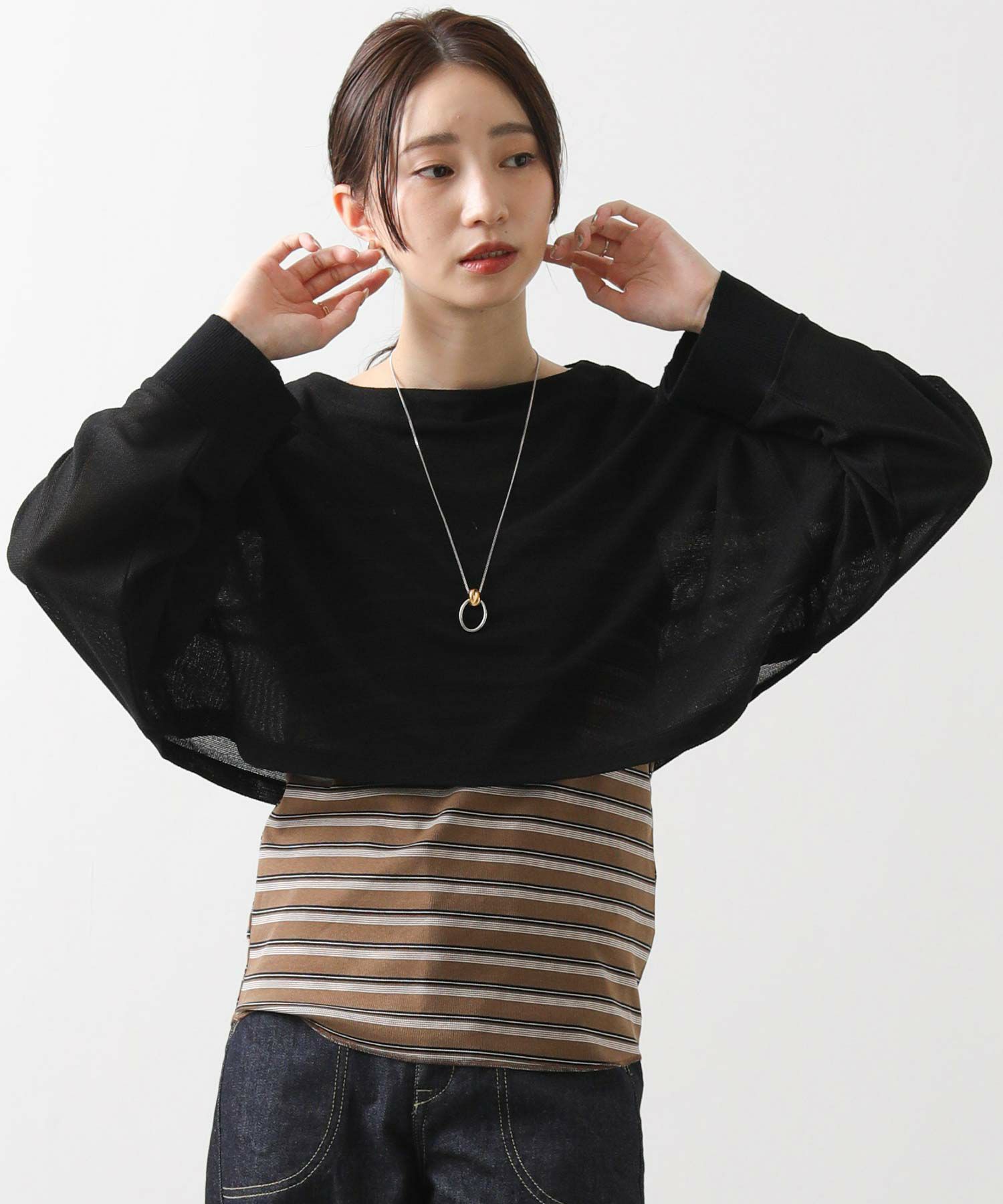【Munich(ミューニック】から、透け感と清涼感のある素材で作ったレイヤードスタイルが楽しめるショート丈トップスをセレクト。