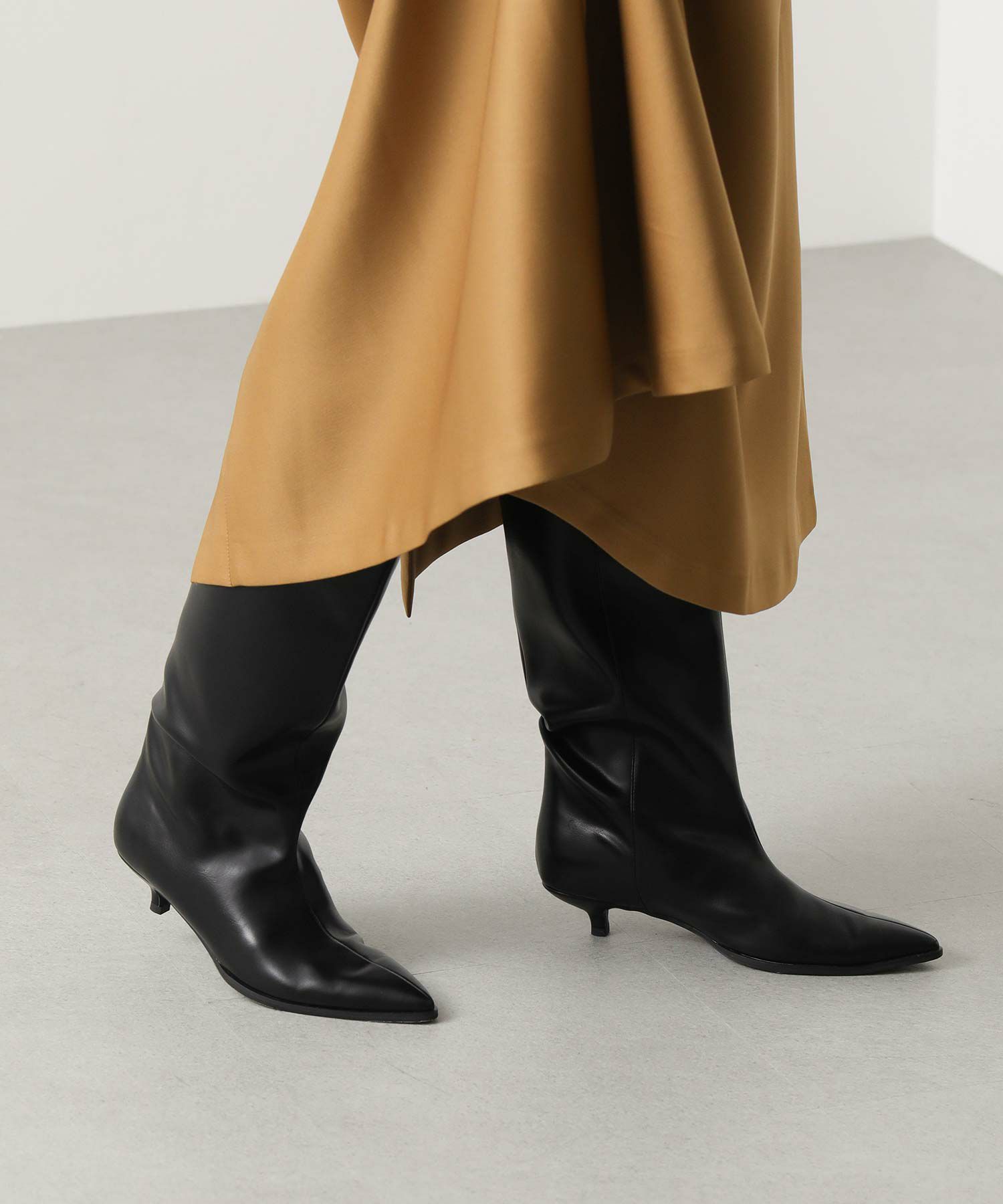 アトリエブルージュより、シャープなトゥが女性らしいロングブーツをセレクト。