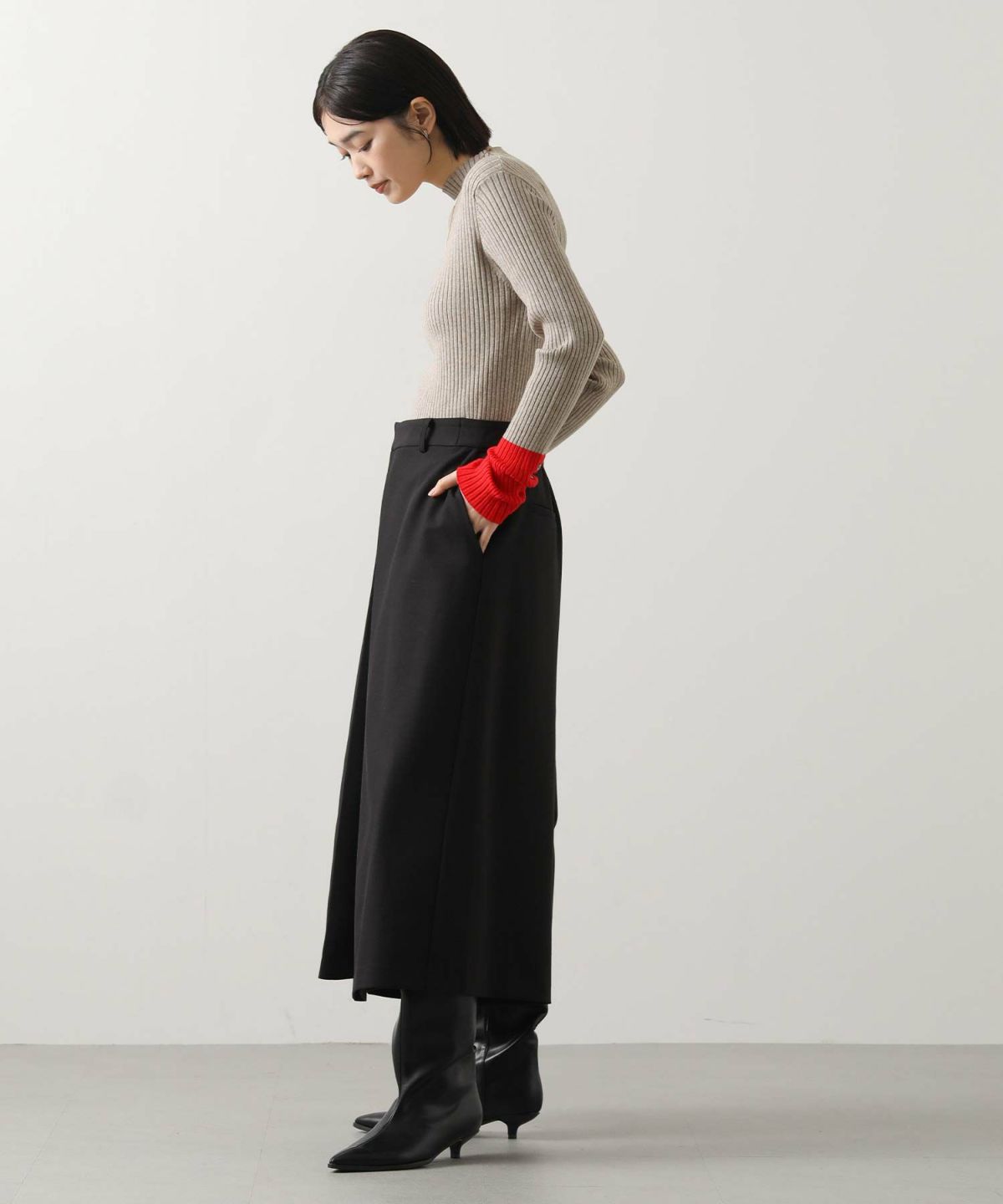 リブボトルネック袖バイカラーニット