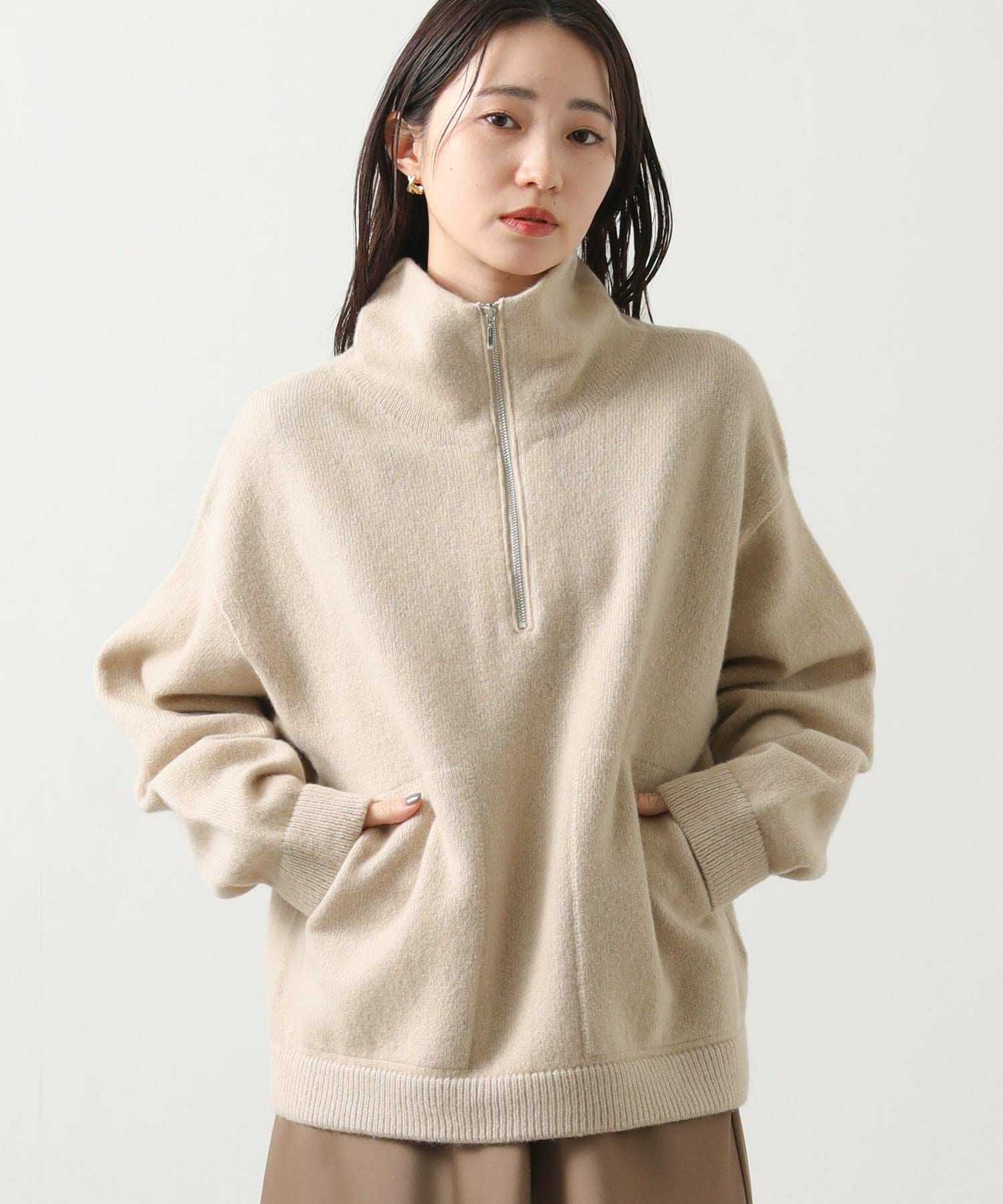 衿もとがアクセントになる旬なハーフジップデザインは、顔周りをすっきり華やかに魅せてくれます。
