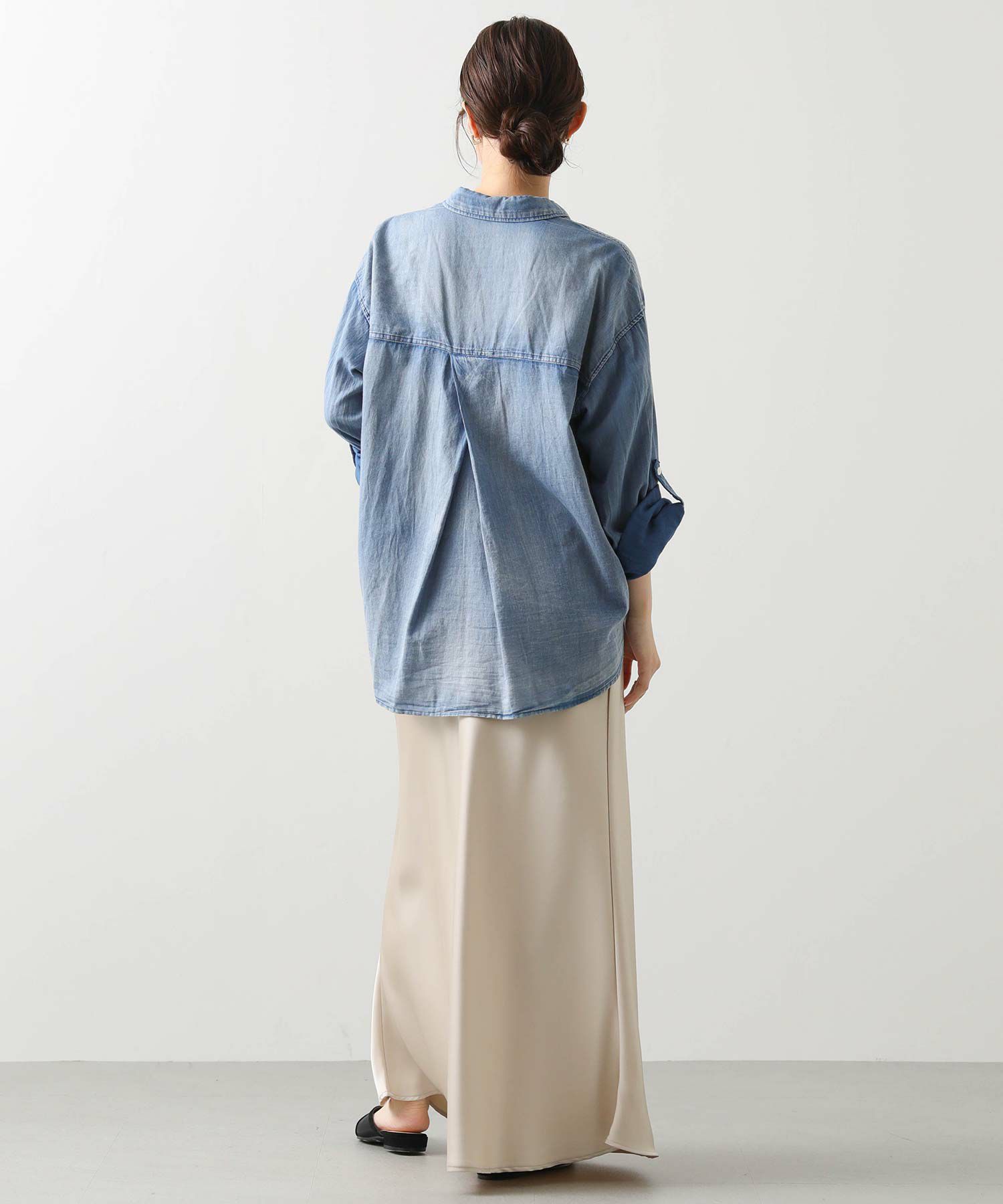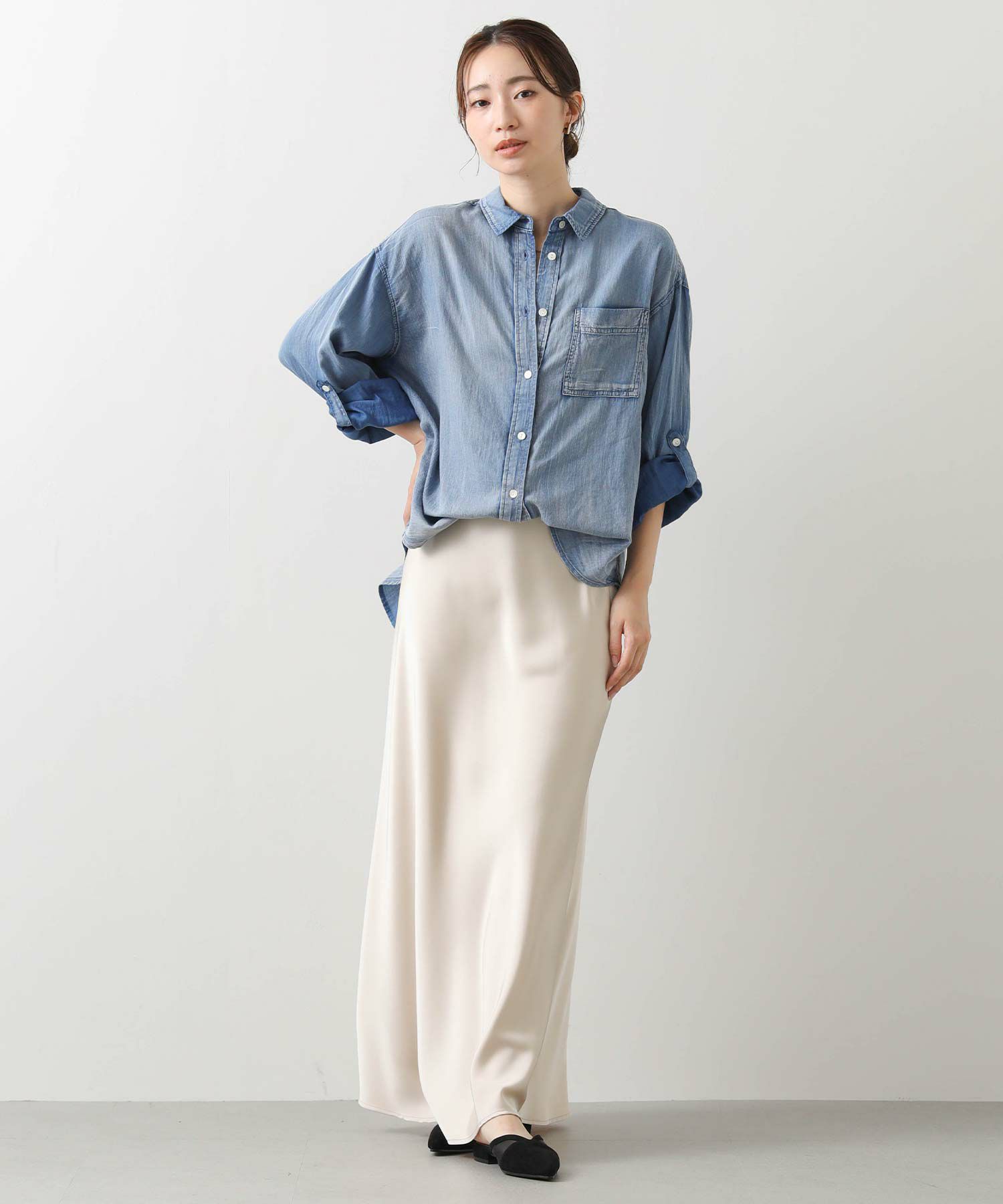 抜け感スタイルが叶うシアーデニムシャツ。
