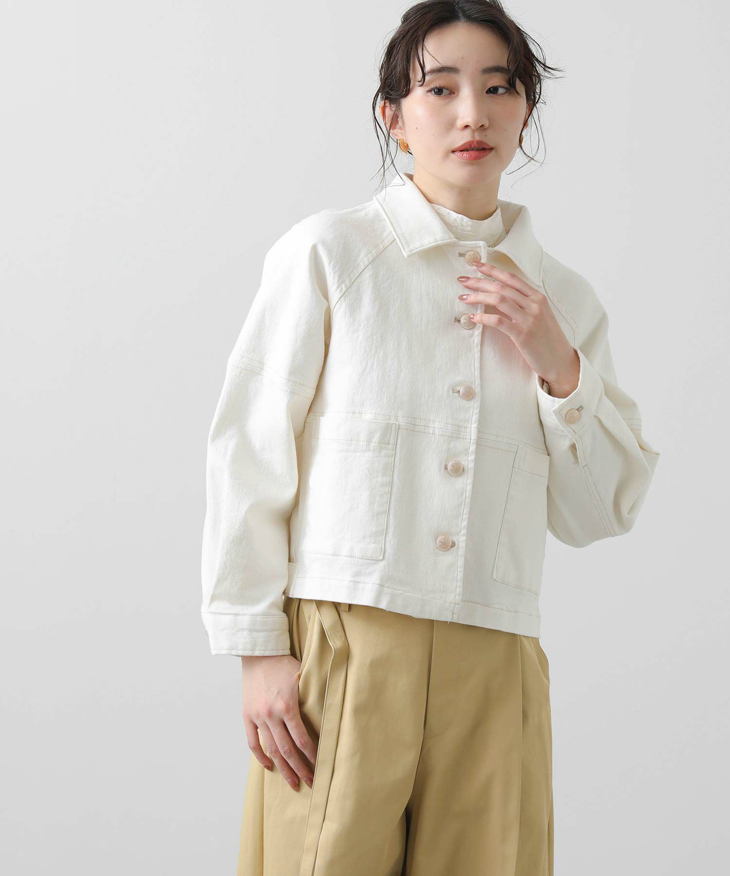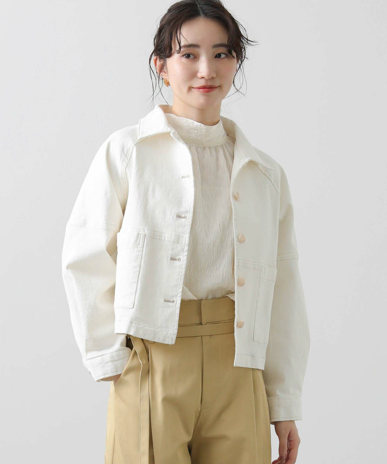 着丈短めのコンパクトなフォルムは、スカートやワイドパンツとも好相性。
