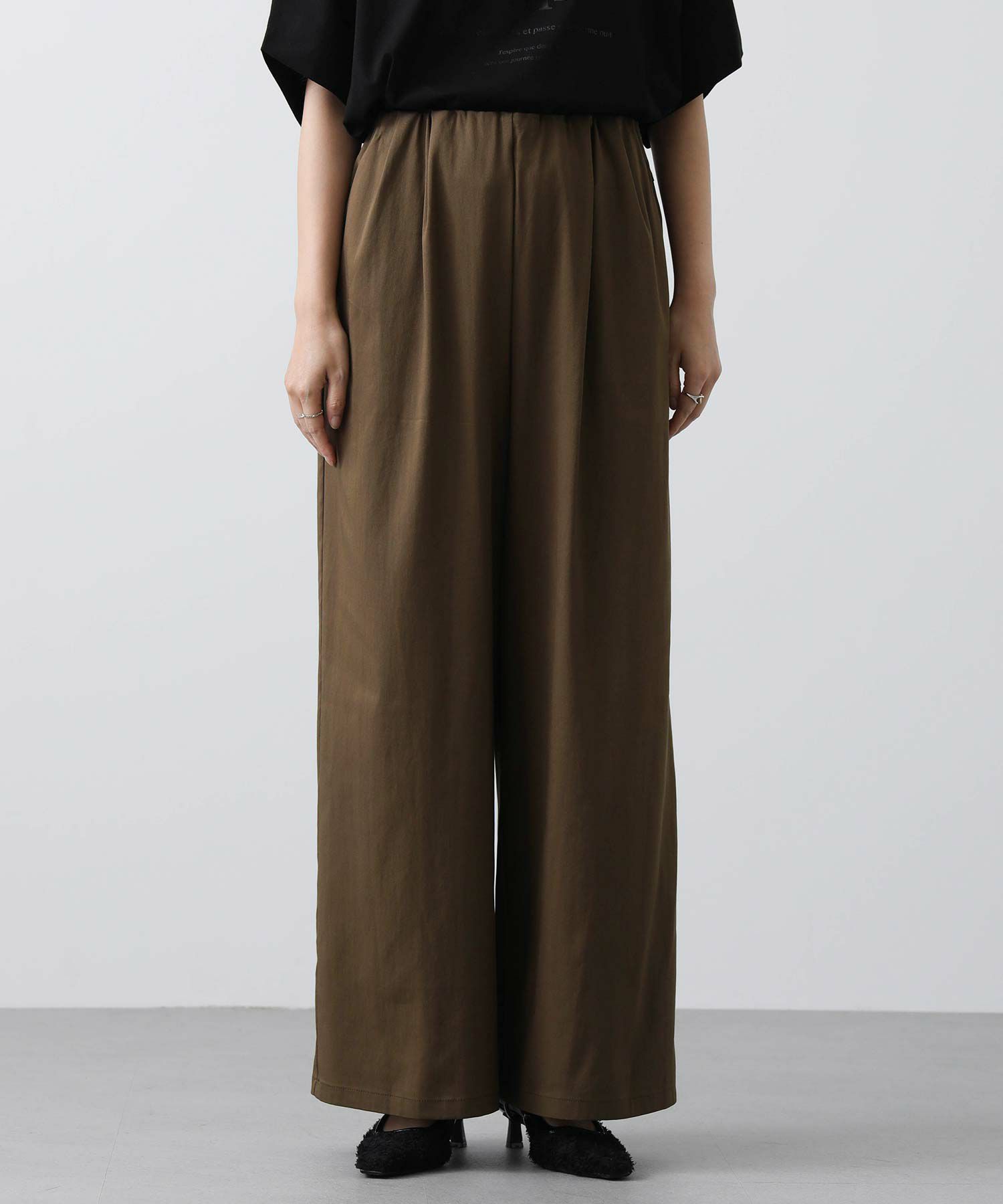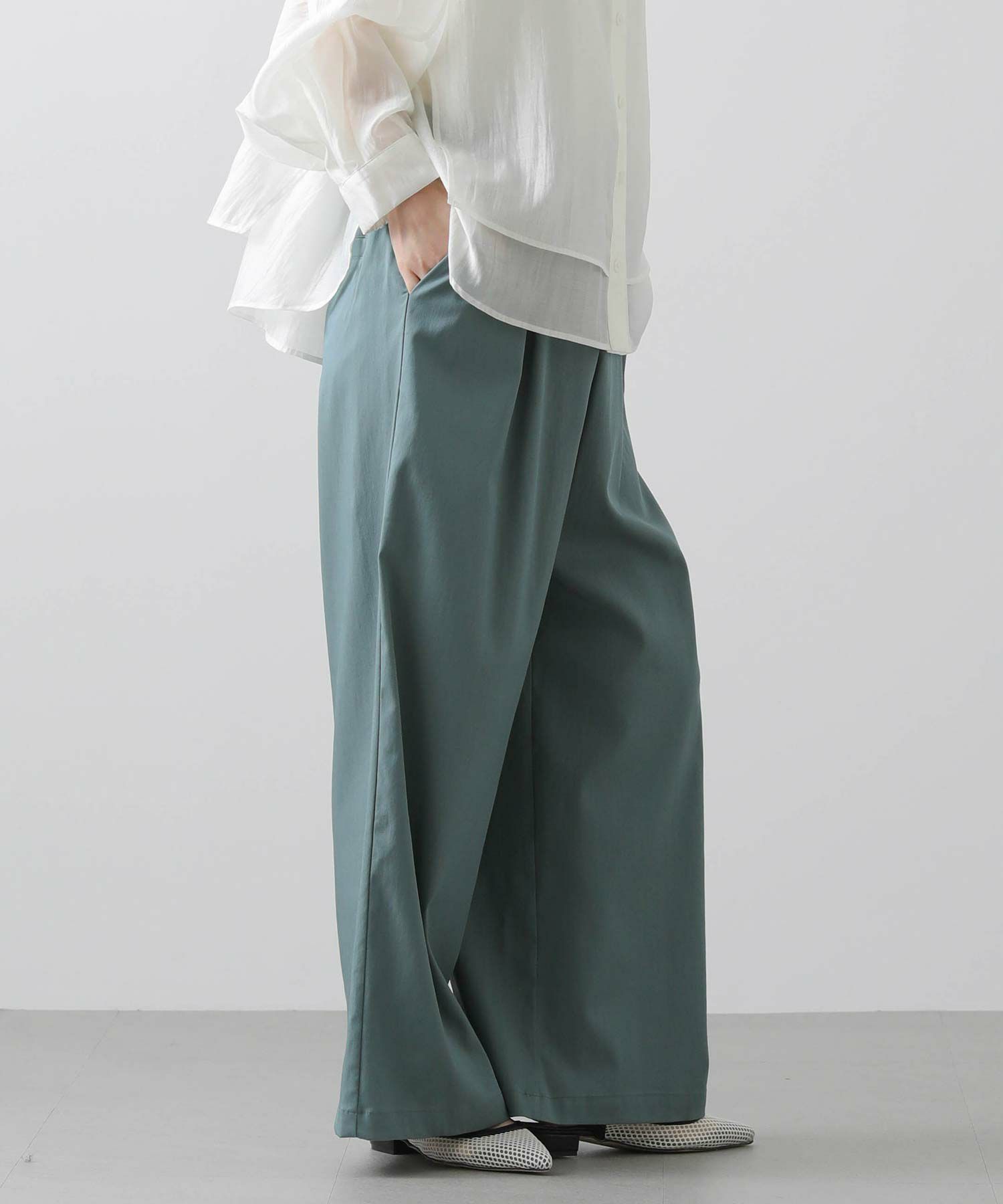 広がり過ぎないストレートシルエットが魅力のイージーセミワイドパンツ。さらりとした肌さわりの良い素材をチョイスし、きちんと感があるルックスながらリラクシーな履き心地です。